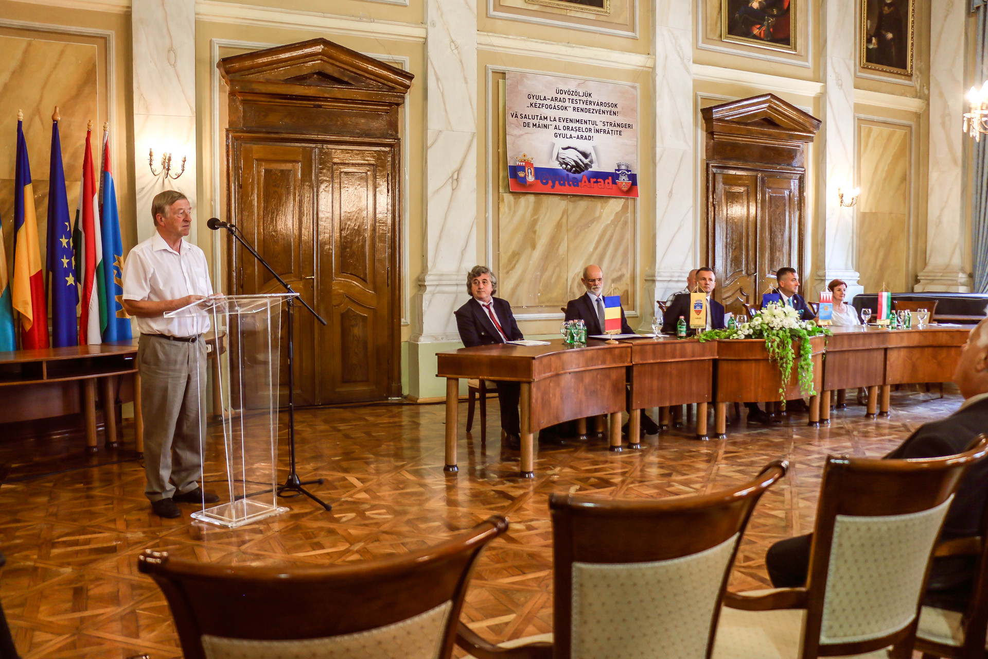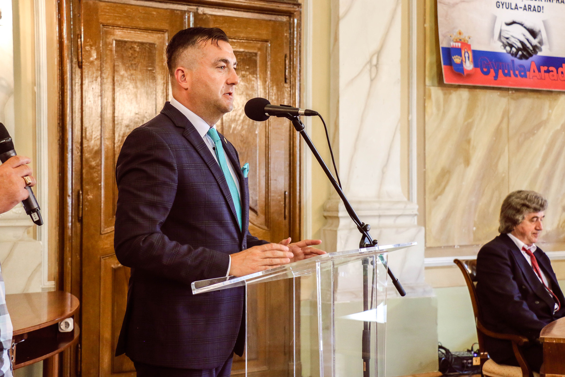 Utolsóként Cristian Sorin Ilea, Arad város egykori alpolgármestere mondott beszédet, aki emlékeztetett, hogy 1994 decemberében kezdődött Arad és Gyula kapcsolata, amely az első határon átnyúló együttműködés egy magyarországi és romániai város között. A dokumentumot az akkori polgármesterek, Pocsay Gábor és Cristian Moisescu írták alá, utóbbi sajnos már nincs közöttünk.