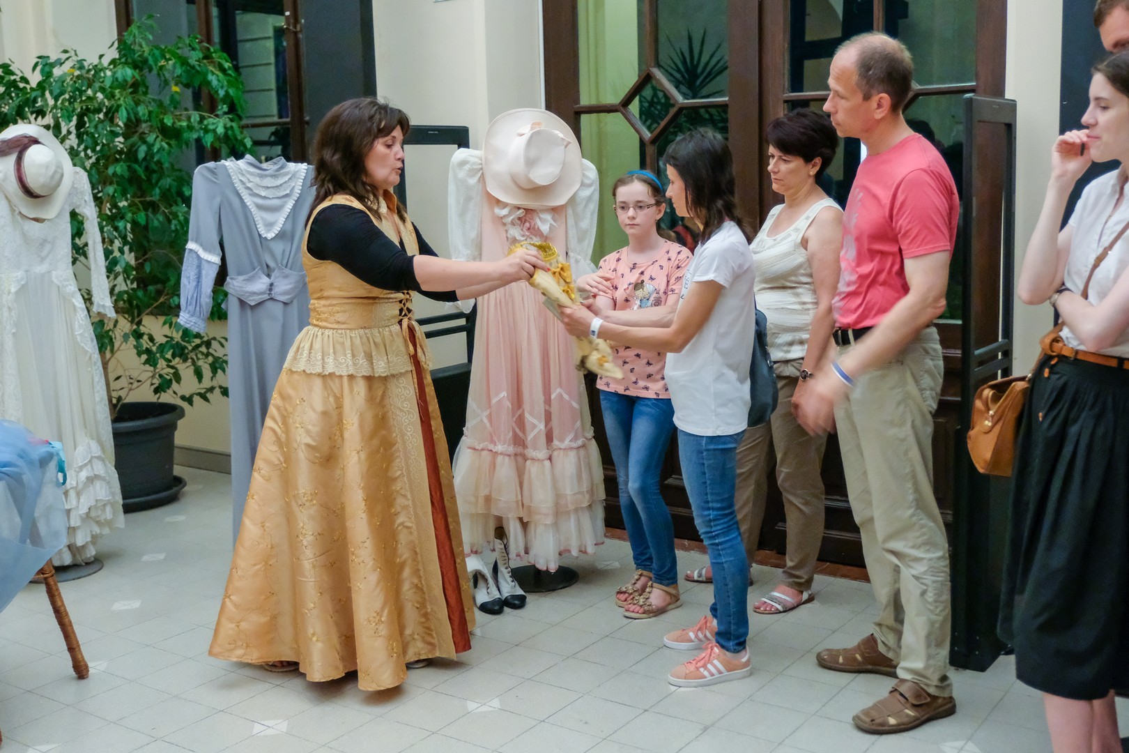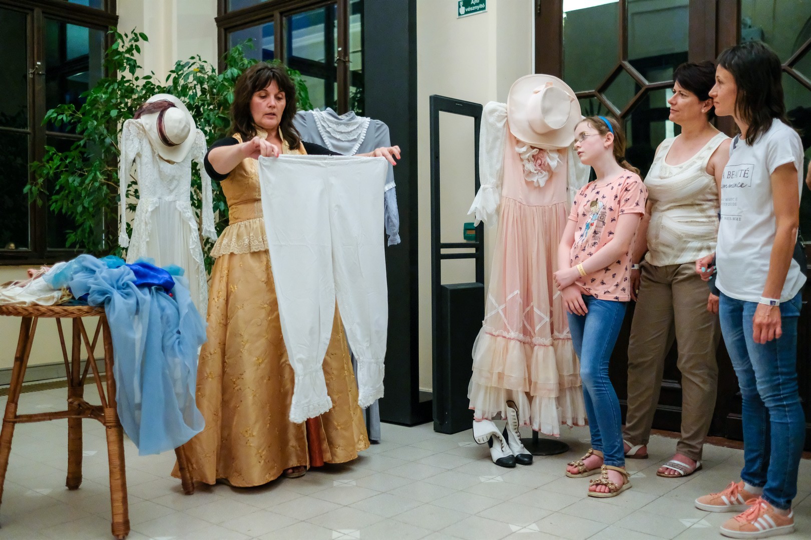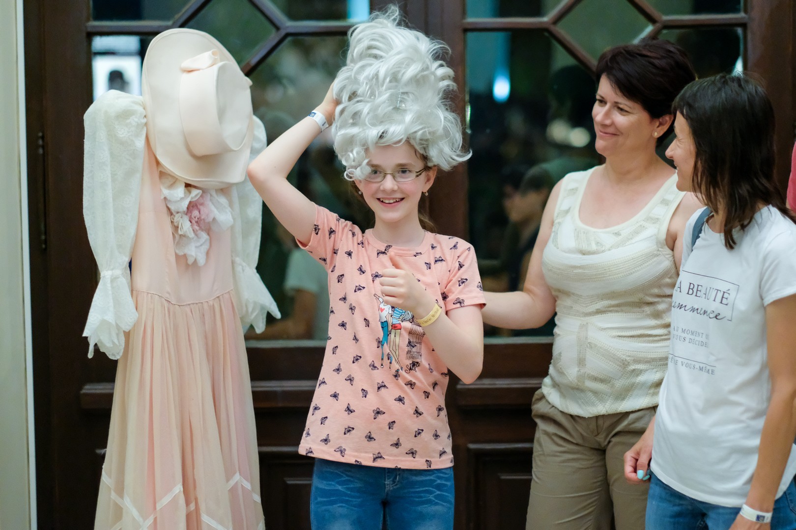 A múzeumpedagógiai teremben illatbemutatót tartottak, azzal összefüggésben, hogy a távoli korokban a parfümöket kizárólag a tehetősebb réteg, az arisztokrácia hintette magára előszeretettel. Úgy vélték, ha már mosakodni nem tudnak rendszeresen, legalább ne legyenek büdösek. Arról, hogy ehhez milyen ruházkodási módi társult, a télikertben tájékozódhattak az éjszakázók.
