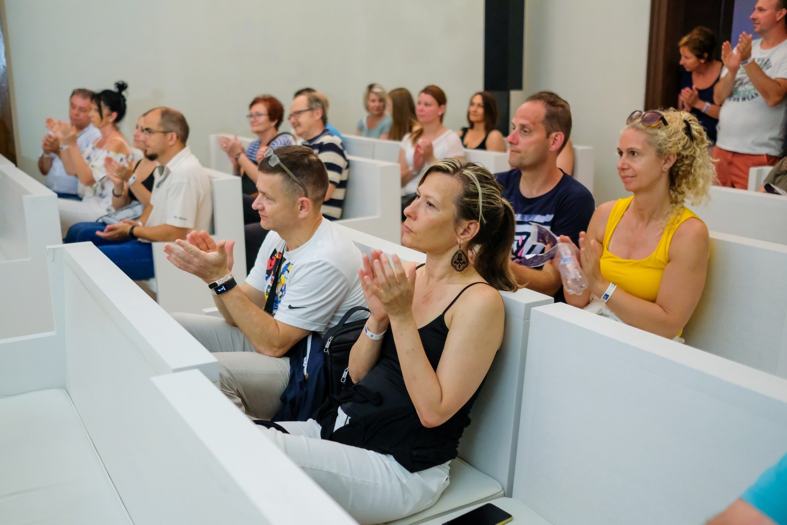 A kastélyparkban a Gyulai Ifjúsági Fúvószenekar perdítette ismét táncra a publikumot. Akadt persze olyan részvevő is, aki tánc helyett inkább dalra fakadt. A szűnni nem akaró taps az együttesvezetőnek és az ifjú muzsikusoknak egyaránt kijárt. Hisz ebben a teljesítményben mindenki egyenrangú félként vett részt. Nem véletlen, hogy ugyanitt az Oscar-díjas Mindenki című kisfilmet levetítették.