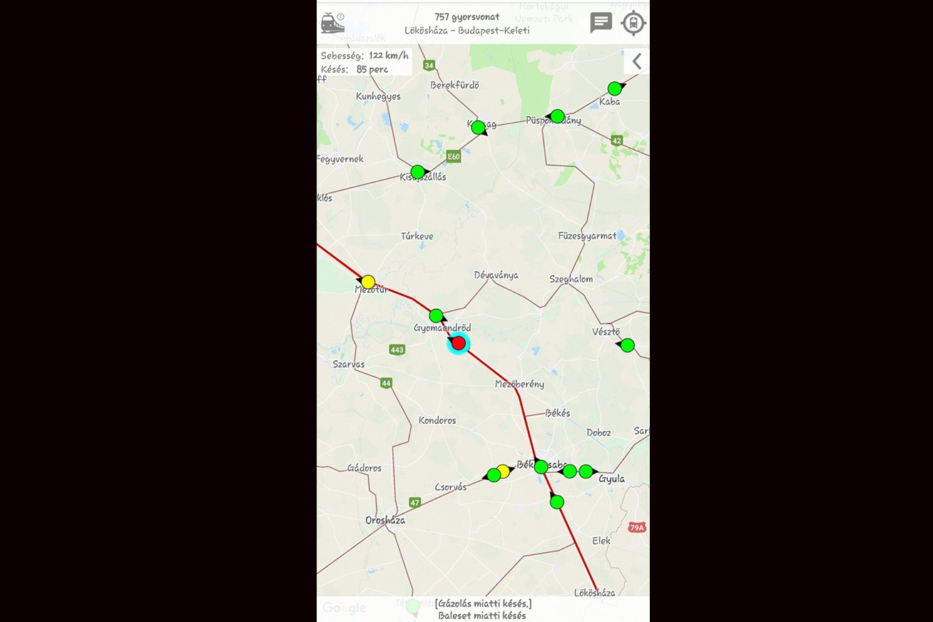 Hosszabb menetidőre kell számítani a Budapest–Békéscsaba–Lőkösháza vasútvonalon egy gázolás miatt – olvasható a Viharsarok vasútja Facebook-oldalon. A vonatok Békéscsaba és Murony között csak egy vágányon közlekednek a baleset miatt, a menetidő így 20–30 perccel is meghosszabbodhat.