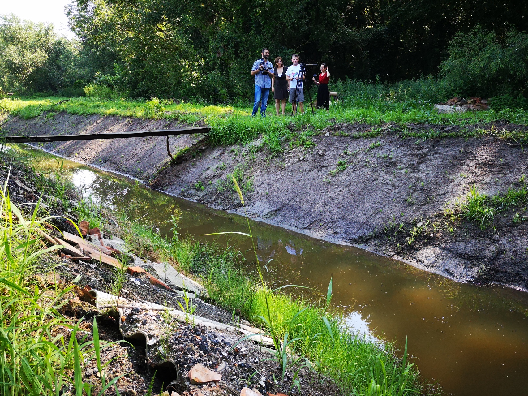 485 méter hosszon kikotorták a máriafalvai csatornát – erről tartott sajtótájékoztatót Alt Norbert alpolgármester június 26-án.