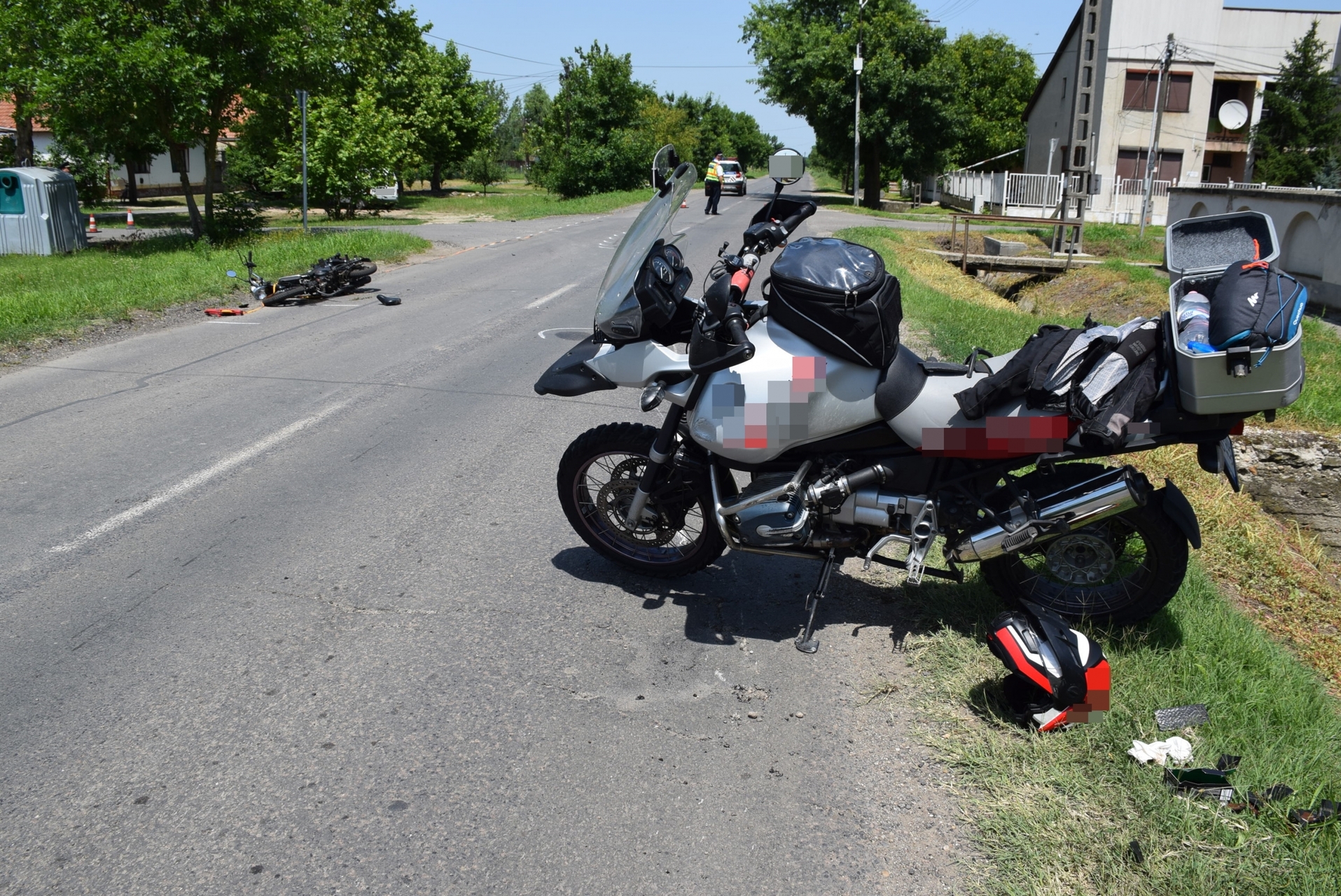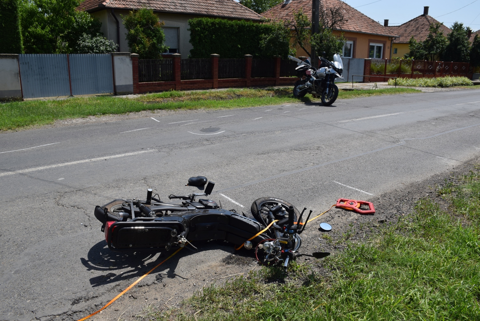 Összeütközött egy motorkerékpáros férfi és egy robbanómotoros kerékpárral közlekedő férfi június 30-án, Sarkadon.