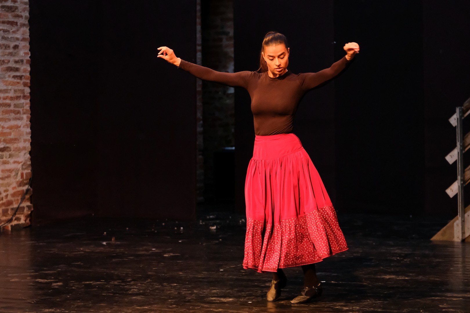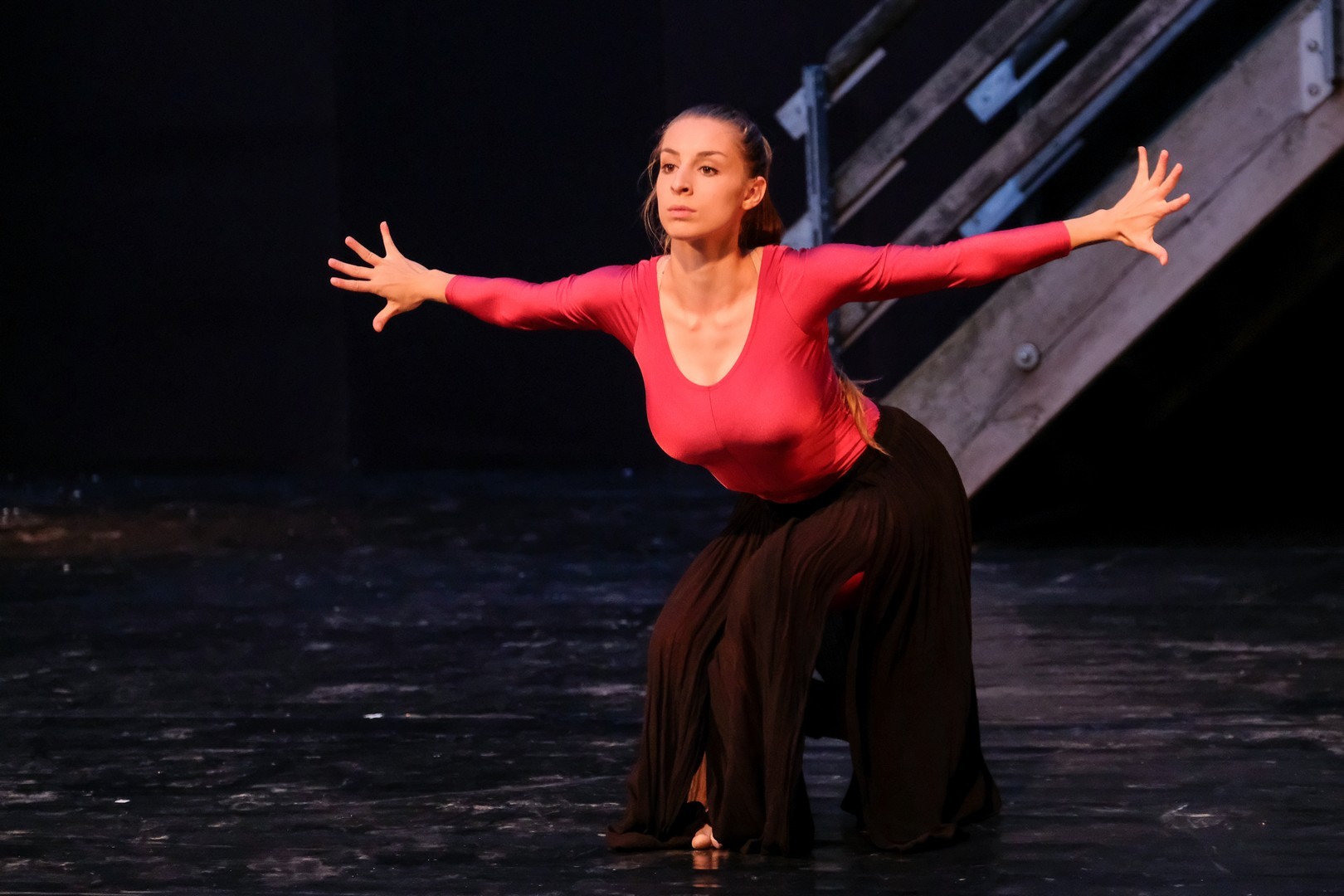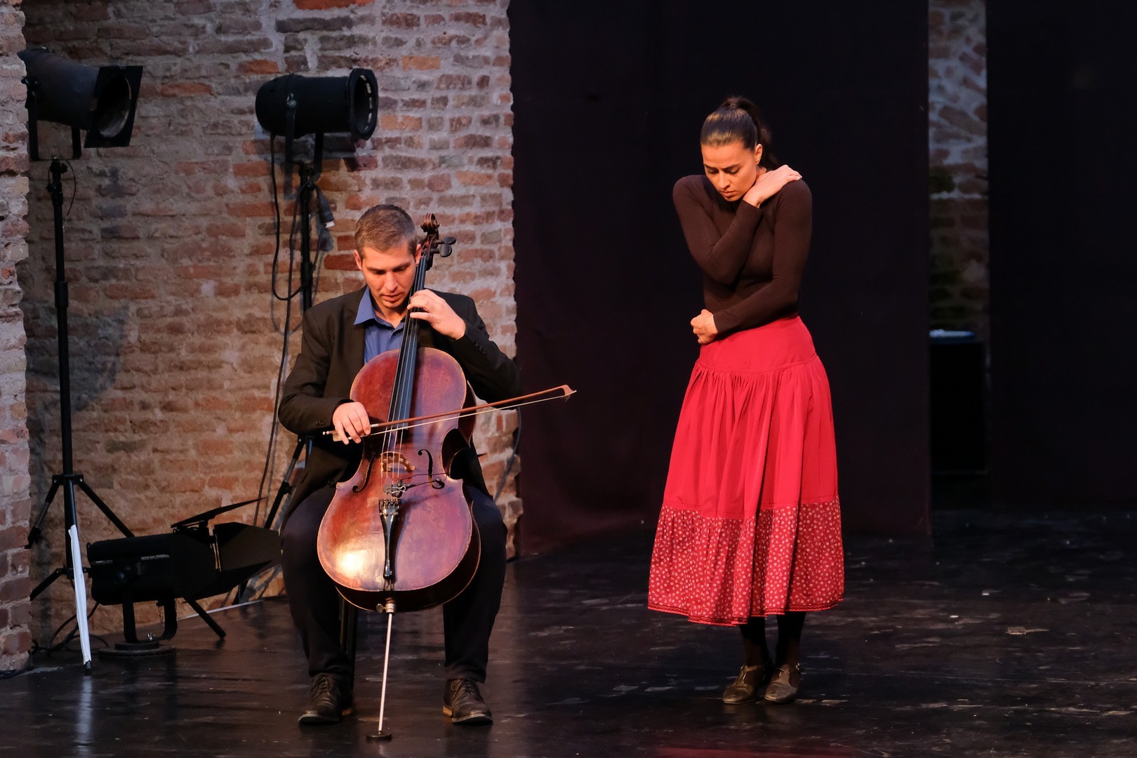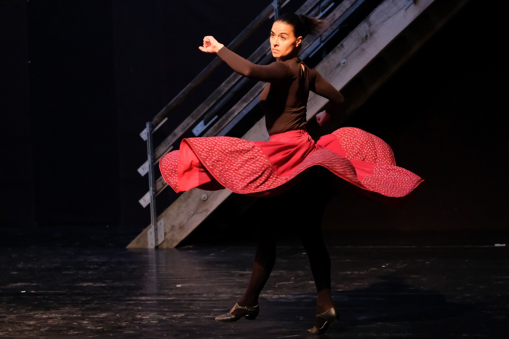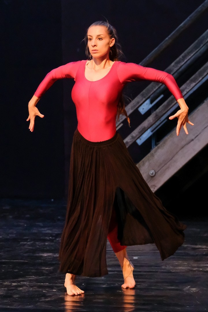 Noha az első blokk az indiai kultúrkörből indult ki, és a magyar örökségbe beépült cigány elemekről is megfogalmazta véleményét, engem Györgyfalvay Katalin lírai hangvételű piros-fekete Just for you-ja érintett meg leginkább. Ebben egy hihetetlenül érzékeny és muzikális szólót nézhettünk meg egy hasonlóan fenomenális, elbűvölő csellókíséretre. Mintha csak egy festmény elevenedett volna meg, úgy villódzott, pördült iszonyatos tempóban előttünk a táncosnő szoknyája, s maga a szám is.