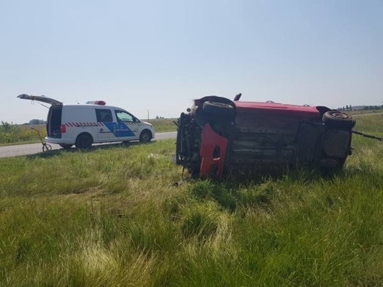 Vésztő külterületén egy személyautó letért az útról, és az oldalára borult. A balesetben a jármű vezetője könnyű sérülést szenvedett.
