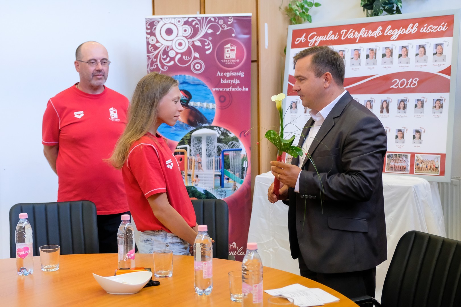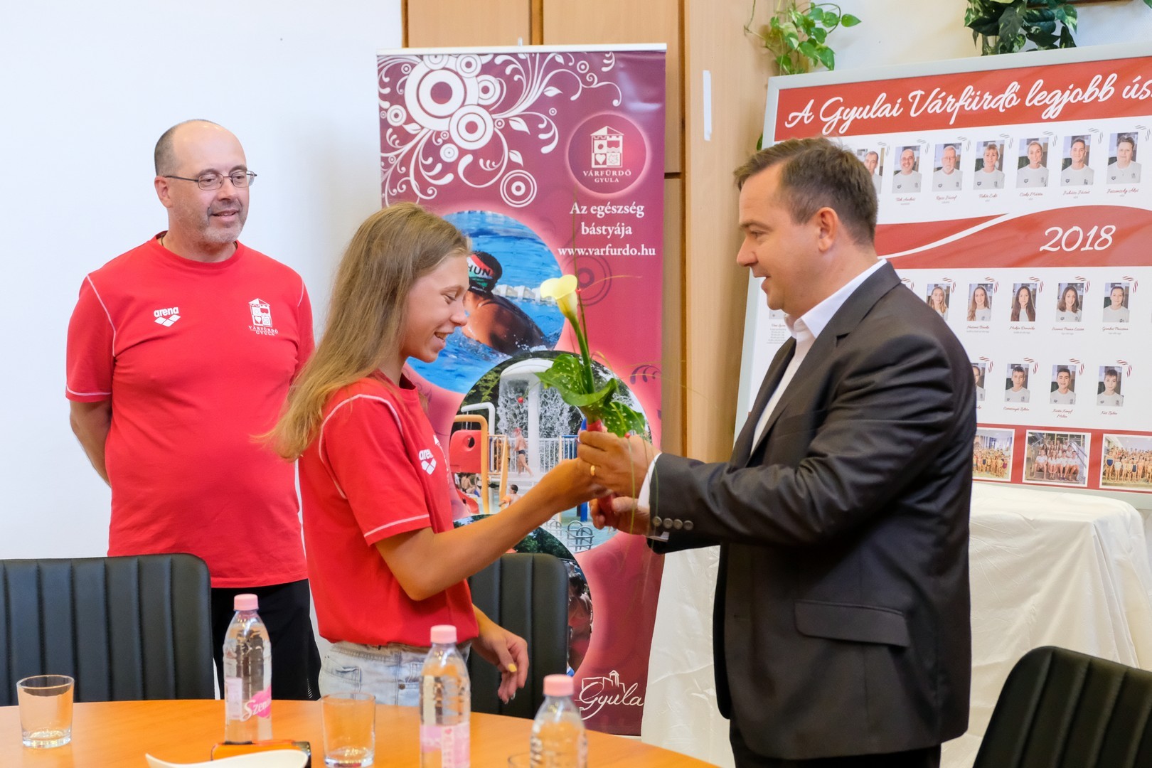 Kónya István, Gyula város alpolgármestere egy szál virággal fejezte ki köszönetét Veres Laurának és a Gyulai Várfürdő edzőstábjának. Az alpolgármester elmondta, a mostani úszósikerek annak is köszönhetők, hogy 2000-ben elindult a fürdővárosban az iskolai úszásoktatás, 2011. április elsejétől pedig átkerültek ezek a feladatok a Gyulai Várfürdőhöz.