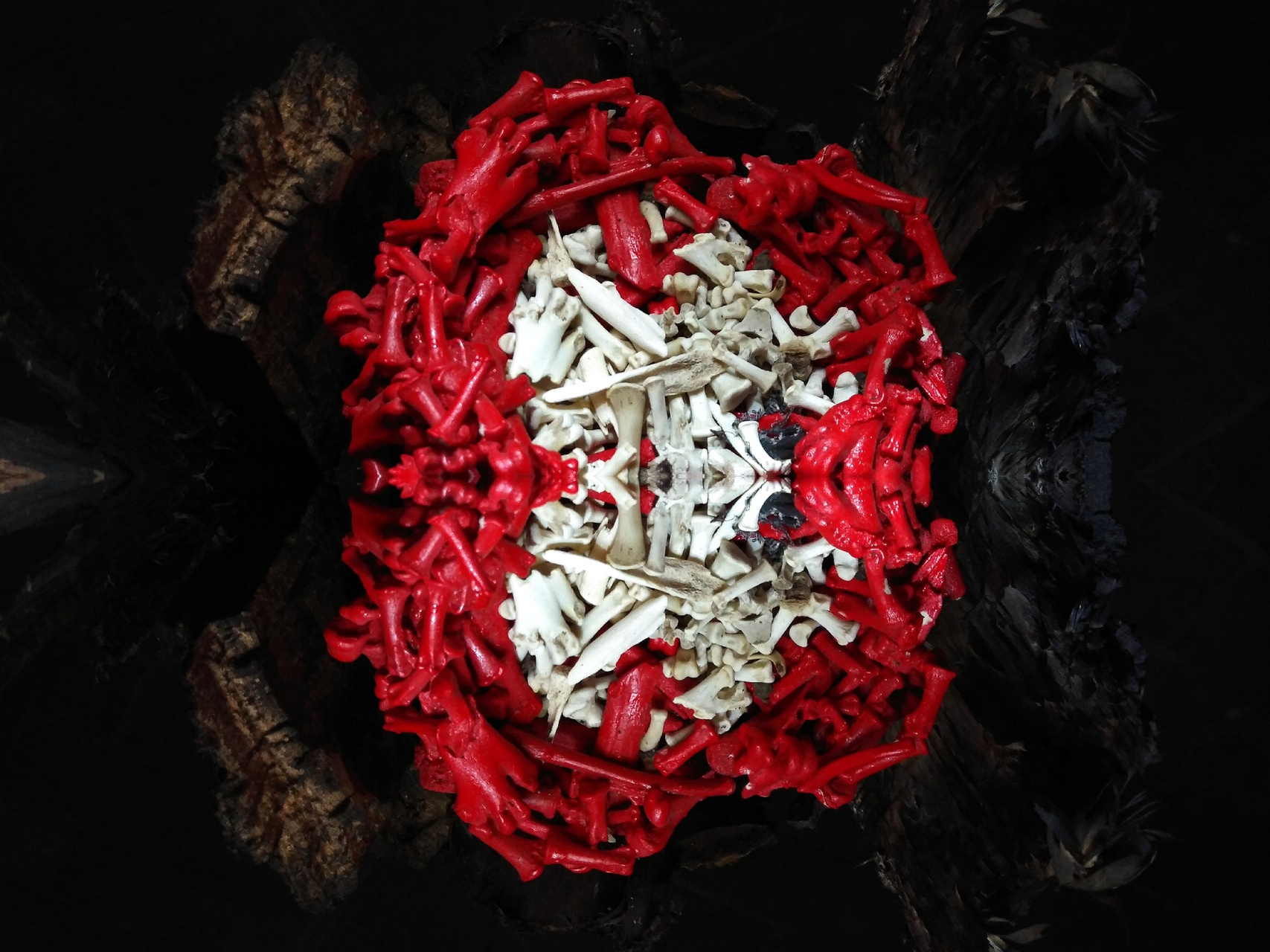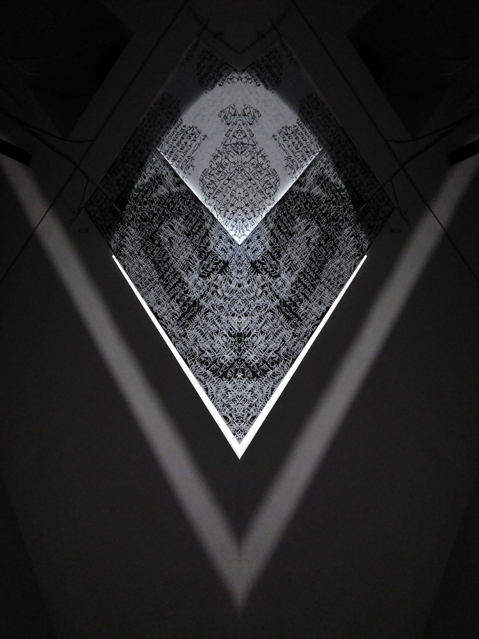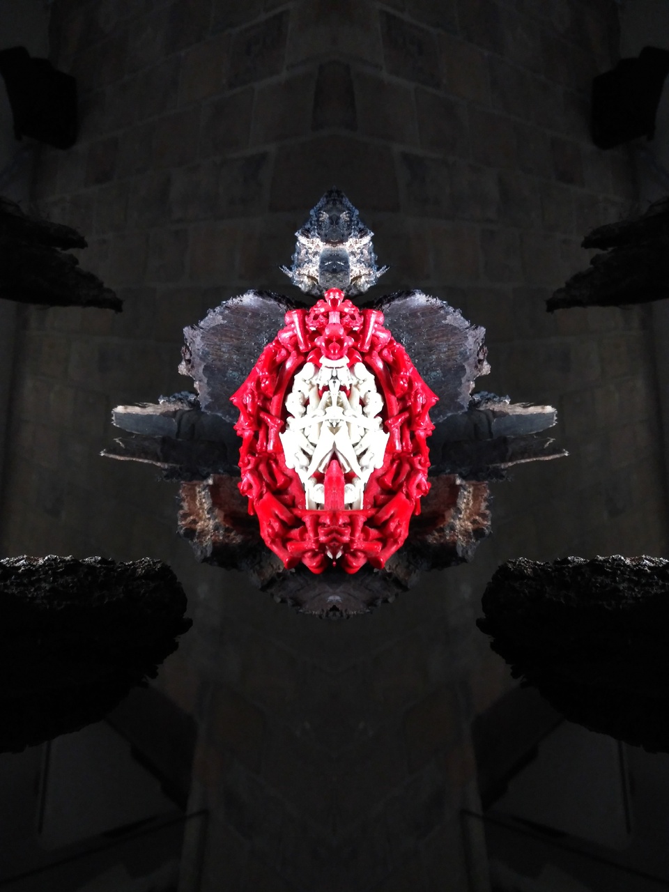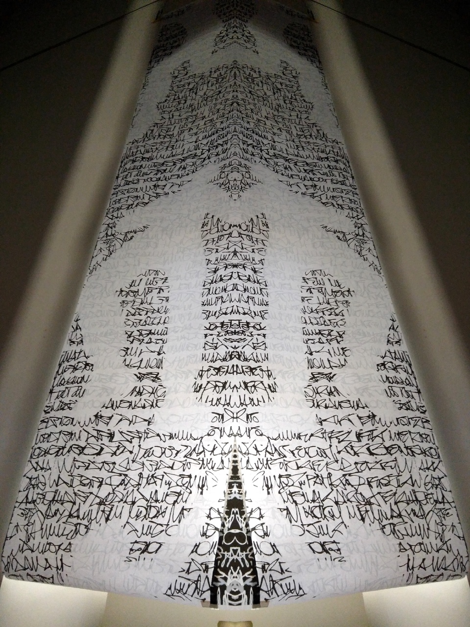 Az életfa úgy vezet fel bennünket az égbe, hogy közben törött a törzse, folytatta méltatását BMZ. Az tehát, amit a toronyban látunk, egy buherált fa. Egy halott fából előteremtett új világ, új dimenzió. Ha belenézünk a repedésébe, azt tapasztaljuk, hogy nem is áll ez a fa, hisz fény jön át rajta. Mégis van benne egy fészek, van benne biztonság. Hogy a kompozíciót miért veszik körül testkontúrok, lélektelen anyagok a végtelenített szövegekben, arra is elhangzott magyarázat: azért, mert nagyon fontos, hogy az eseményhorizont végén legyen elengedés. A kiállításban ez megtörténik.