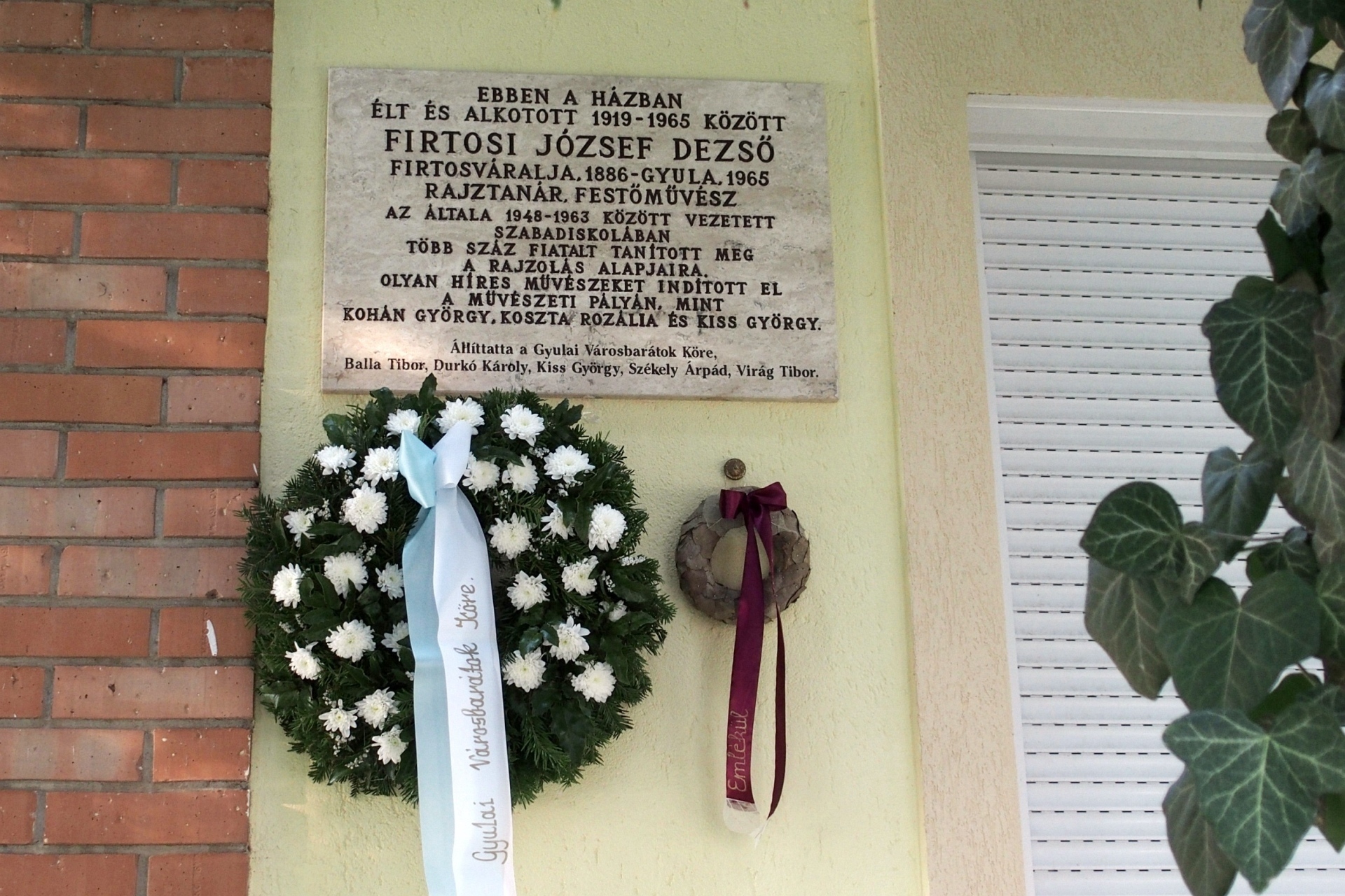 5 évvel ezelőtt, 2014. július 29-én firtosi József Dezső tiszteletére állított márványemléktáblát egykori lakhelyén a Gyulai Városbarátok Köre. A polgári leányiskolában, később az 1. Számú Általános Iskolában tanított a kitűnő rajztanár, festőművész, aki az Egyedi utca 22. szám alatt lakott. Az avatás helyszínén Székely Árpád, az emléktábla-állítás kezdeményezője köszöntötte a megjelenteket. Avatóbeszédet Kiss György Munkácsy-díjas festő és éremművész mondott. Firtosi József Dezső márványtábláját Kiss György és Durkó Károly, a Gyulai Városbarátok Körének elnöke leplezte le. Az avatáson közreműködött az Erkel Ferenc Vegyeskar.