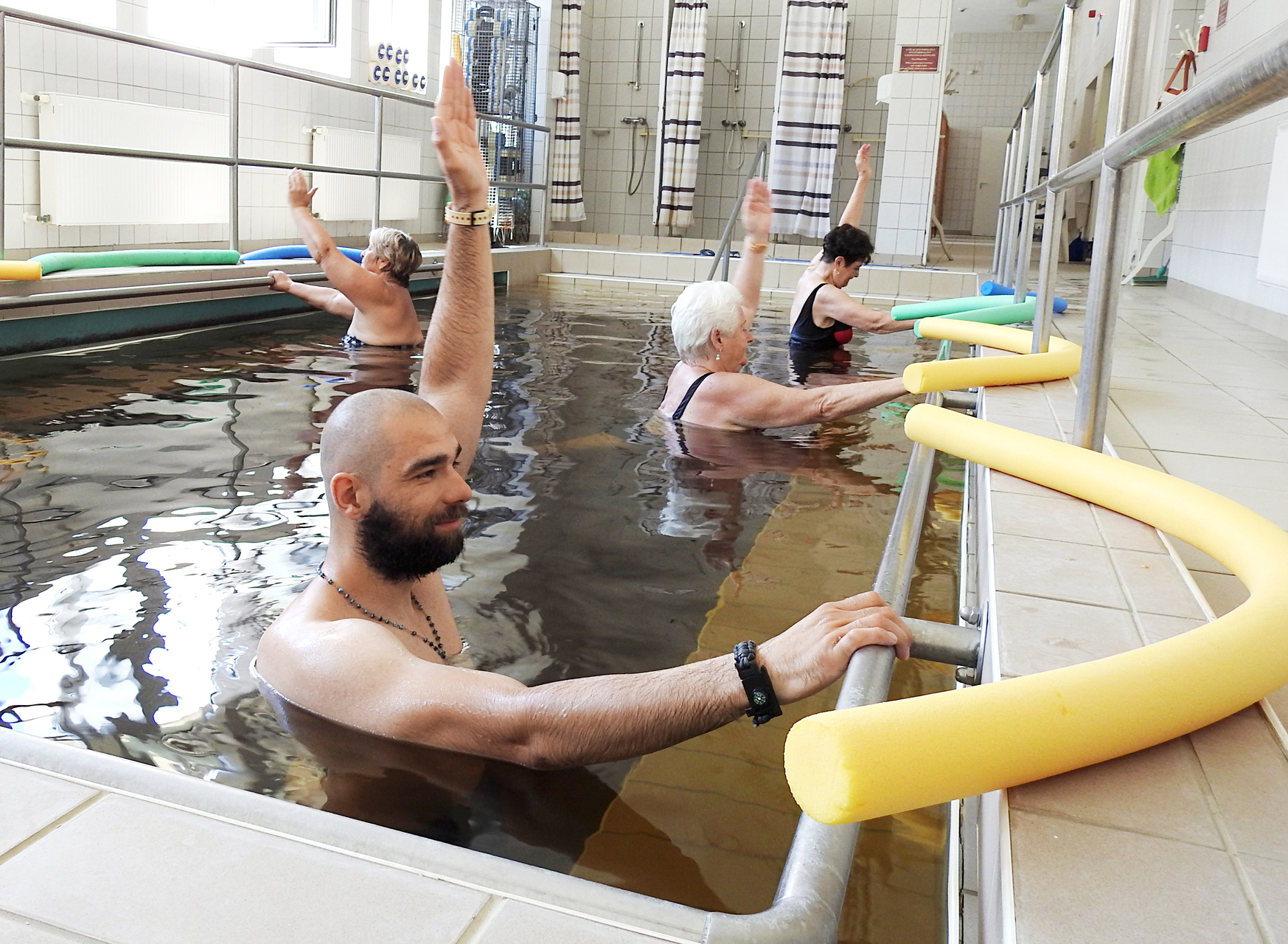 A súlyfürdő szintén hatékony része a terápiának, hiszen általa eltávolíthatók egymástól a porckorongok, így megnyújtható a gerincoszlop – fejtette ki a reumatológus szakorvos.