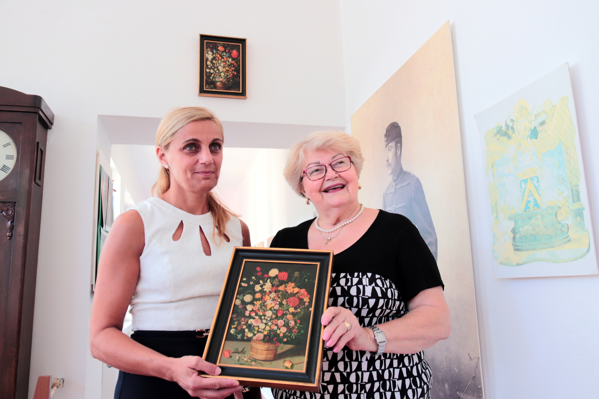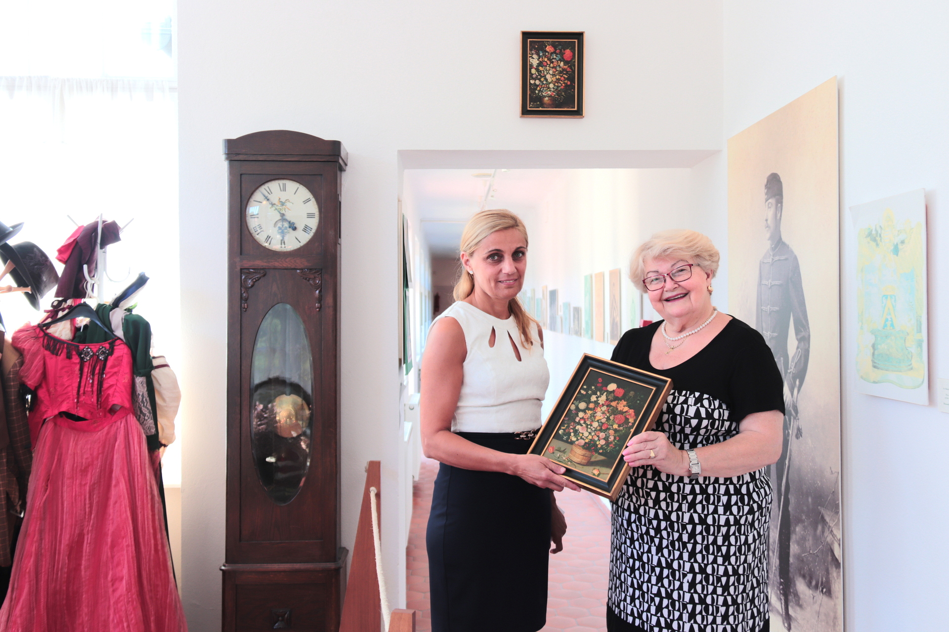 Az átadás-átvétel pillanatát július 20-án, szombaton volt alkalmunk lencsevégre kapni. Ekkor tudtuk meg az adományozótól, hogy korábban már több alkalommal is megajándékozta az Almásy-rezidenciát. Az említett festményen kívül Oroszné Árgyelán Ilona igazgatónak egy teljes sváb női népviseletet is adott már át, ez az állandó kiállításban tekinthető meg, illetve hagyott már itt karosszéket és egyéb művészeti alkotásokat is.