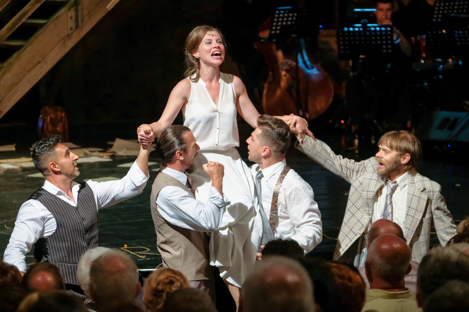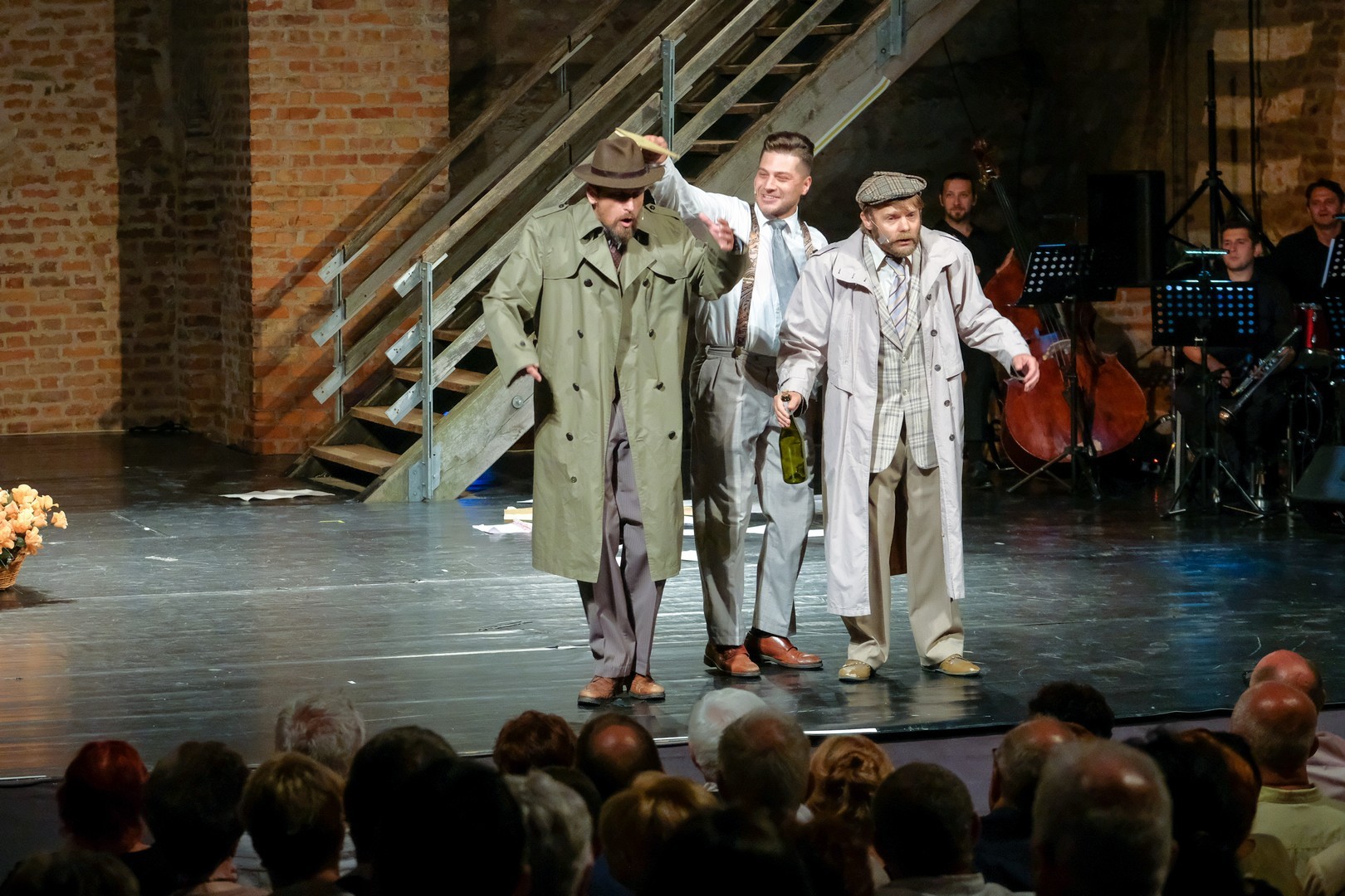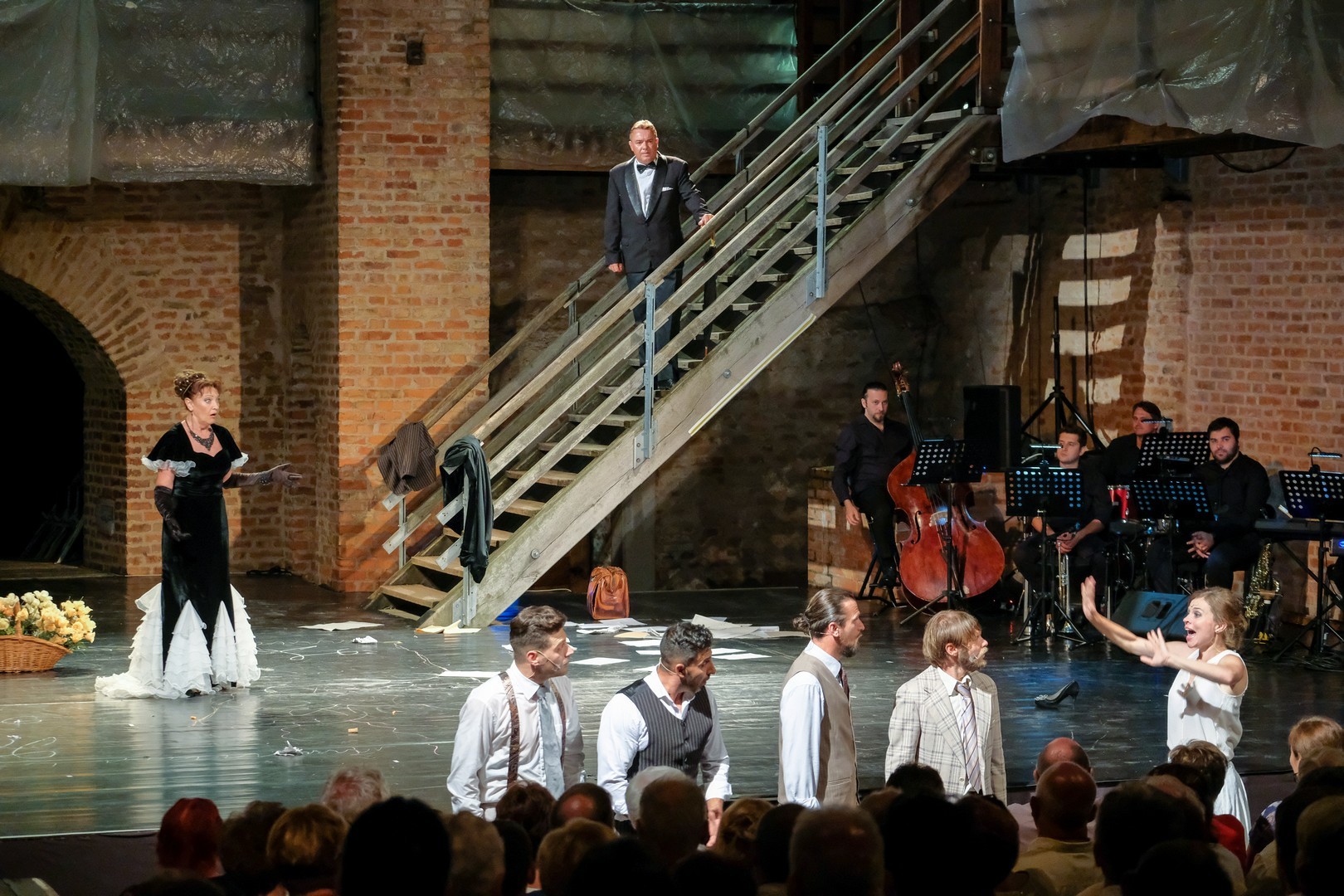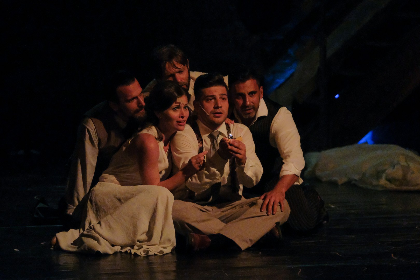 Most, hogy a világban ismét félelemre okot adó hadmozgások zajlanak, a Szigligeti Színház társulata tavaly úgy látta, aktuális színpadra állítania a 1918-ban Nagyváradon született Hubay Miklós zenés tragédiáját. Projektjébe egy teljes zenekart is bevont, karmesterrel együtt (zenei vezető: Brugós Anikó, hangszerelés: Barabás Árpád), ami a kissé lassan építkező produkciónak hatalmas előnyére vált (rendező: Novák Eszter).