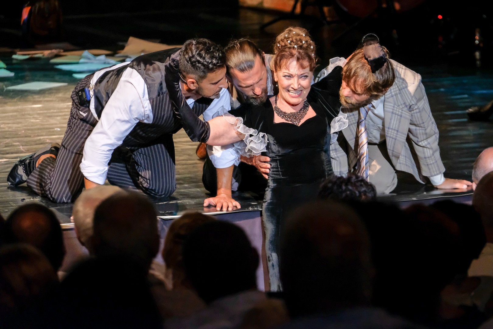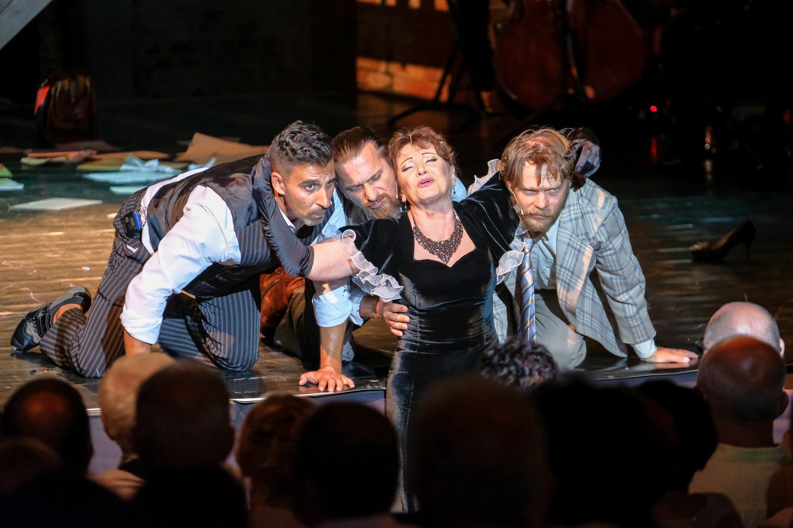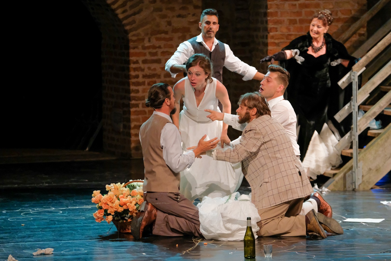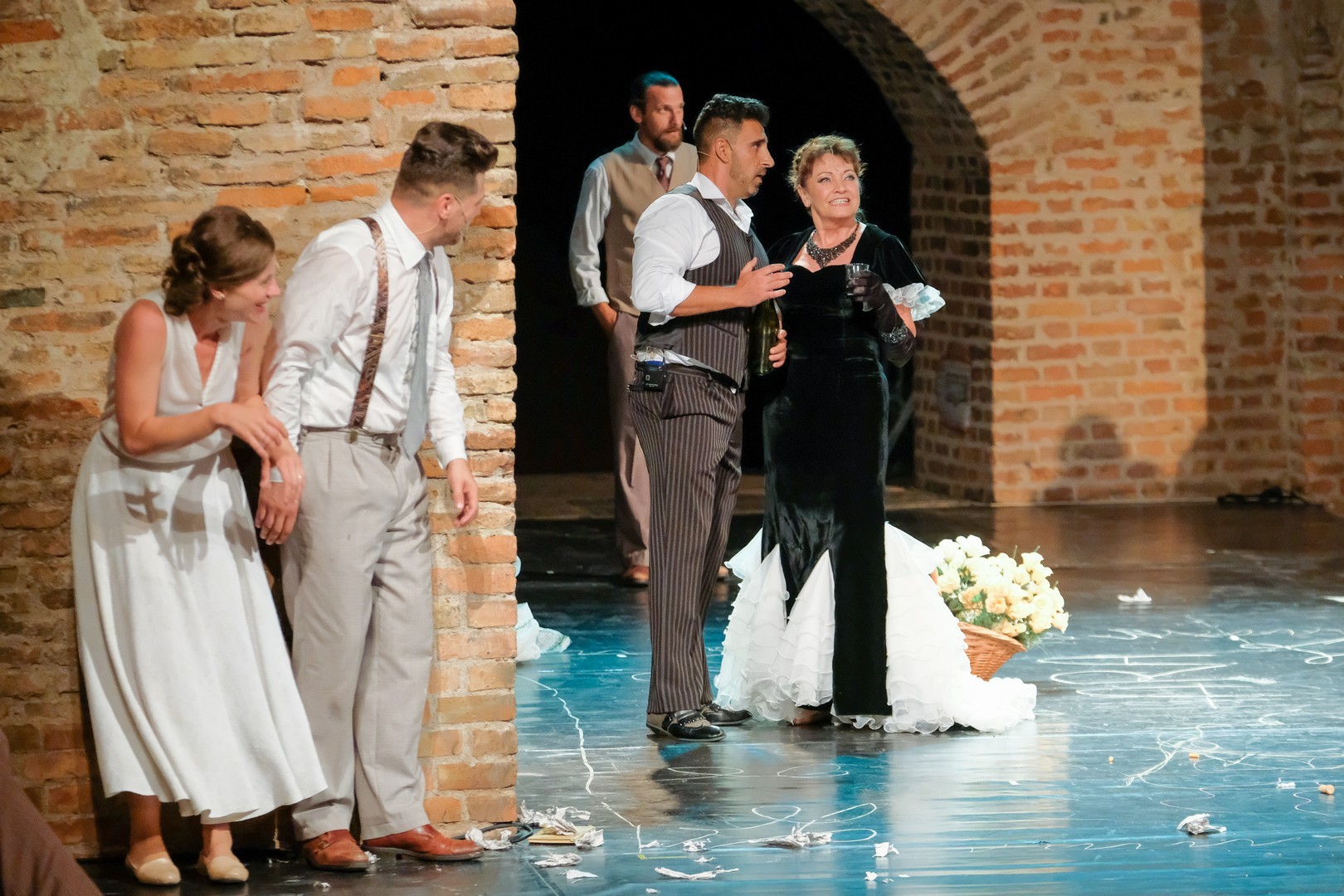Most, hogy a világban ismét félelemre okot adó hadmozgások zajlanak, a Szigligeti Színház társulata tavaly úgy látta, aktuális színpadra állítania a 1918-ban Nagyváradon született Hubay Miklós zenés tragédiáját. Projektjébe egy teljes zenekart is bevont, karmesterrel együtt (zenei vezető: Brugós Anikó, hangszerelés: Barabás Árpád), ami a kissé lassan építkező produkciónak hatalmas előnyére vált (rendező: Novák Eszter).