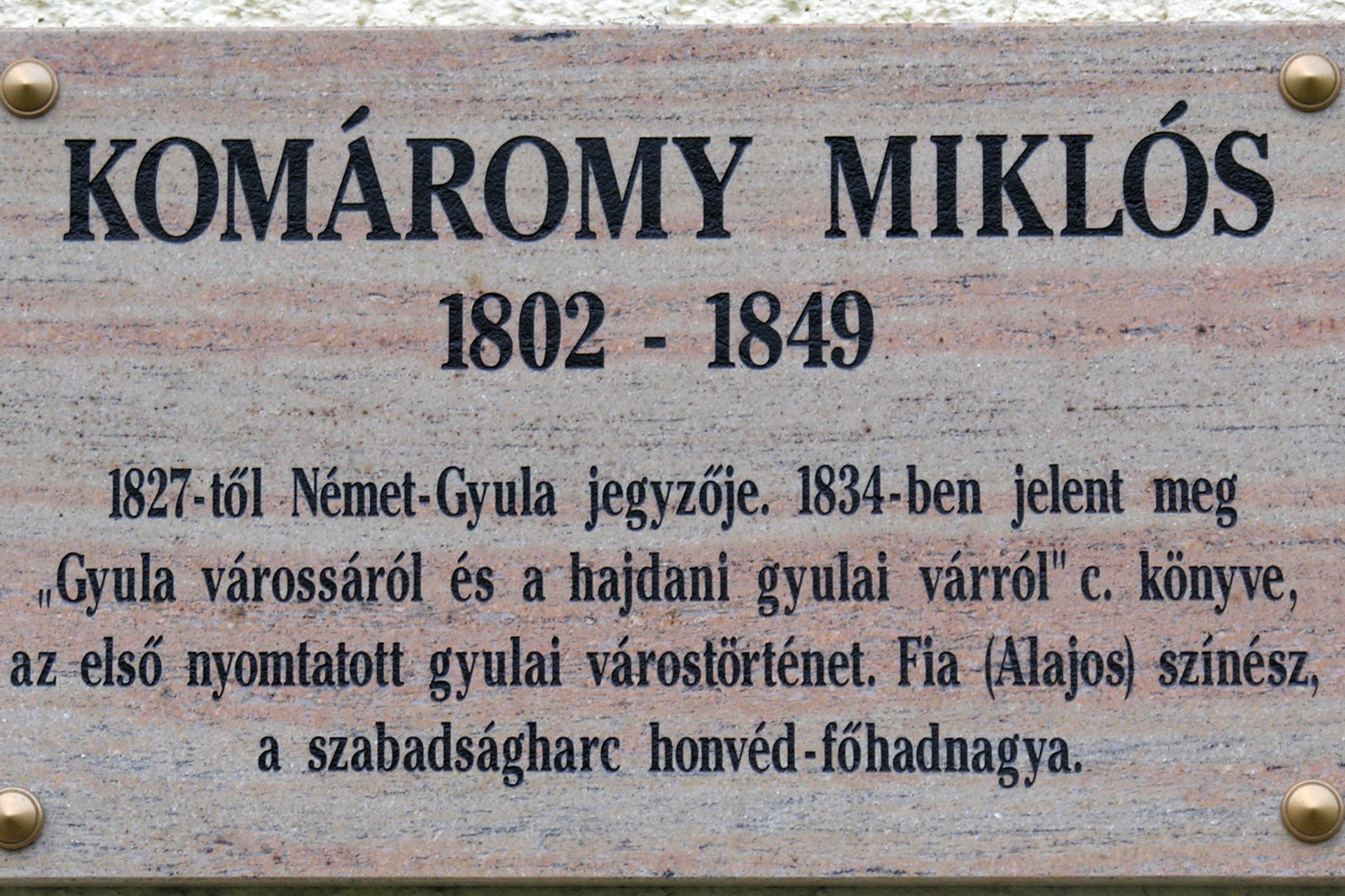 170 évvel ezelőtt, 1849. augusztus 11-én hunyt el Békéscsabán Komáromy Miklós (született 1802-ben) jegyző, Gyula város második történetírója. Iskoláit Nagyváradon végezte el. 1822-ben került Gyulára, ekkor lépett Békés vármegye szolgálatába. 1827-ben Német-Gyula jegyzője lett. 1846-ig élt és dolgozott a városban. Ő írta meg 1834-ben Gyula második várostörténetét, amely az első könyv alakban megjelent településtörténetünk. Fia, Alajos, a Nemzeti Színház jeles művésze volt.