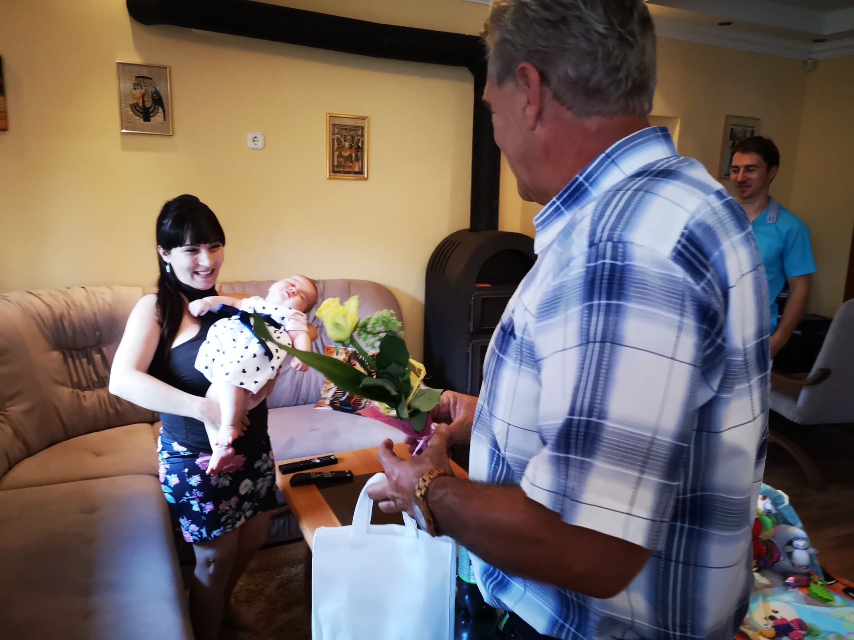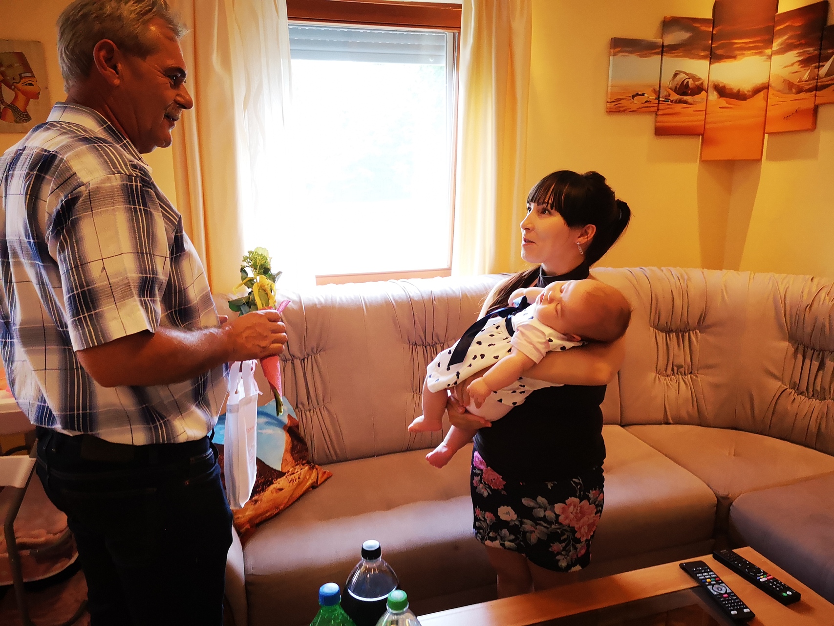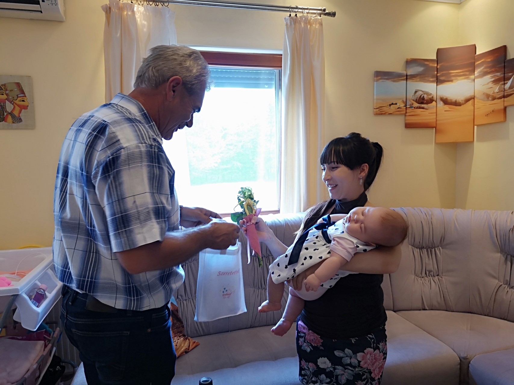 Kovács Szilvia Dorinát és édesanyját köszöntötte Szabó Károly képviselő augusztus 5-én a városi Babaruha program keretében. A baba és édesanyja egy szál rózsát, horoszkópos babaruhát és Póka György egyik festményét kapta ajándékba.