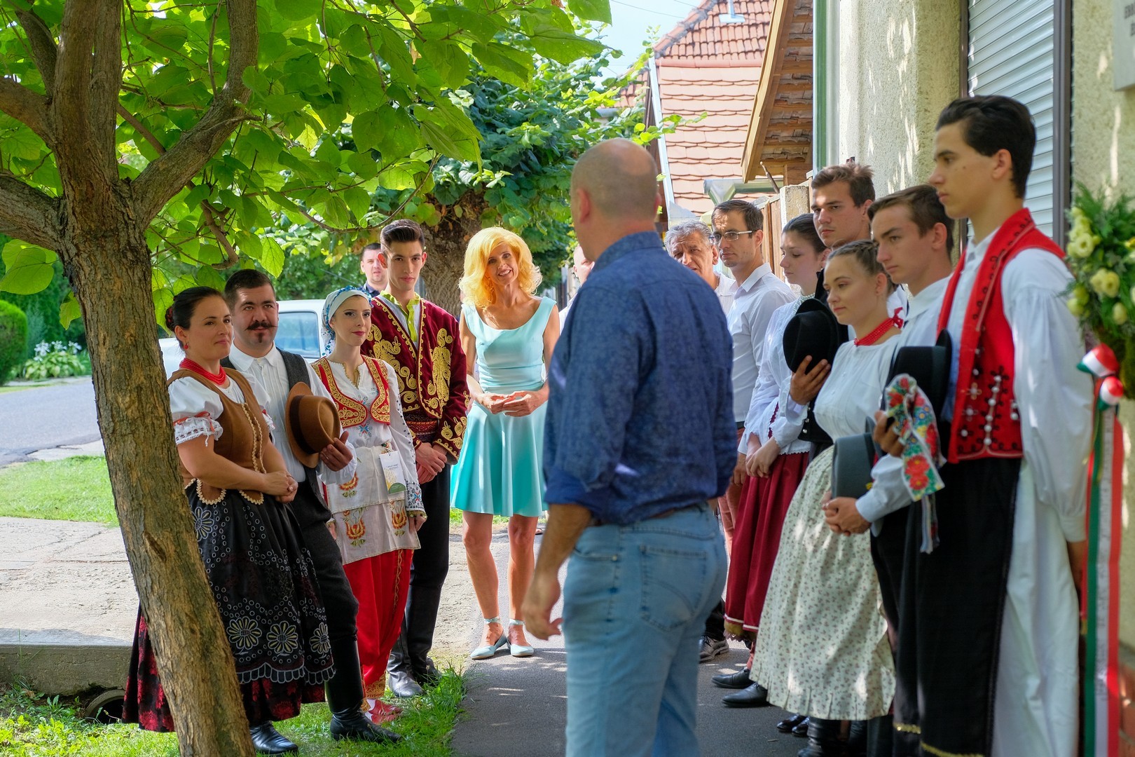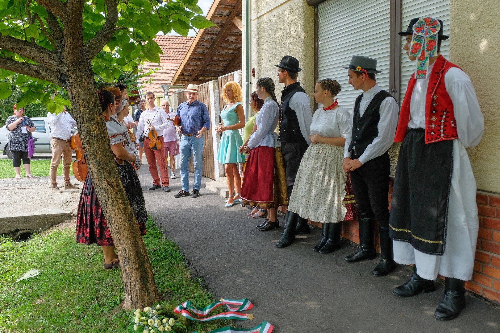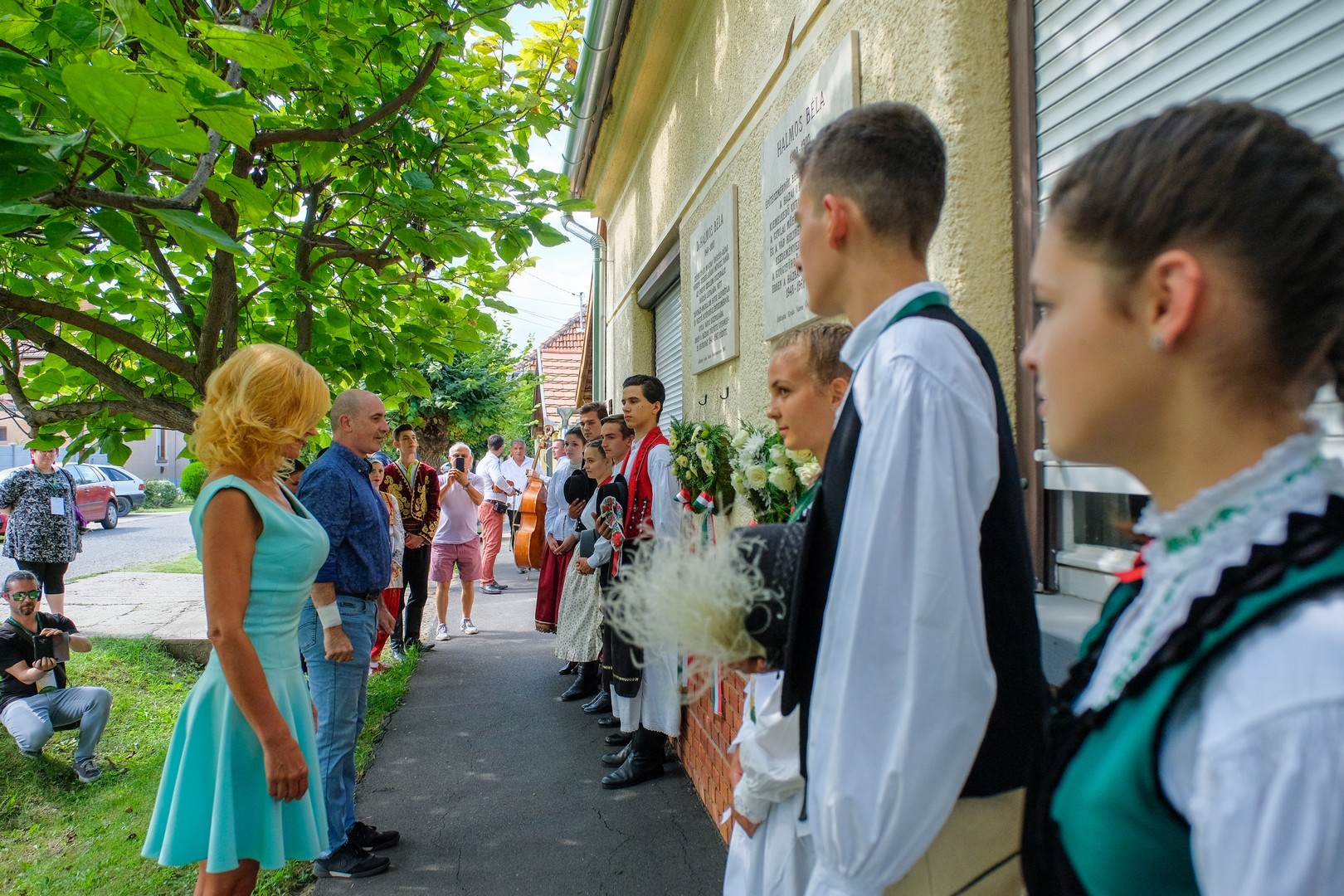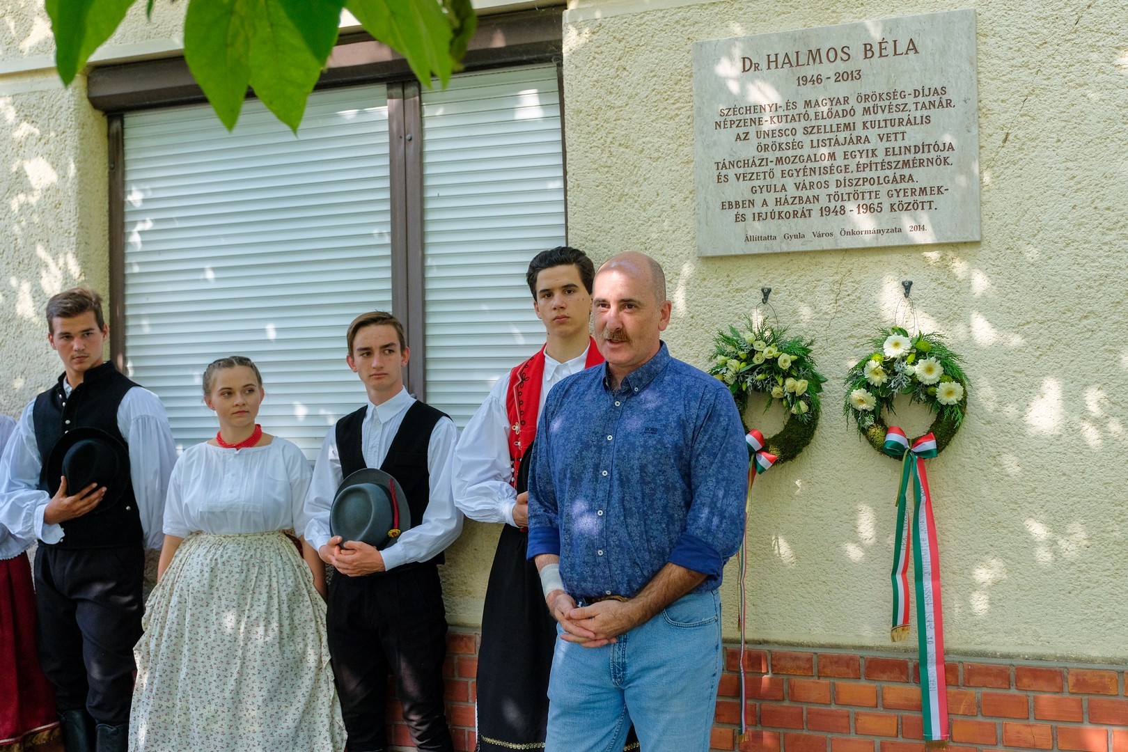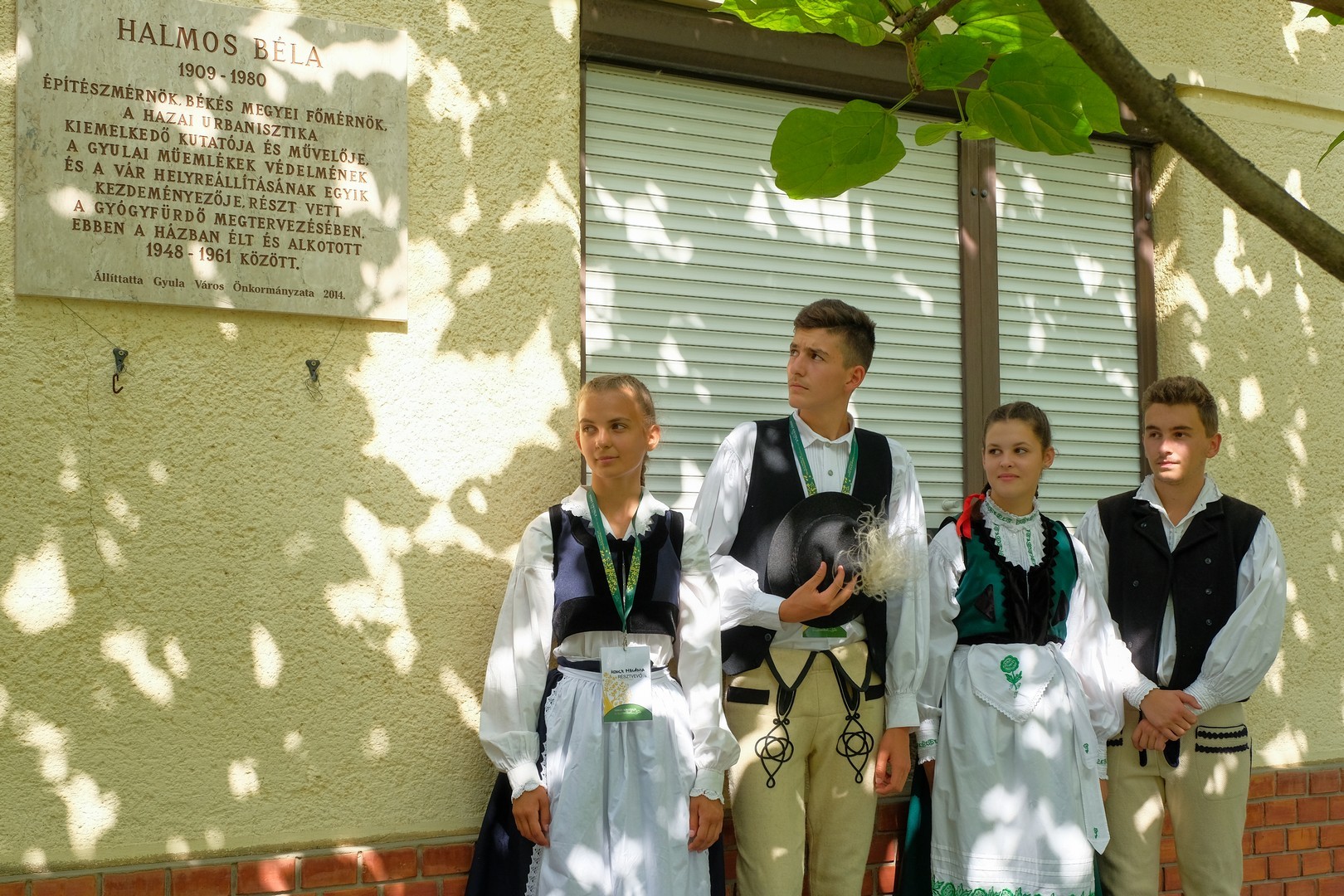 Bogártelki lakodalmast húztak el elsőként annál az Ecsedi utcai háznál, amelyben id. Halmos Béla építészmérnök és fia, ifj. Halmos Béla Széchenyi-díjas népzenekutató, népzenész lakott Gyulán. Az emléktáblák alatt Patyi Zoltán szólt az egybegyűltekhez.