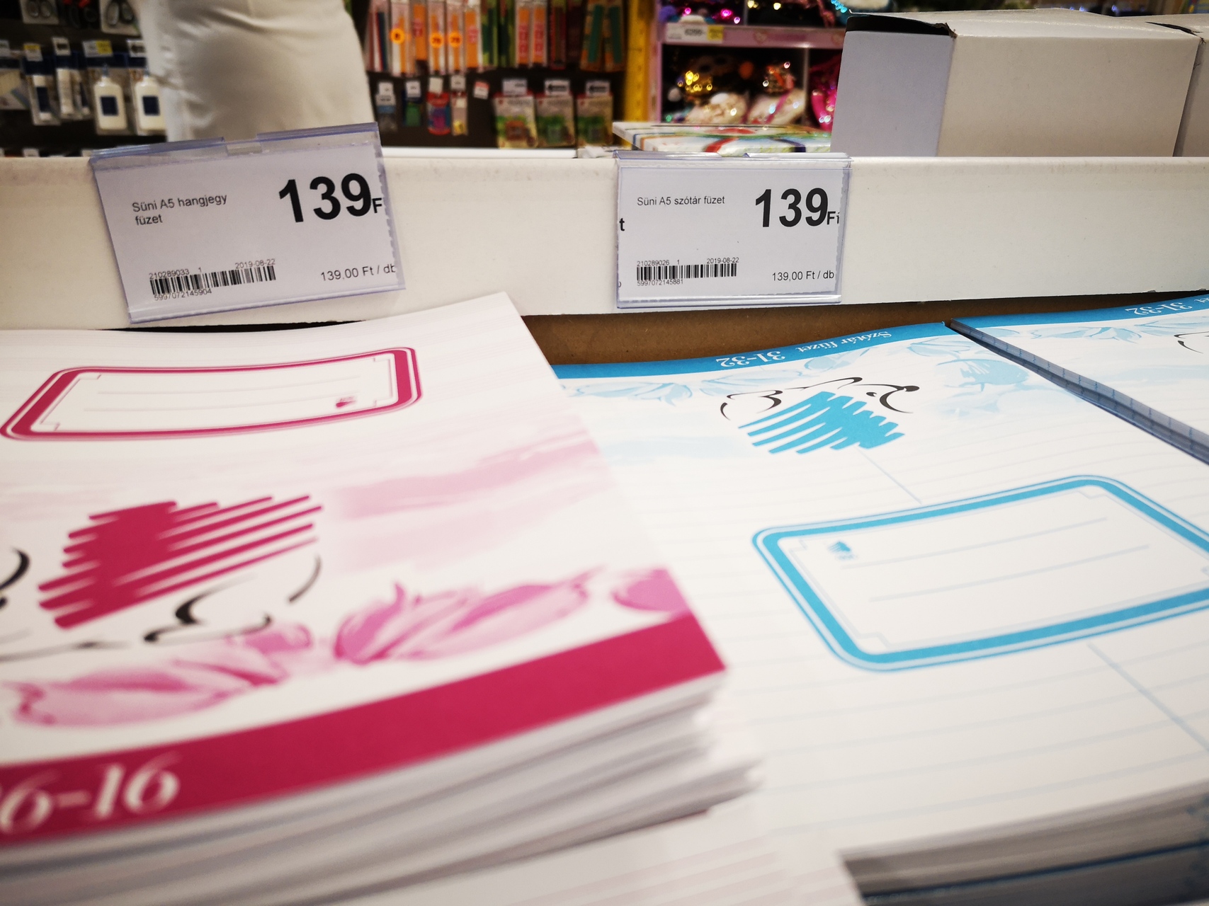 A meglátogatott kisboltban körző 260 forinttól, a legolcsóbb vízfesték 700 forintos áron kapható, a legegyszerűbb A5-ös méretű csíkos füzet pedig 60 forintba került. A minőséget ezúttal nem figyeltük, hiszen más és más gyártók termékeit forgalmazzák az üzletek, kizárólag az adott termék legolcsóbb darabjainak árát jegyeztük fel.