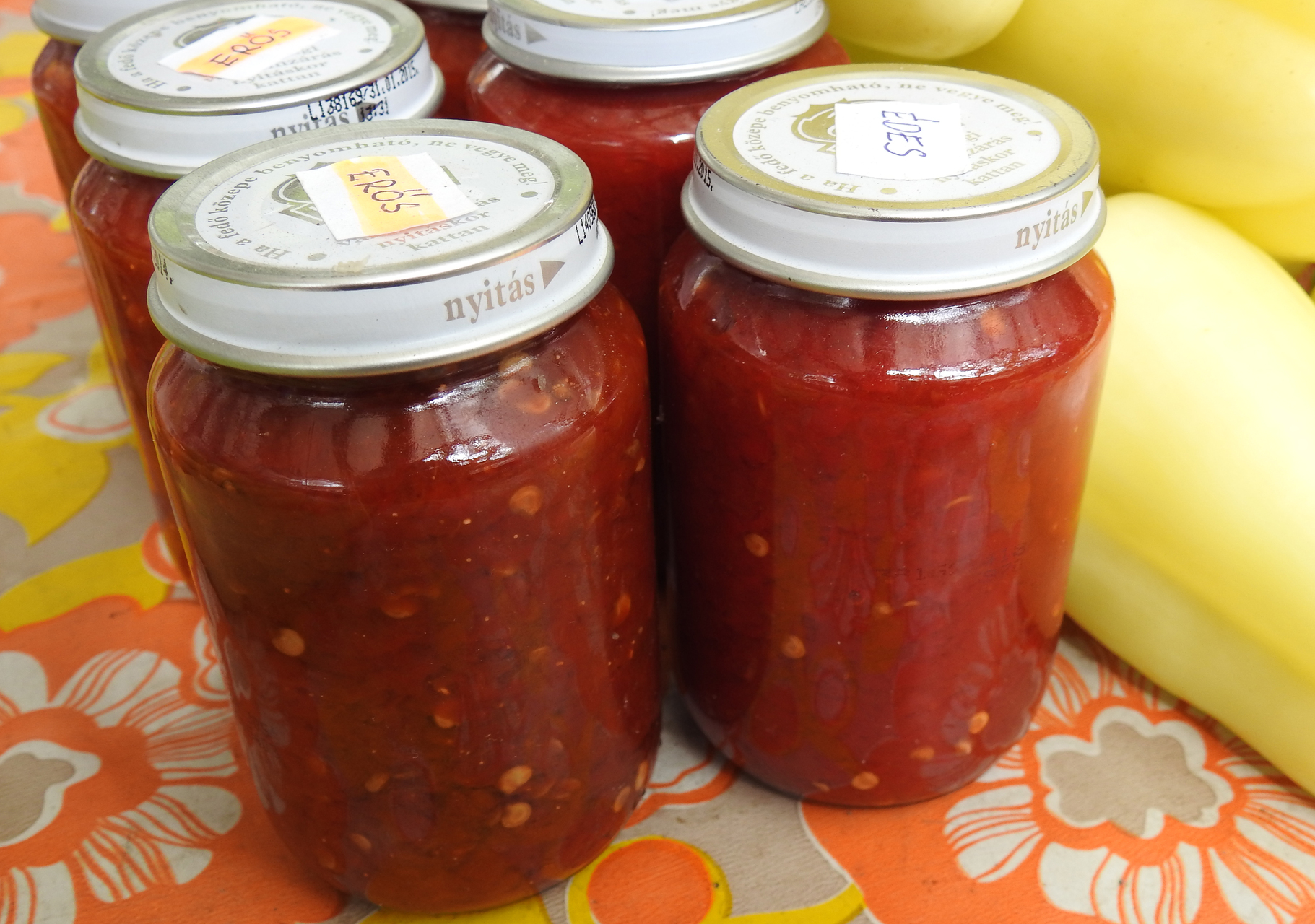 Kétféle darált paprika is kapható a gyulai piacon, mindkettő tartósítószer nélkül készül.