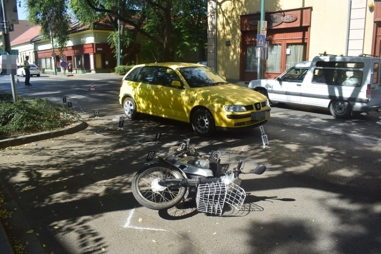 Személygépkocsi és egy robbanómotoros kerékpárral közlekedő férfi ütközött össze szeptember 14-én délelőtt Békésen, a Szánthó Albert utca és a Rákóczi utca kereszteződésében. A kerékpáros könnyű sérülést szenvedett – írja a police.hu.