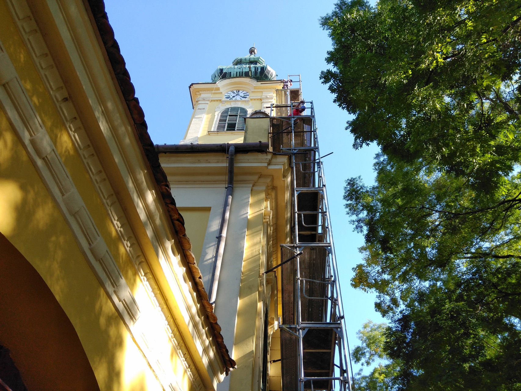 A beavatkozás során megerősítik a tetőszerkezetet, és lecserélik ennek külső héjazatát. A régi helyére, amely a városháza felőli részen pala, Rheinzink-, vagy titáncink lemez fog kerülni. Erre már nagyon nagy szükség volt, hisz folyamatosan beáztak, hiába nejlonozták le a padlást, hangsúlyozta a tiszteletes.