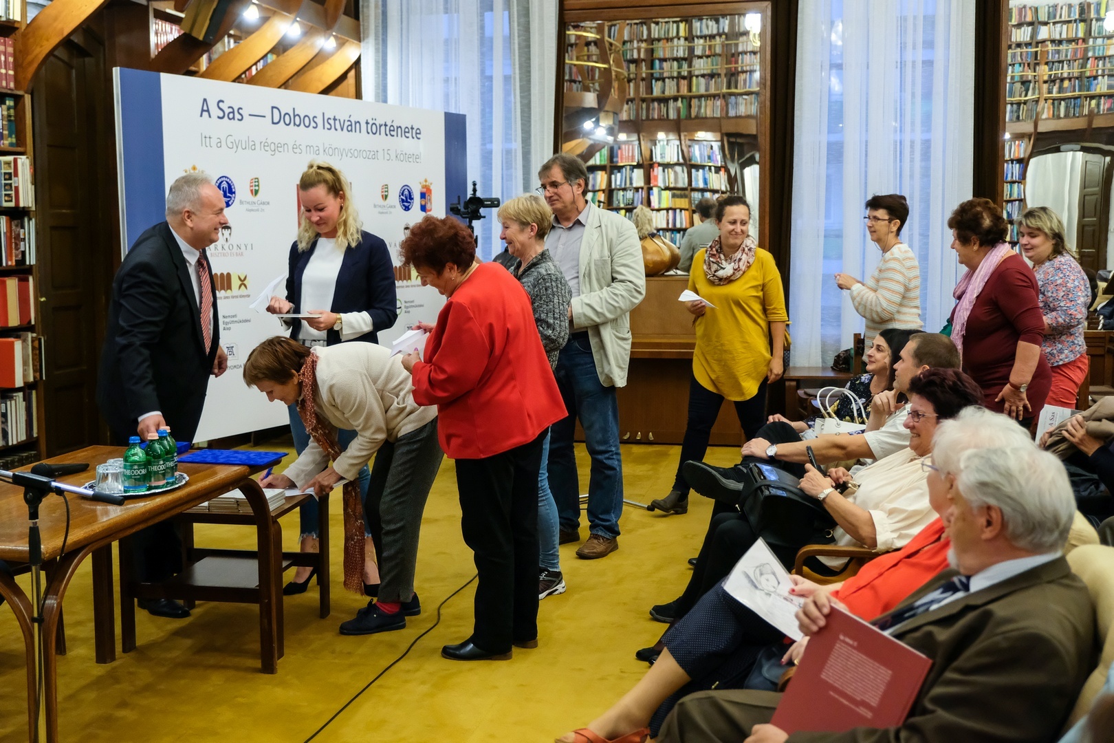 A Gyulai Évszázadok Alapítvány legfrissebb kötetének bemutatója ezúttal is játékkal kezdődött. A szervezők tizenöt papírrepülőt rejtettek el az ülések alatt, így azok a jelenlévők, akik pont egy ilyen széken foglaltak helyet, kaptak ajándékba egyet az alapítvány kiadványai közül.