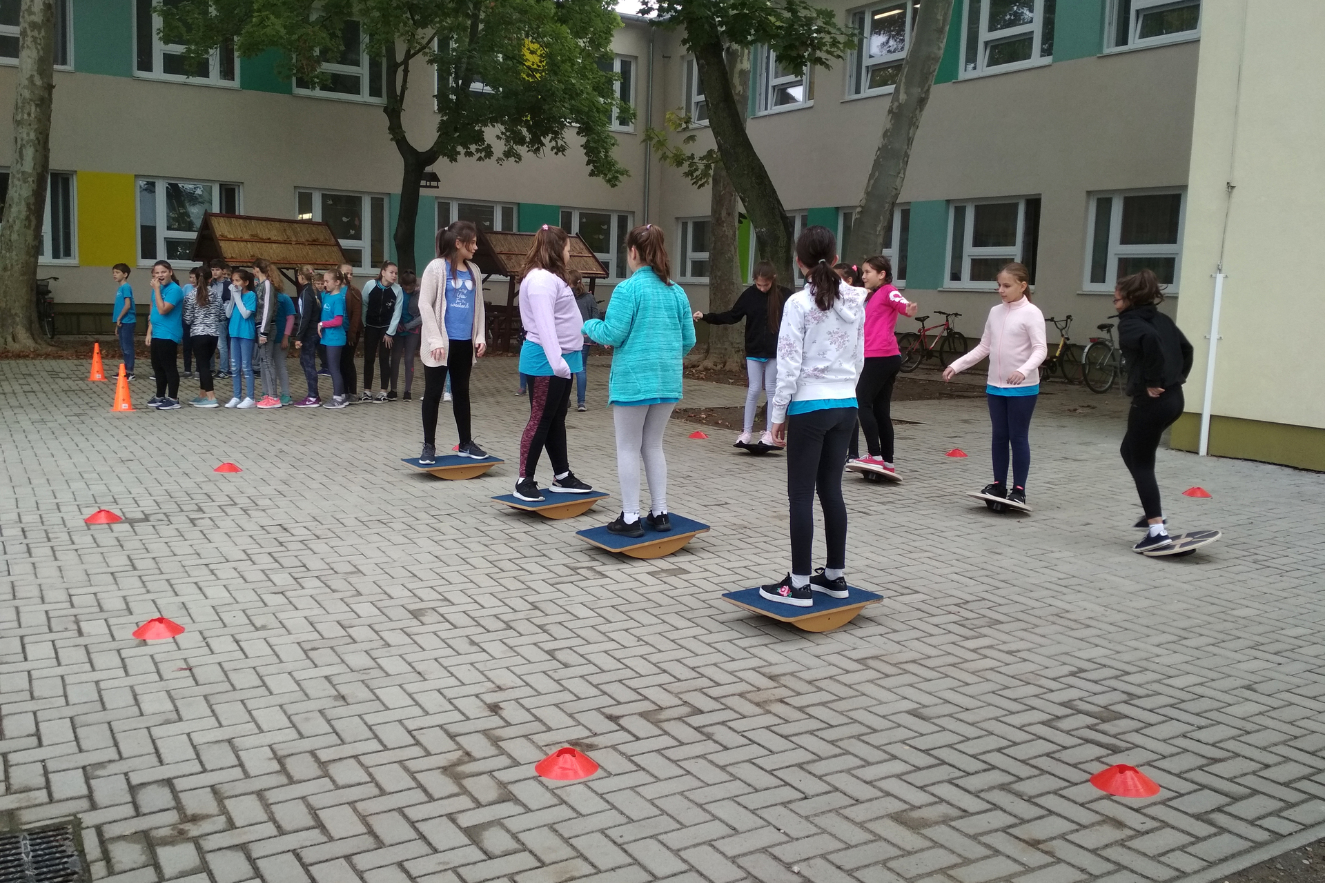 A felsősök három helyszínen, forgószínpad szerűen sportolhattak. Sorversenyek, biciklis akadálypálya, dobó és ügyességi gyakorlatok, valamint labdajátékok és tartásjavító torna várta az osztályokat. Az Európai Diáksport Napja rendezvényhez csatlakozva a 4–7. évfolyamosok bevonásával a diákok teljesítették a vállalt 2019 méteres futótávot.
