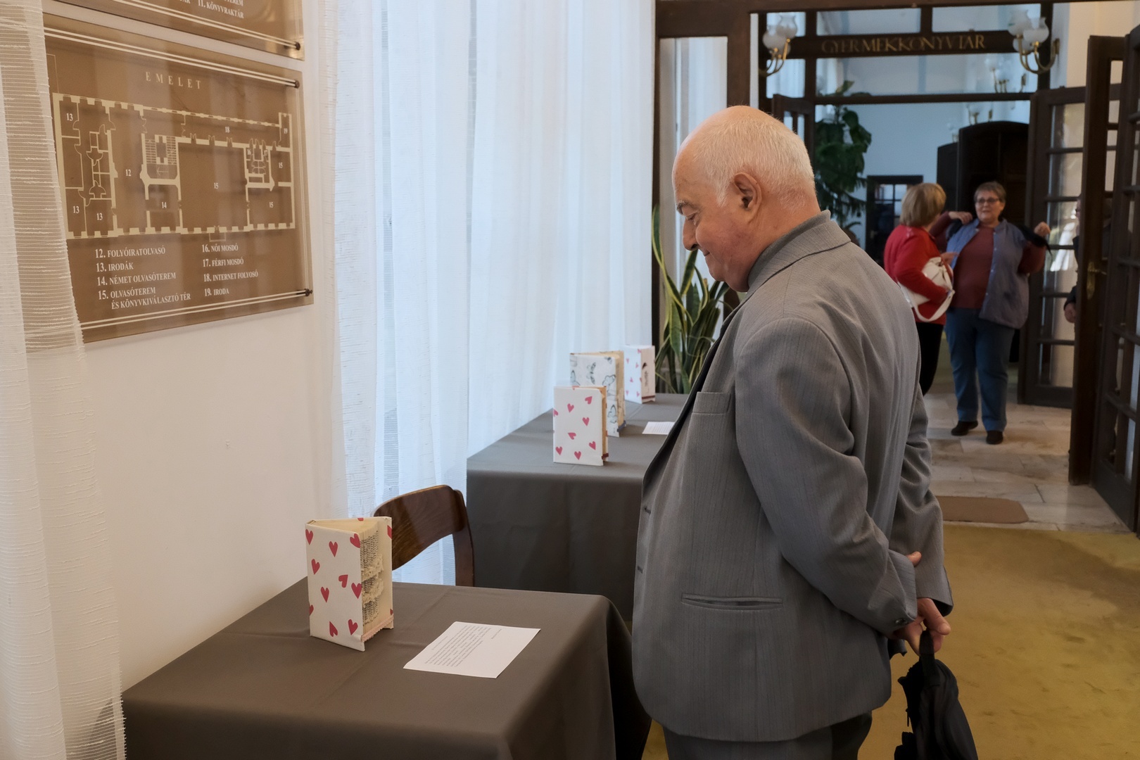 Dézsi János úgy vélte, fontos, hogy a könyvnek legyen jó képe, s az mindenki tetszését elnyerje. Említést tett arról is, hogy a szűkebb értelemben vett könyvtáros szakma különböző szempontok alapján értékeli a kötetek esztétikáját. A legszebb tipográfiát felmutató könyveket például Fitz József-díjjal szokták elismerni. Menyhárt Erzsébet munkáinak láttán az is felidéződött benne, hogy az Amerikai Egyesült Államokban dísztárgyként is használják a könyvet. A dekoráció úgy néz ki, mint egy könyvsorozat, de valójában nem az. Hozzátette: a tengerentúliak elsárgulnának az irigységtől, ha olyan alkotásokat látnának, amilyenek a Mogyoróssy-könyvtárba érkeztek.