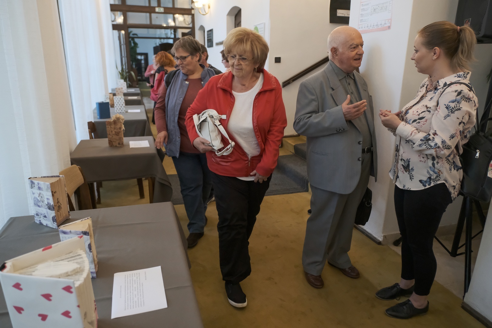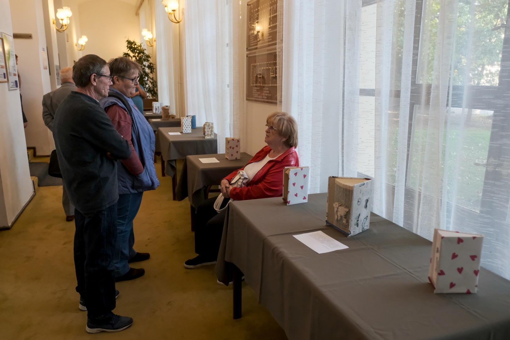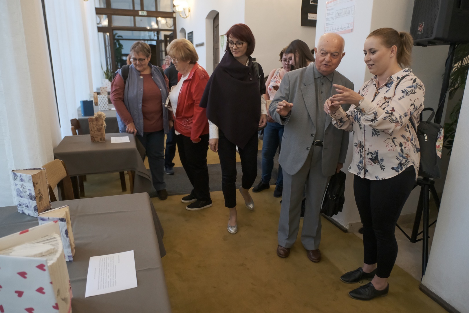 A gyulai születésű magyar-történelem szakos tanárnak ez már a hetedik kiállítása, tudtuk meg a megnyitón. Már amikor az első megnyílt, nagy vágya lett, hogy az anyagot hazahozhassa, és itt, a szülővárosában is bemutassa, mutatott rá Menyhárt Erzsébet. Könyvszobrászattal három éve foglalkozik. Kezdetben nem voltak pontosak a papírhajtásai, nem volt se szép, se olvasható az eredmény, de addig gyakorolt, amíg el nem érte azt a képet, amire azt mondhatta, megfelel. Délutánok, napok mentek rá erre. Ma már akár másfél óra alatt is képes elkészíteni egy egyszerűbb kompozíciót.