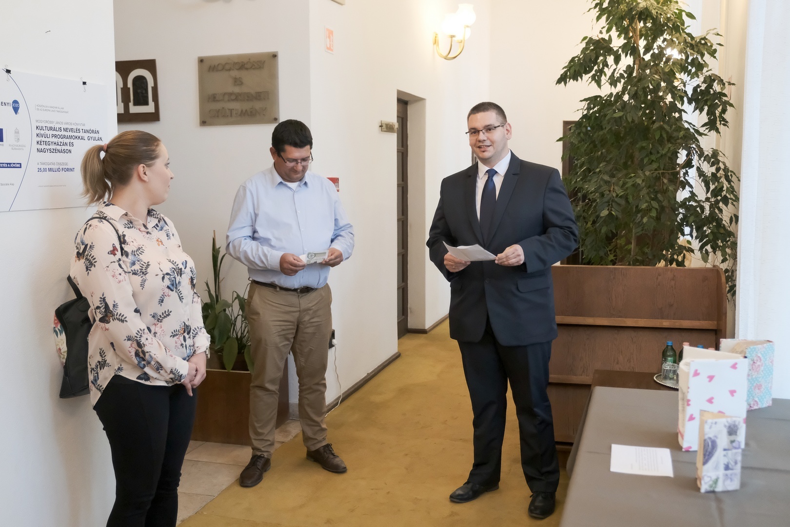 A tárlatot Csige Gábor, Gyula város jegyzője kezdeményezte, ezért az a megtiszteltetést érte, hogy megnyithatta a tárlatot. Elöljáróban kifejtette: a Dézsi Jánossal folytatott levelezésük során felmerült, a könyvtárigazgató pikánsnak tartja arra tett javaslatát, hogy az egykori uradalmi gazdatiszt, Mogyoróssy János adományából létrehozott könyvtárban olyan kiállítás nyíljon, amely a könyvek más célú hasznosításával foglalkozik.