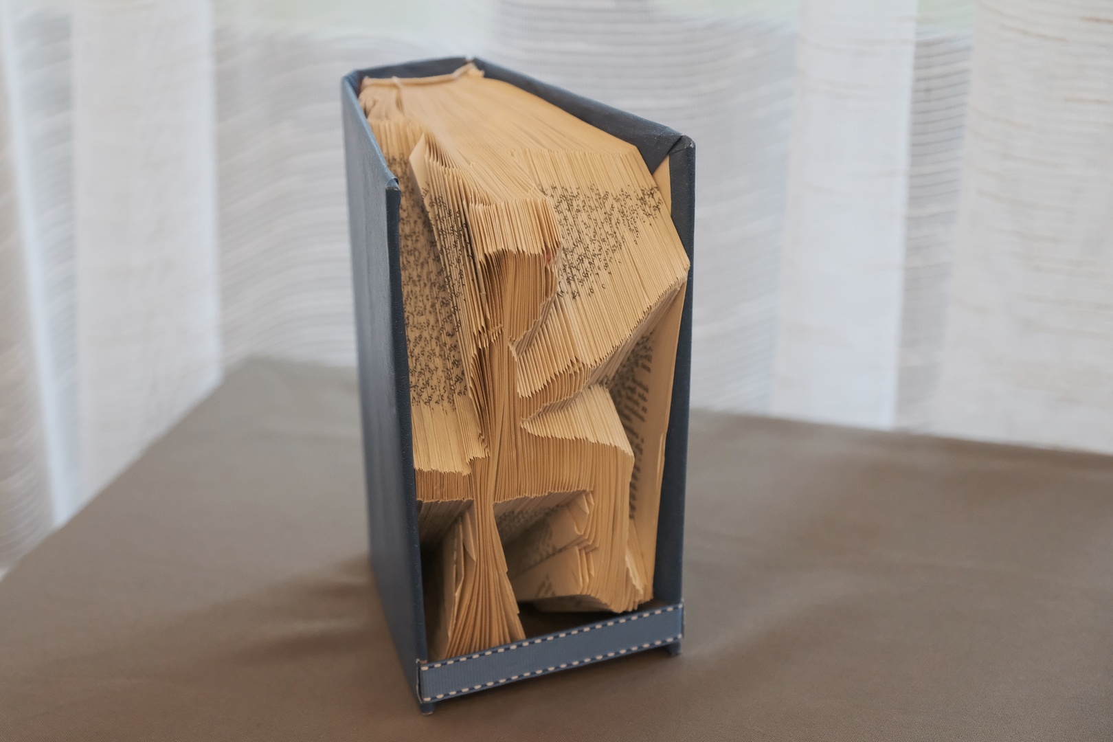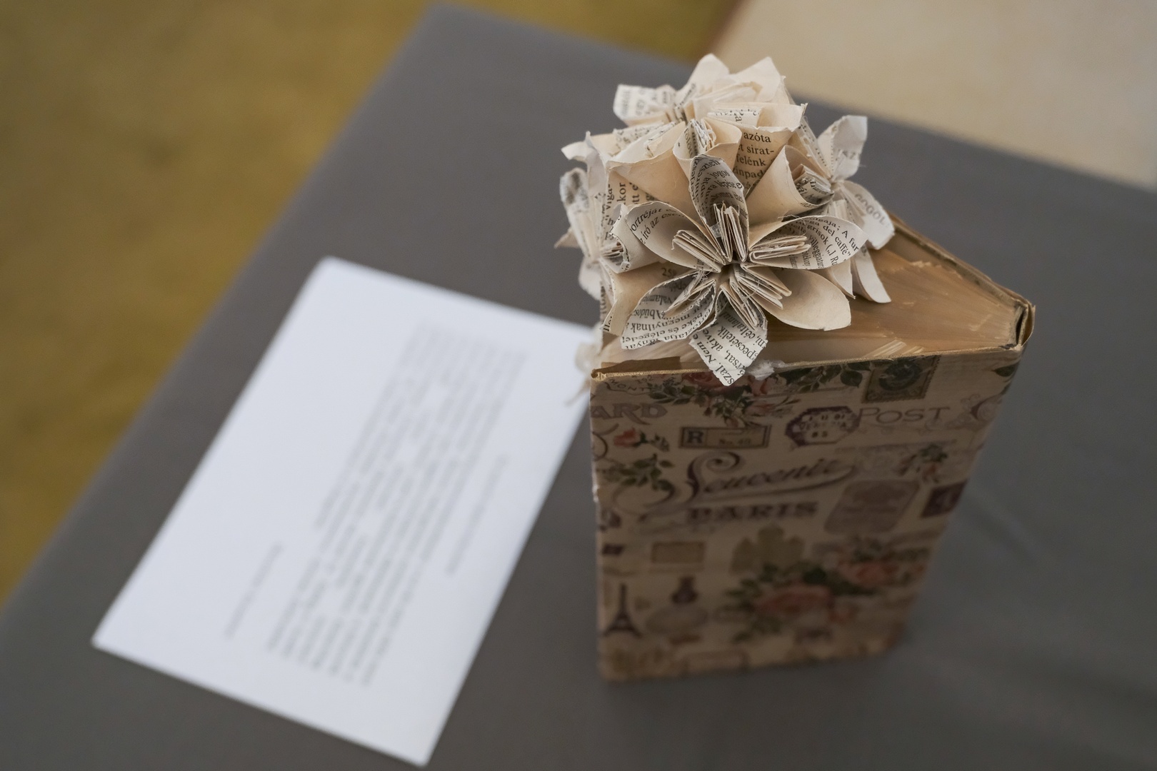 Első alkotása óta csaknem százhetven munkát tett le az asztalra, ebből harminc a sajátja, a többit vagy elajándékozta, vagy megvették, árulta el kérdésünkre. Olykor minta alapján dolgozik, olykor önálló ötletet valósít meg. Általában kiszuperált könyveket használ fel.