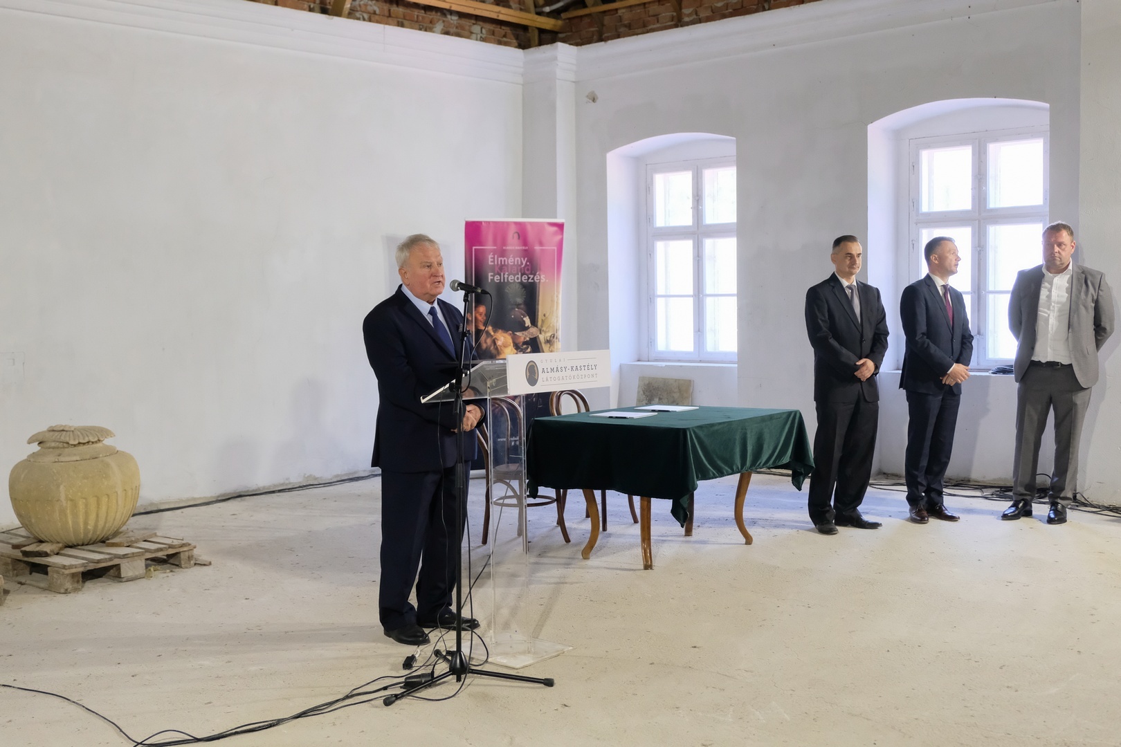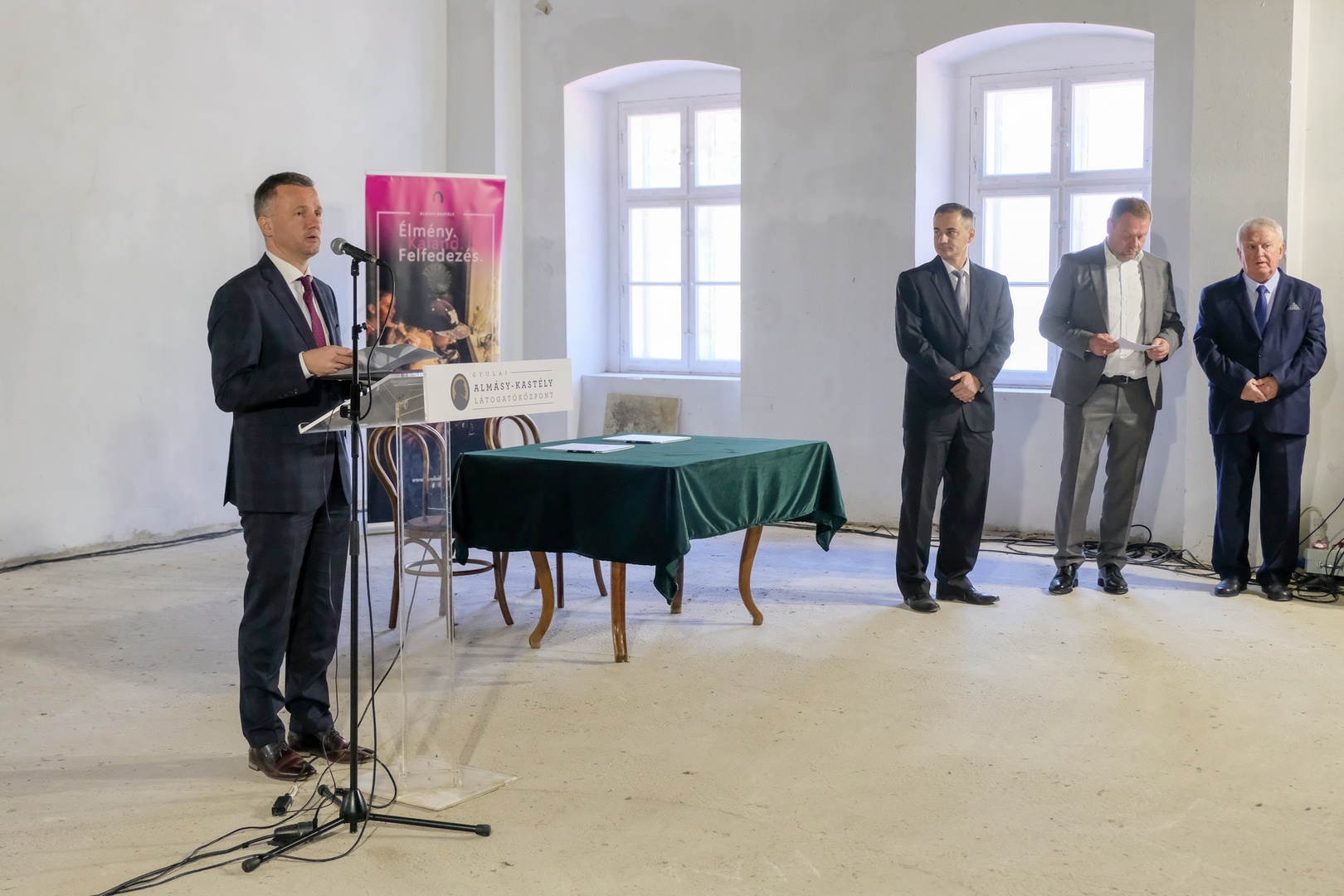 A kiskastélyszárnyról és a beruházás részleteiről Virág Zsolt, a Nemzeti Kastélyprogram és Nemzeti Várprogram végrehajtásáért felelős miniszteri biztos beszélt. Felidézte: az Almásy-kastély Látogatóközpont 2016-ban nyitotta meg a kapuit, de az már a felújítás során biztossá vált, hogy kiskastélyszárny rekonstrukciója nem fog beleférni az akkori keretbe.