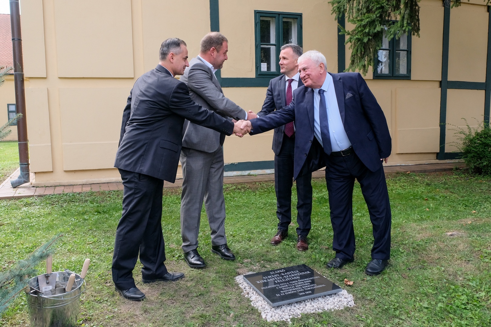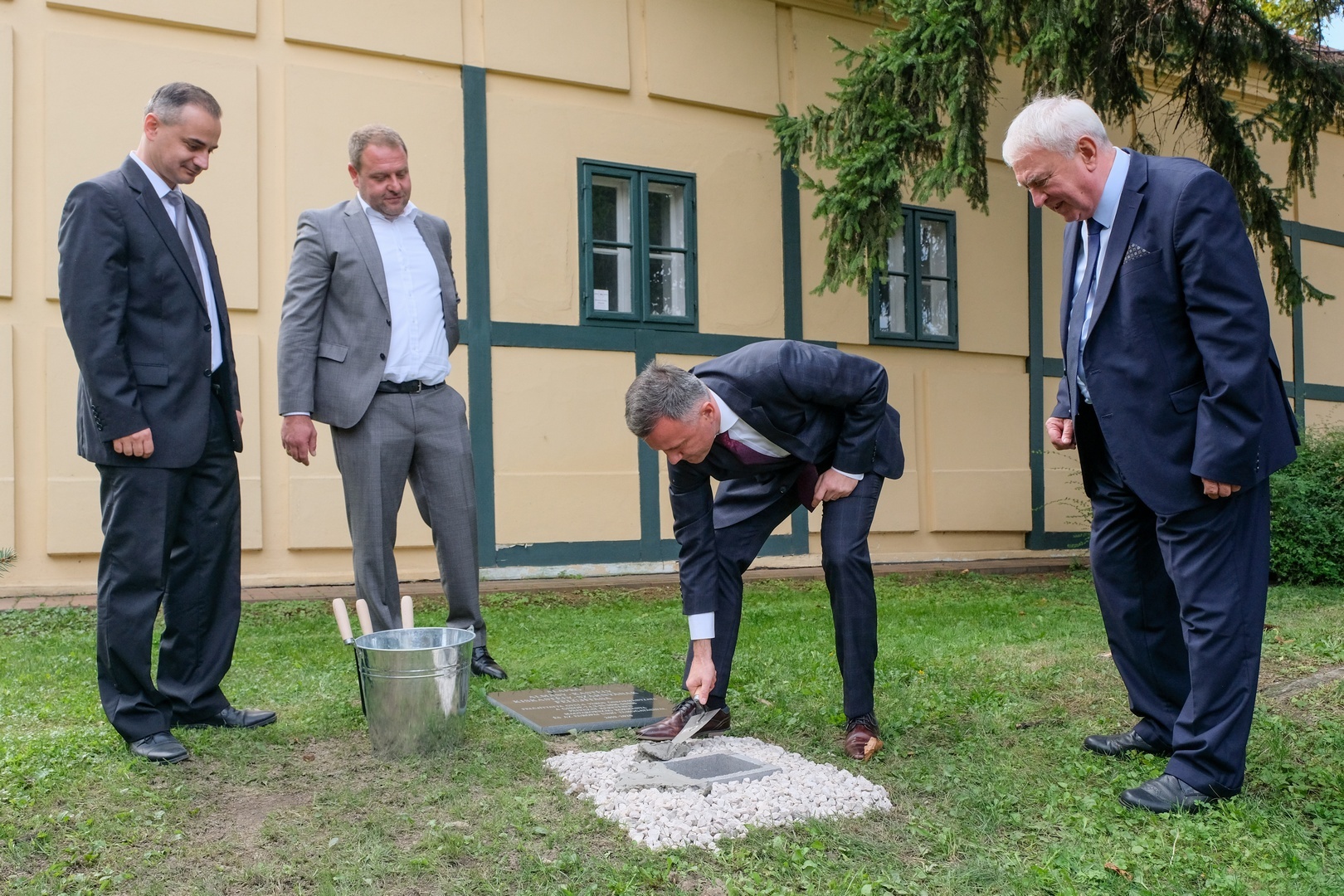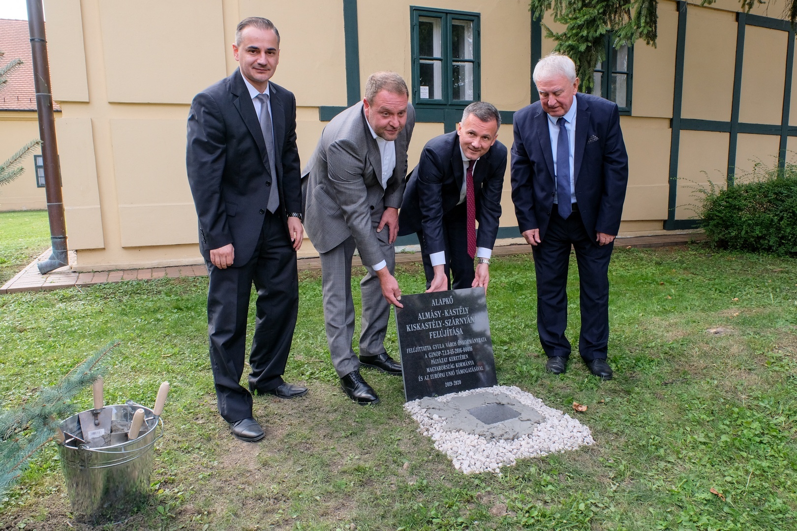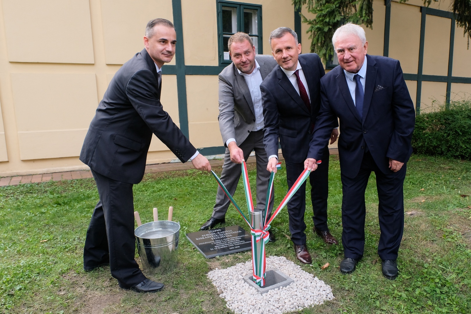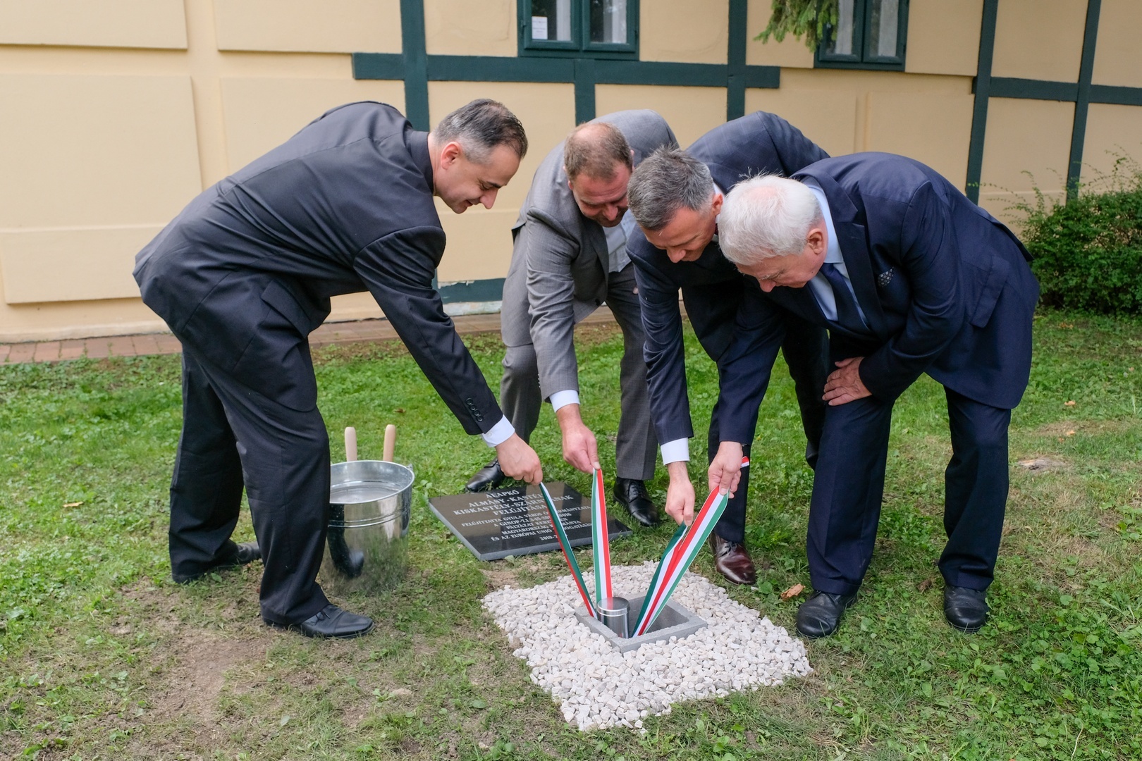 A köszöntők után Piskolty Tibor, a Futizo Kft. ügyvezetője és Görgényi Ernő írták alá a kivitelezői szerződést, majd a polgármester, Kovács József, Virág Zsolt és Guller Zoltán helyezték el az alapkövet.