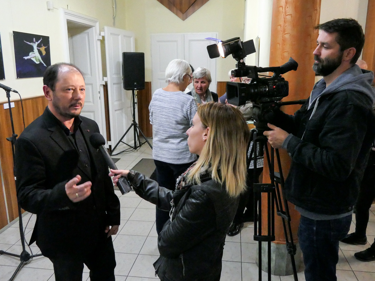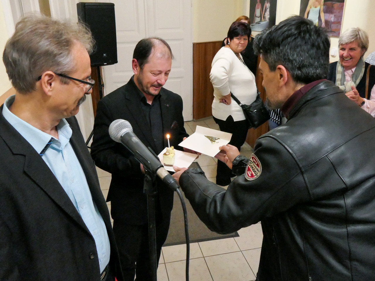 Rusznyák Csaba „Csuszi” megköszönte a várszínház csapatának a lehetőséget, majd fogadta a gratulációkat, amelyek a nagyérdemű részéről érkeztek felé. A Gyulai Hírlap egy díjnyertes tortával köszöntötte fel a kiállítót, aki pont a megnyitó napján ünnepelte a születésnapját. Isten éltessen, Csuszi!