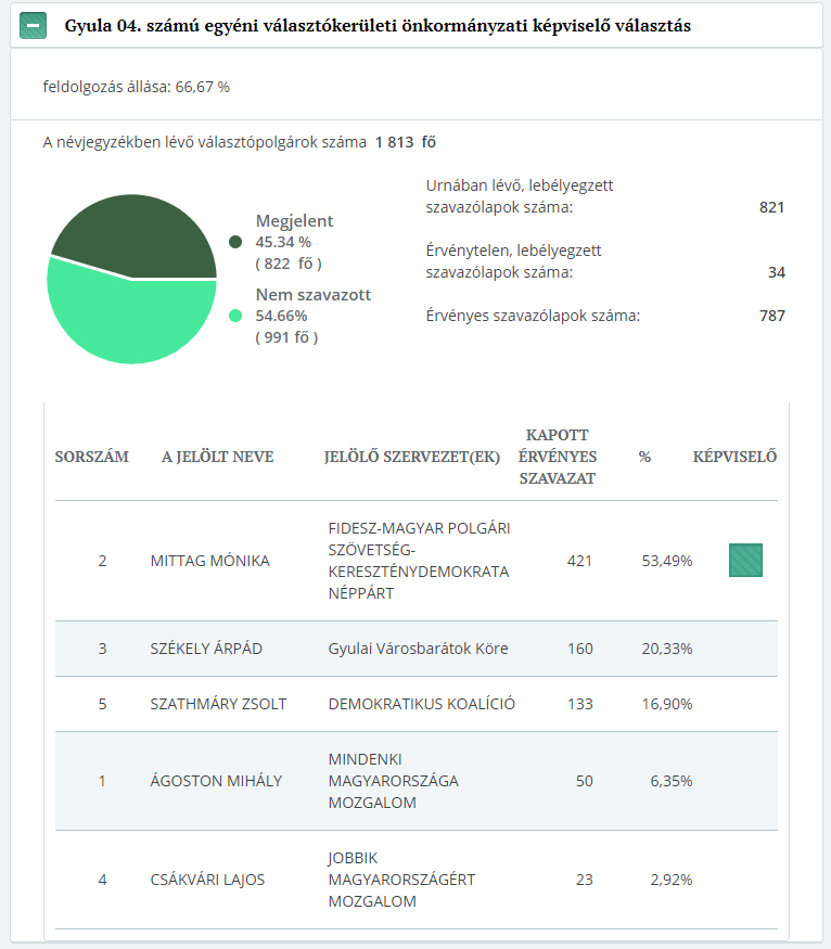 A Fidesz-KDNP képviselőjelöltje magabiztosan vezet 66,67%-os feldolgozottságnál