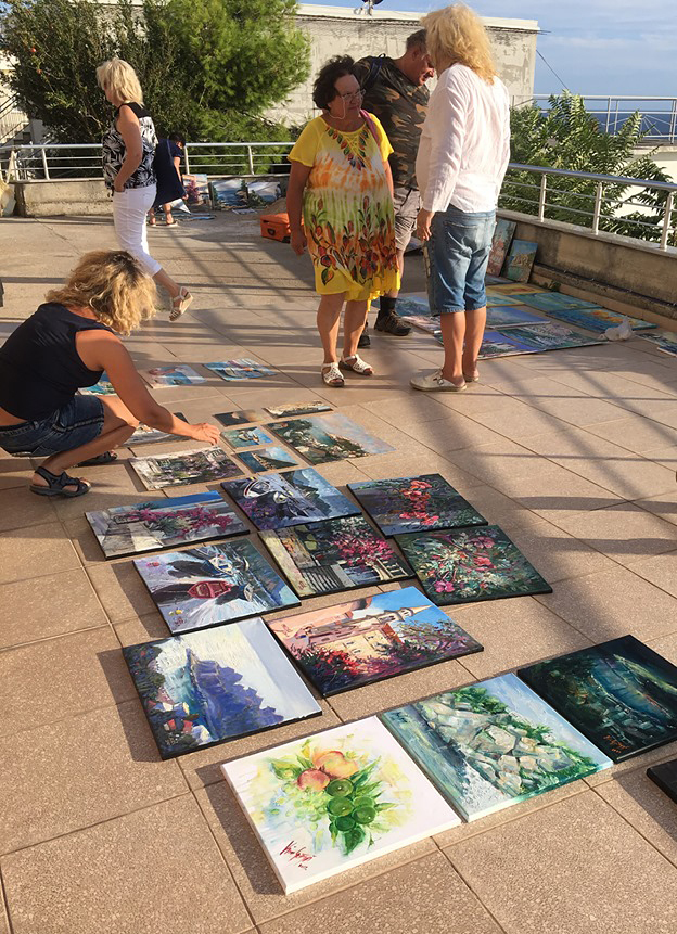 A jóleső lazítások és a kellemes séták mellett a festésre is szakítottak időt, hisz az azúrkék tenger, a napsütötte kikötők, a fehér hajók és a színes kis csónakok, az ámulatba ejtő szigetek és a sziklahegységek koronázta táj, az óvárosok zegzugos utcái, templomai, épületei, no meg a csodálatos naplementék mind-mind festővászonra kívánkoztak.