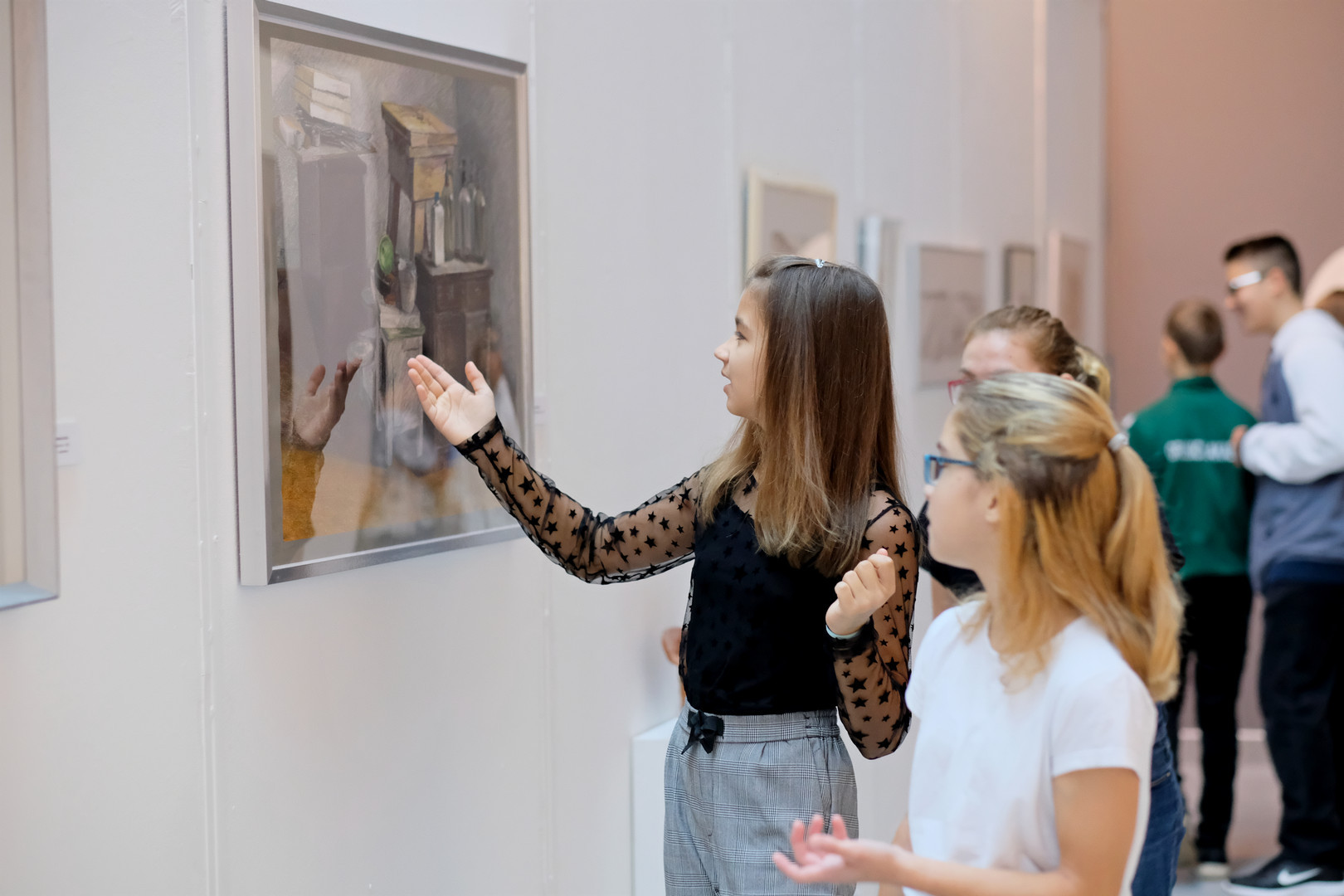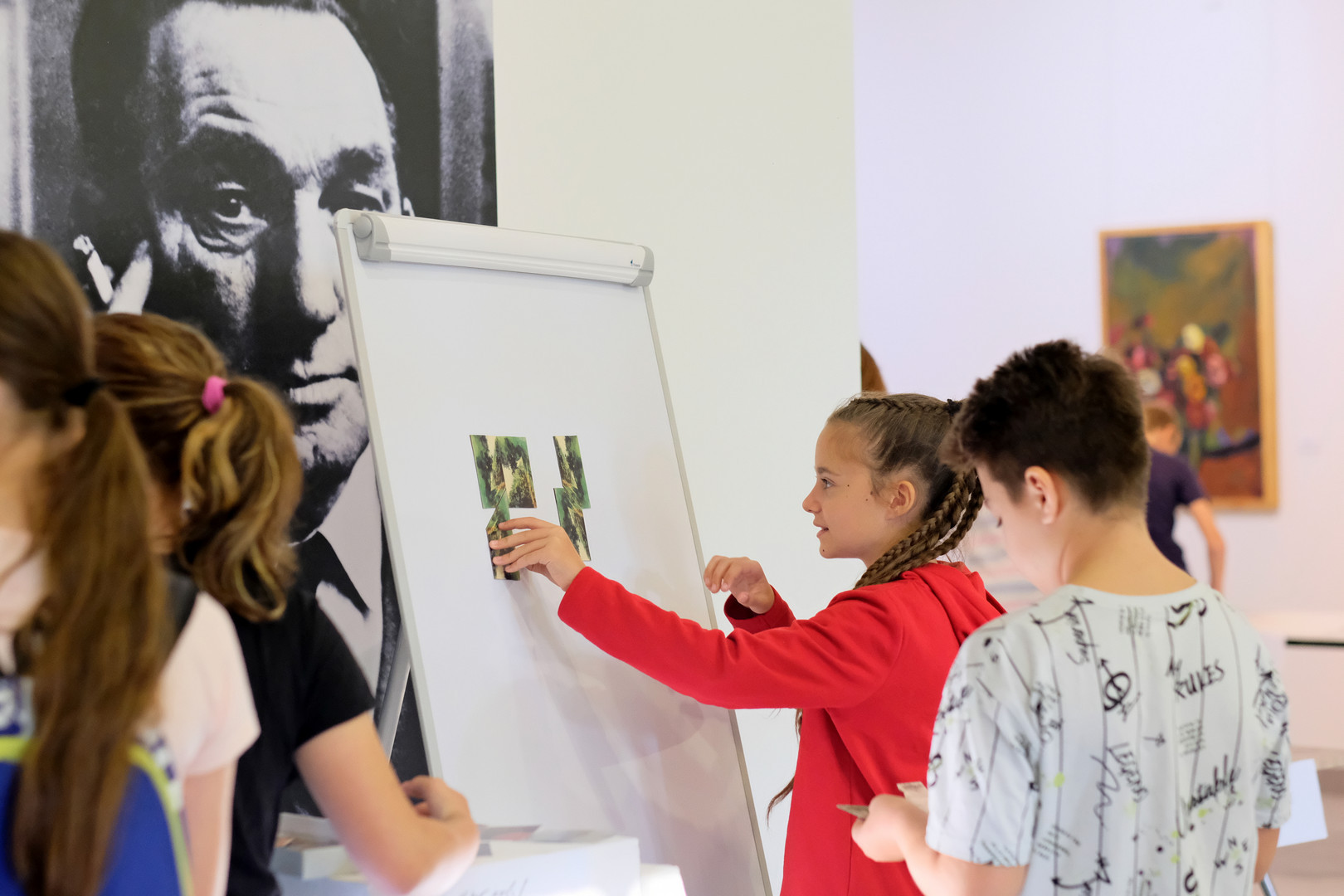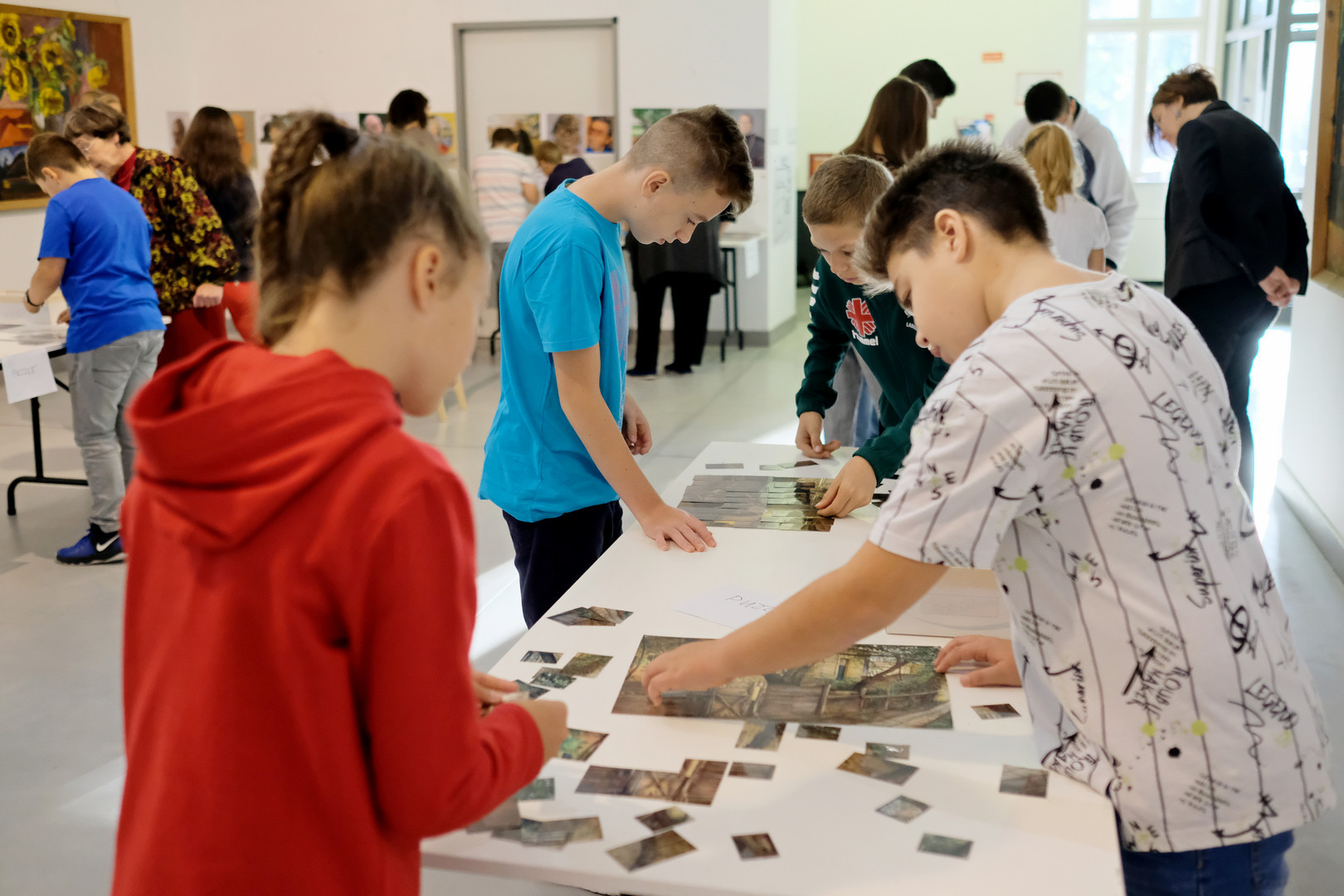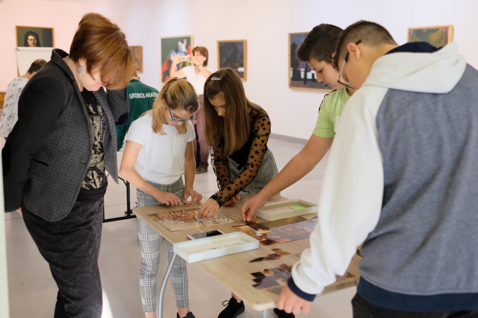 Elmondta: délelőtt mintegy száznegyven iskolás látogatott el a képtárba, a diákokat többek között kreatív kirakós játékkal és kvízzel várták. A felnőttek rendhagyó tárlatvezetésen vehettek részt, és a művészek vetítéssel egybekötött előadásán betekinthettek az alkotási folyamatba.