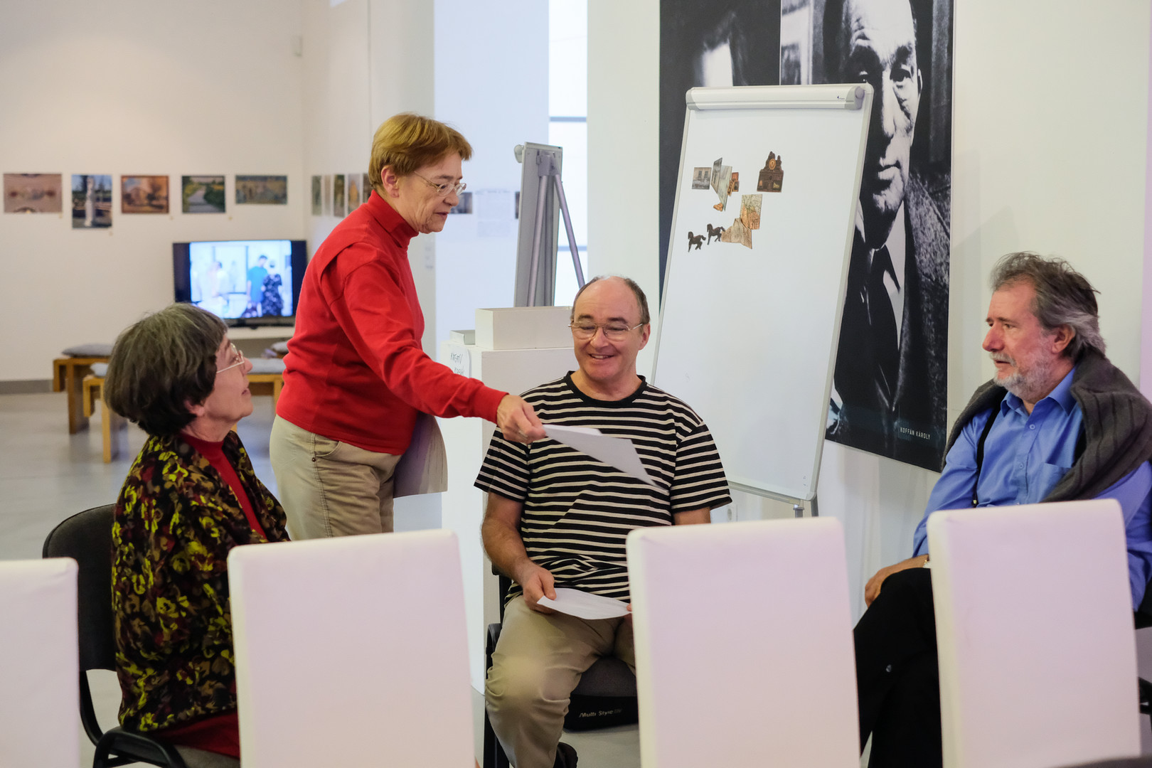 A gyerekeknek kreatív foglalkozásokat, a felnőtteknek interaktív előadásokat tartottak az idén ötvenéves Gyulai Nyári Művésztelep alkotói október 17-én a Kohán Képtárban.