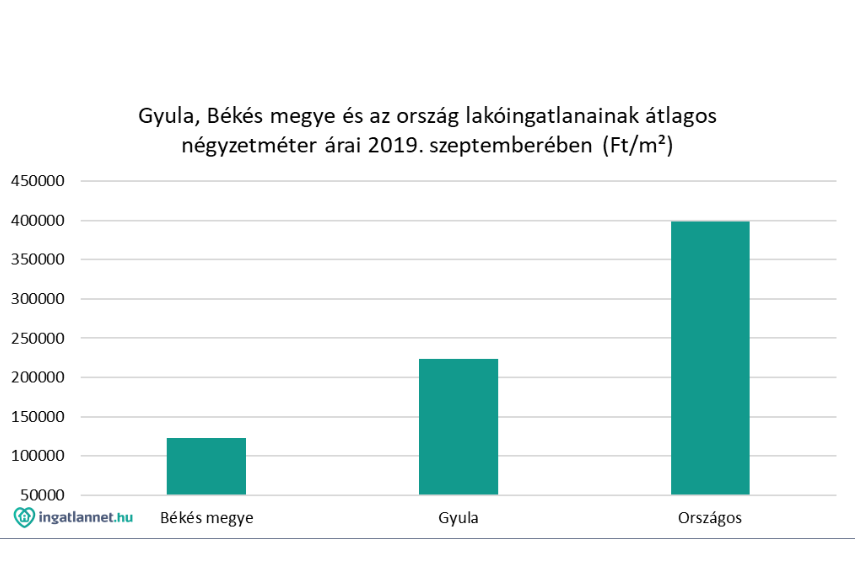 A szeptemberi országos ingatlanpiaci árakhoz képest viszont alacsonyak a gyulai átlagárak. Országos szinten a lakóingatlanok átlagos négyzetméter árai majdnem elérték a 400 ezer forintot, ehhez viszonyítva a gyulai lakóingatlanok átlagára 180 ezer forinttal volt alacsonyabb négyzetméterenként a szeptemberi hónapban.