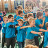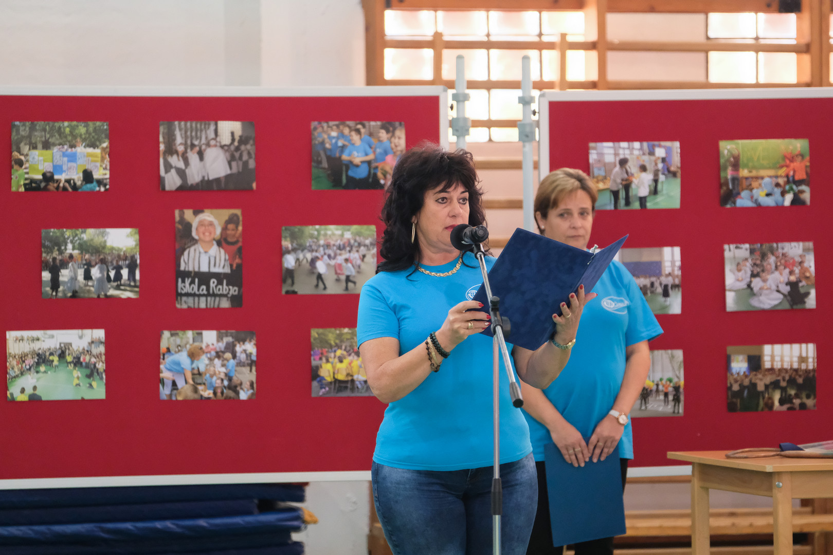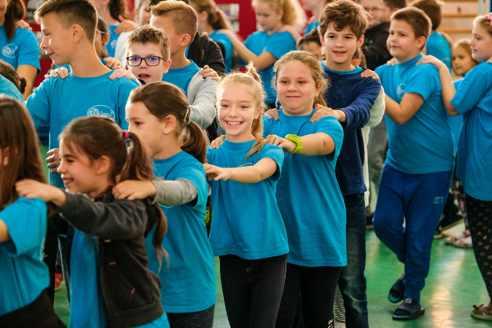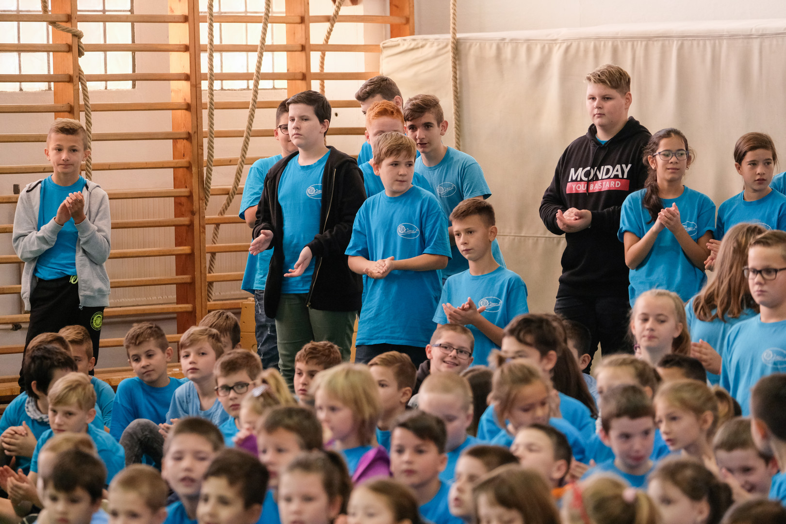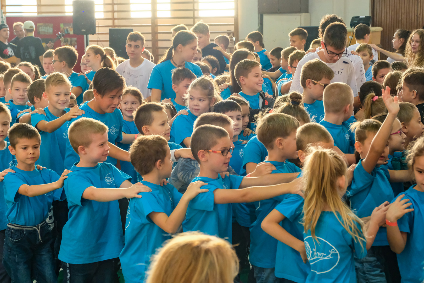 – Azt ünnepeljük ma, hogy düreresek vagyunk. Az összetartozás jelképe az a kék póló, amelyet mindnyájan viselünk. Ez a nap nem a tanulásról szól, ma a mókáé és a kacagásé a főszerep – mondta a gyerekeknek.
