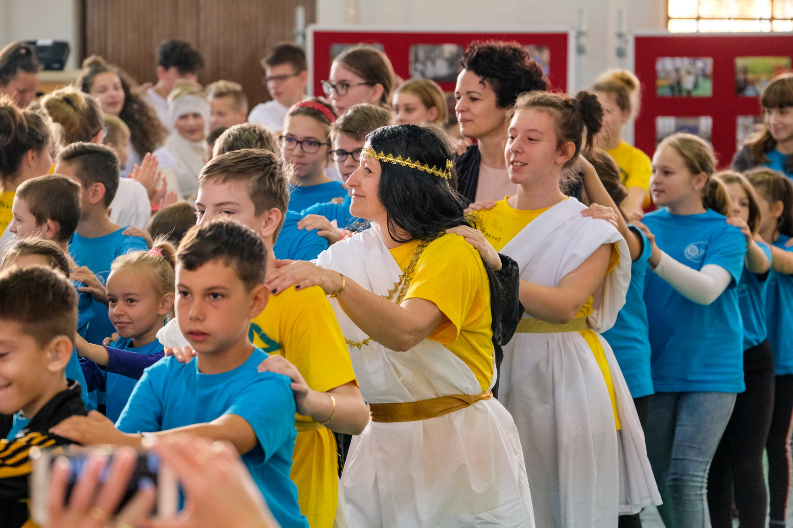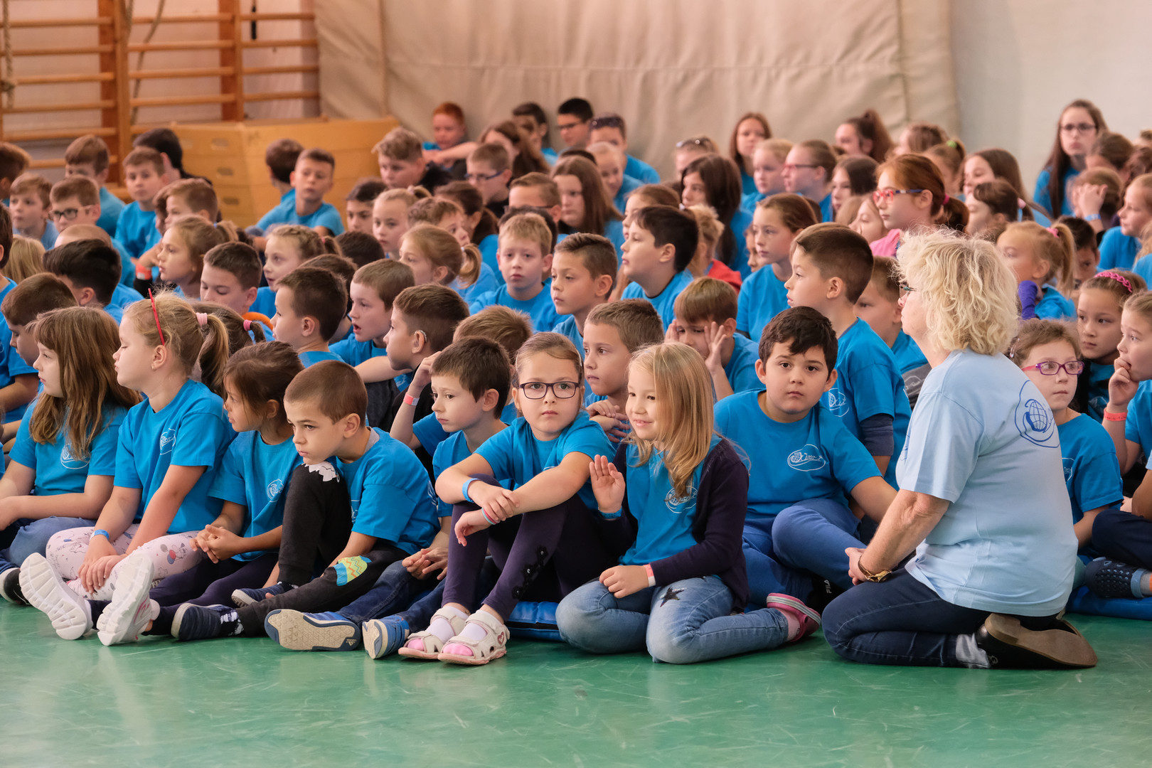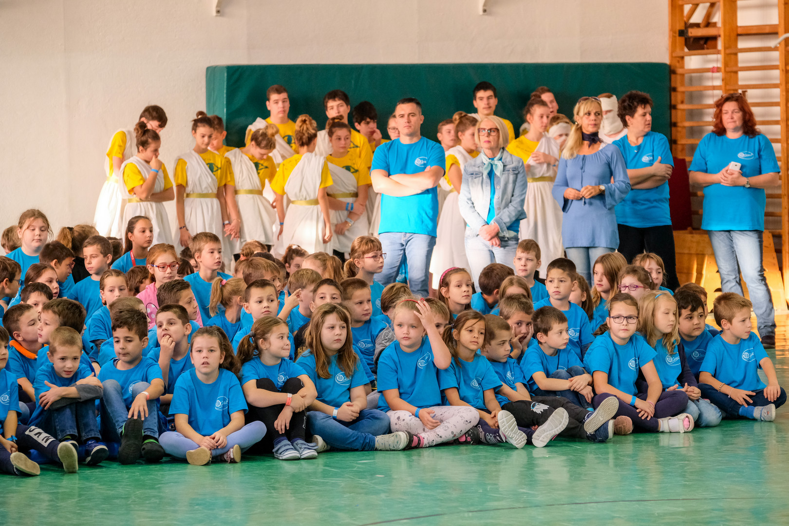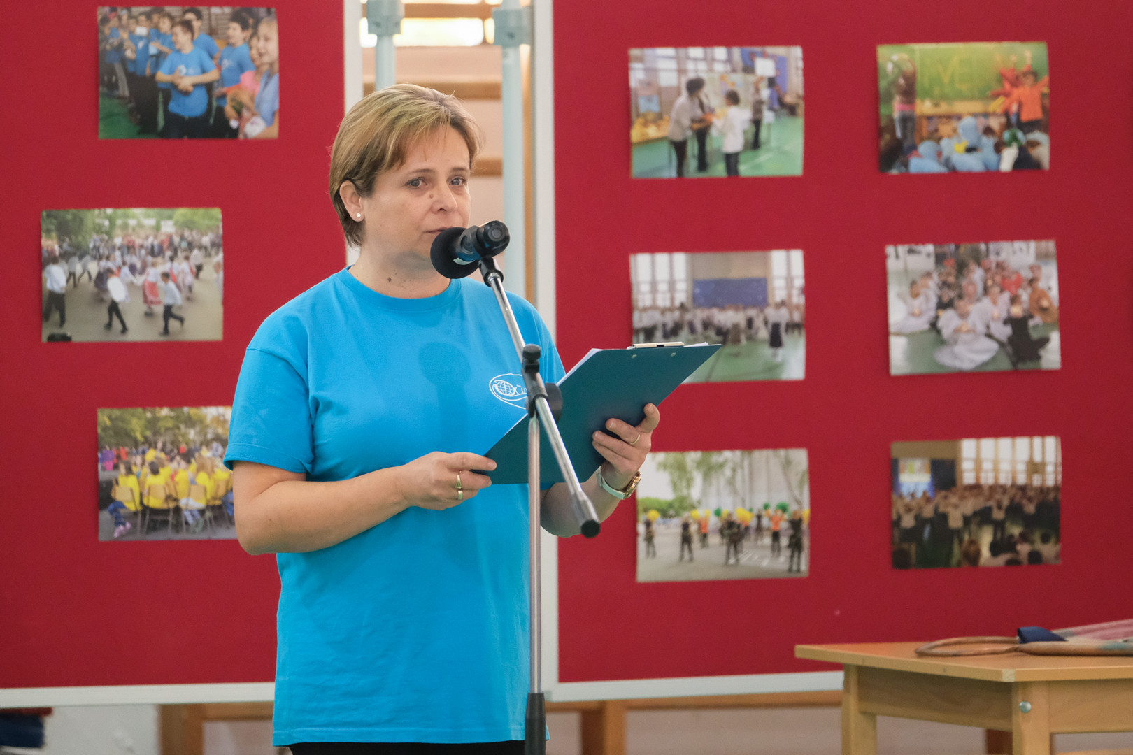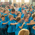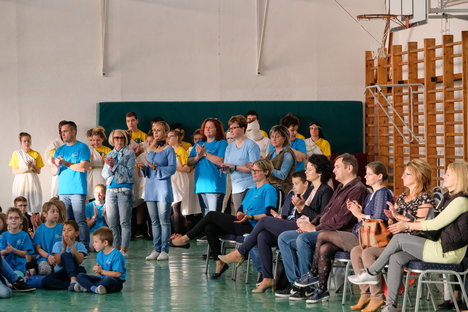 – Azt ünnepeljük ma, hogy düreresek vagyunk. Az összetartozás jelképe az a kék póló, amelyet mindnyájan viselünk. Ez a nap nem a tanulásról szól, ma a mókáé és a kacagásé a főszerep – mondta a gyerekeknek.