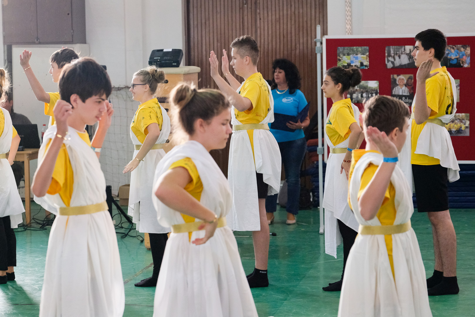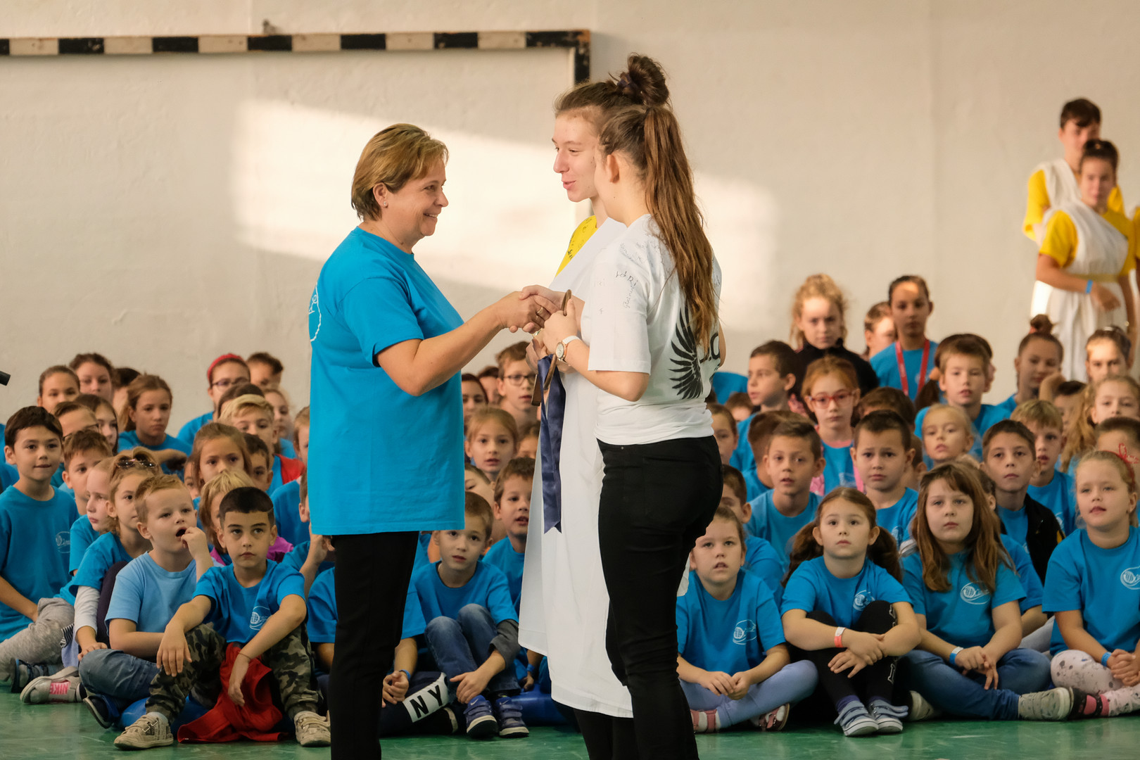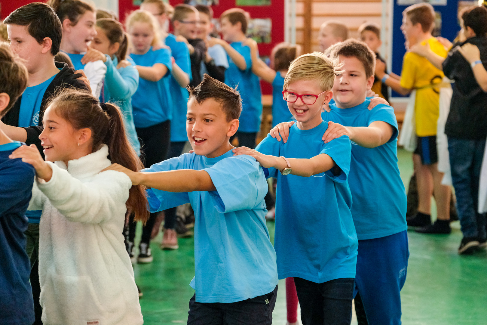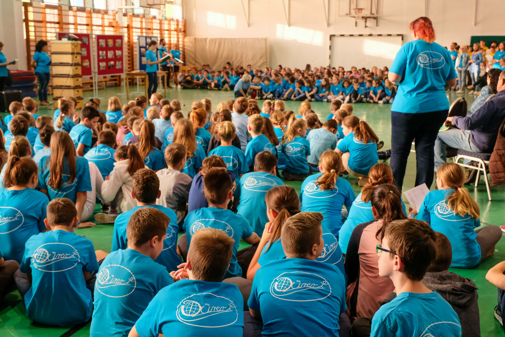 – Azt ünnepeljük ma, hogy düreresek vagyunk. Az összetartozás jelképe az a kék póló, amelyet mindnyájan viselünk. Ez a nap nem a tanulásról szól, ma a mókáé és a kacagásé a főszerep – mondta a gyerekeknek.