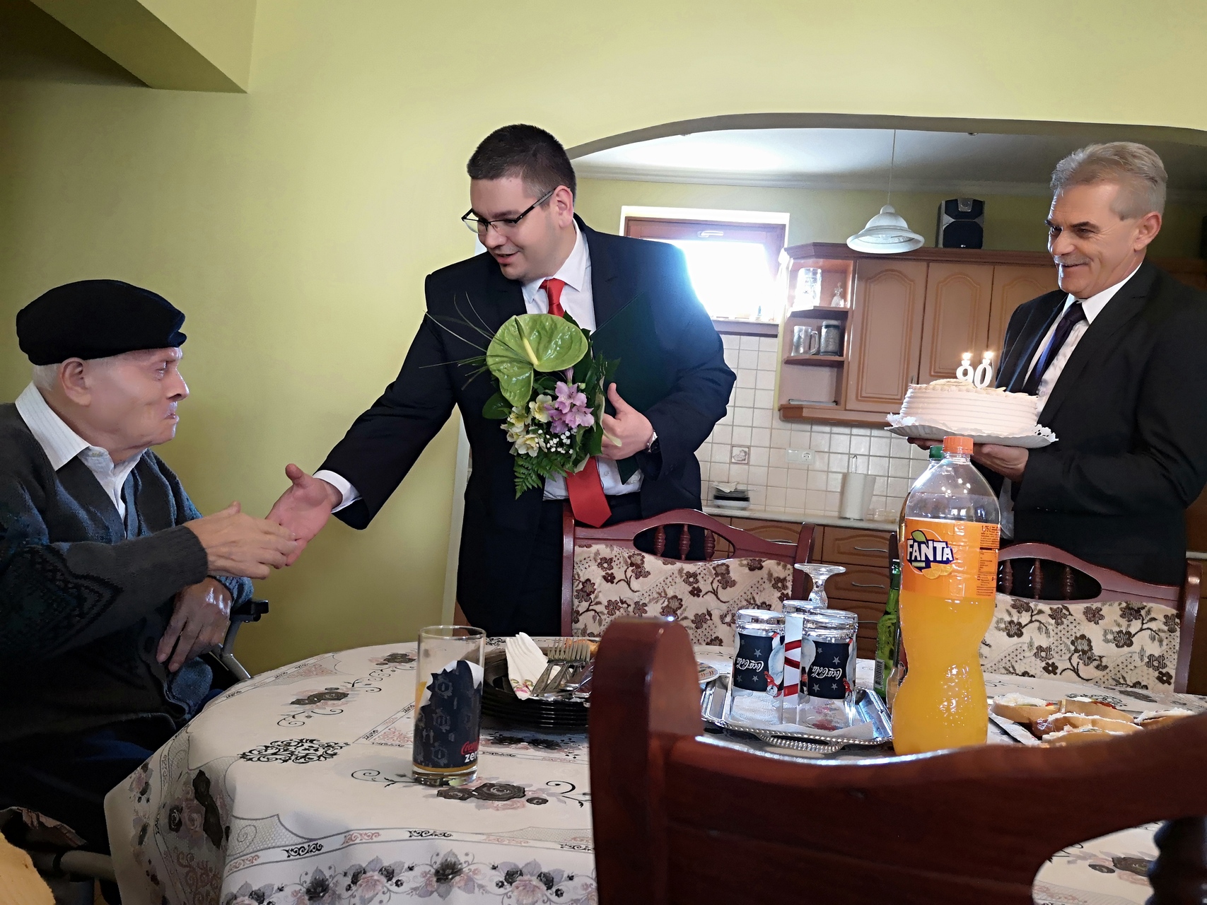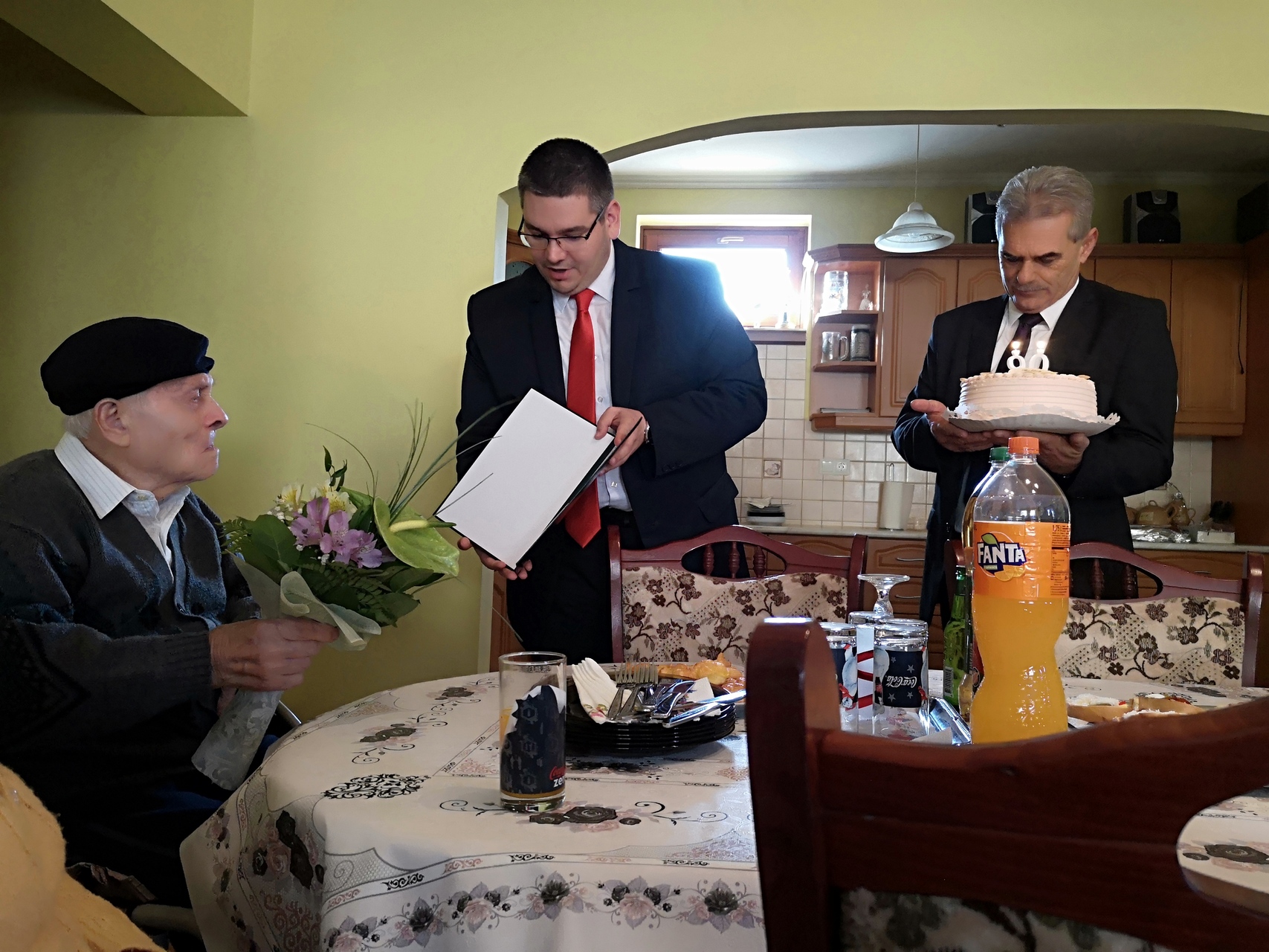 Makra Imrét köszöntötte október 31-én 90. születésnapja alkalmából Csige Gábor főjegyző és Szabó Károly önkormányzati képviselő. A vendégek tortát, virágot és emléklapot vittek az ünnepeltnek.