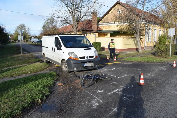 Orosházán, a Bajcsy-Zsilinszky utca és a Kerek utca kereszteződésében reggel negyed nyolc körül egy kisteherautó nem adott elsőbbséget egy kerékpárosnak, akinek nekiütközött. A férfi elesett, és könnyebben megsérült.