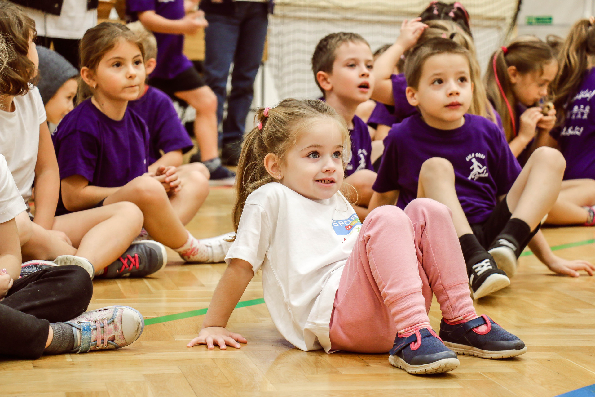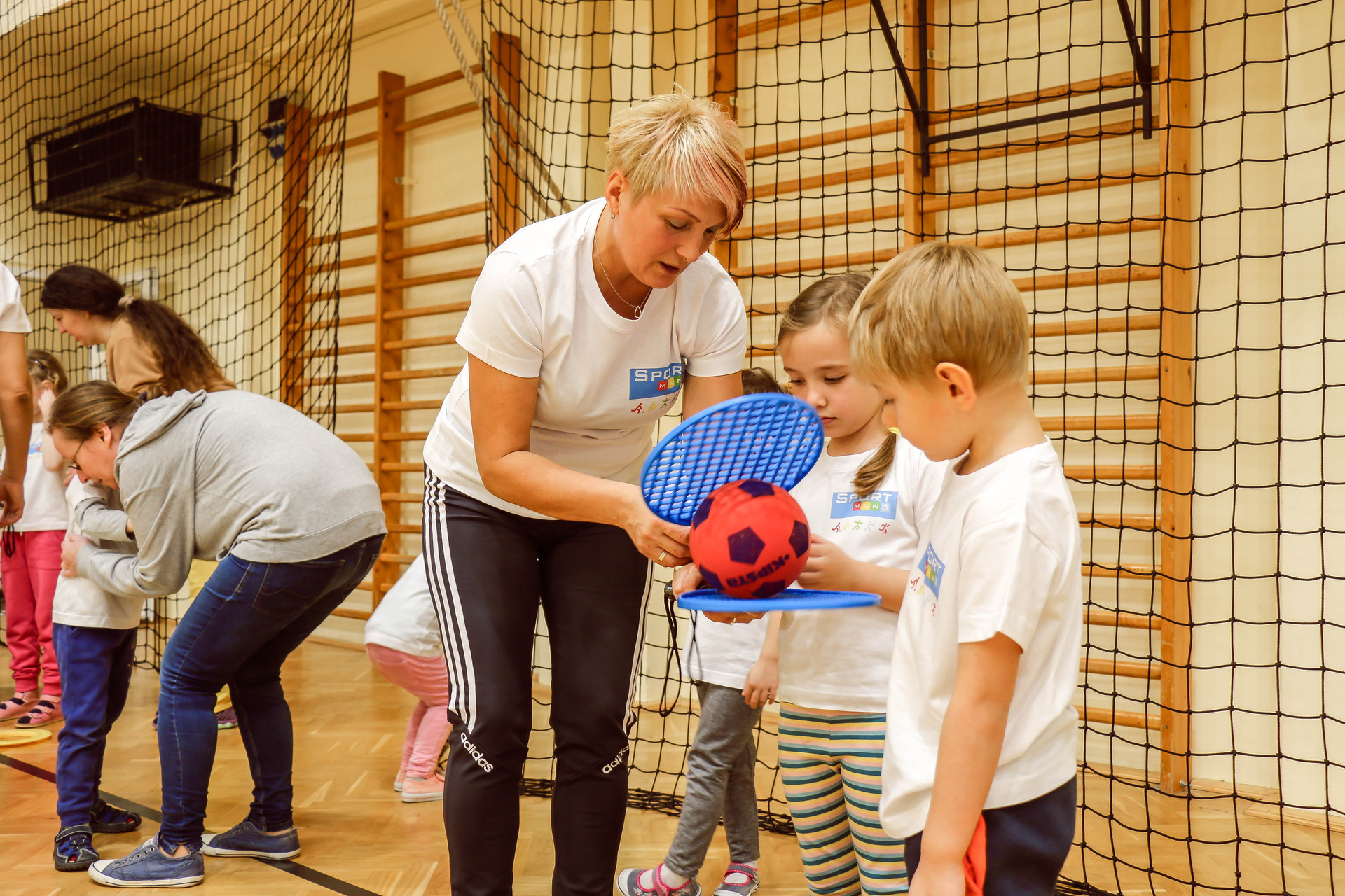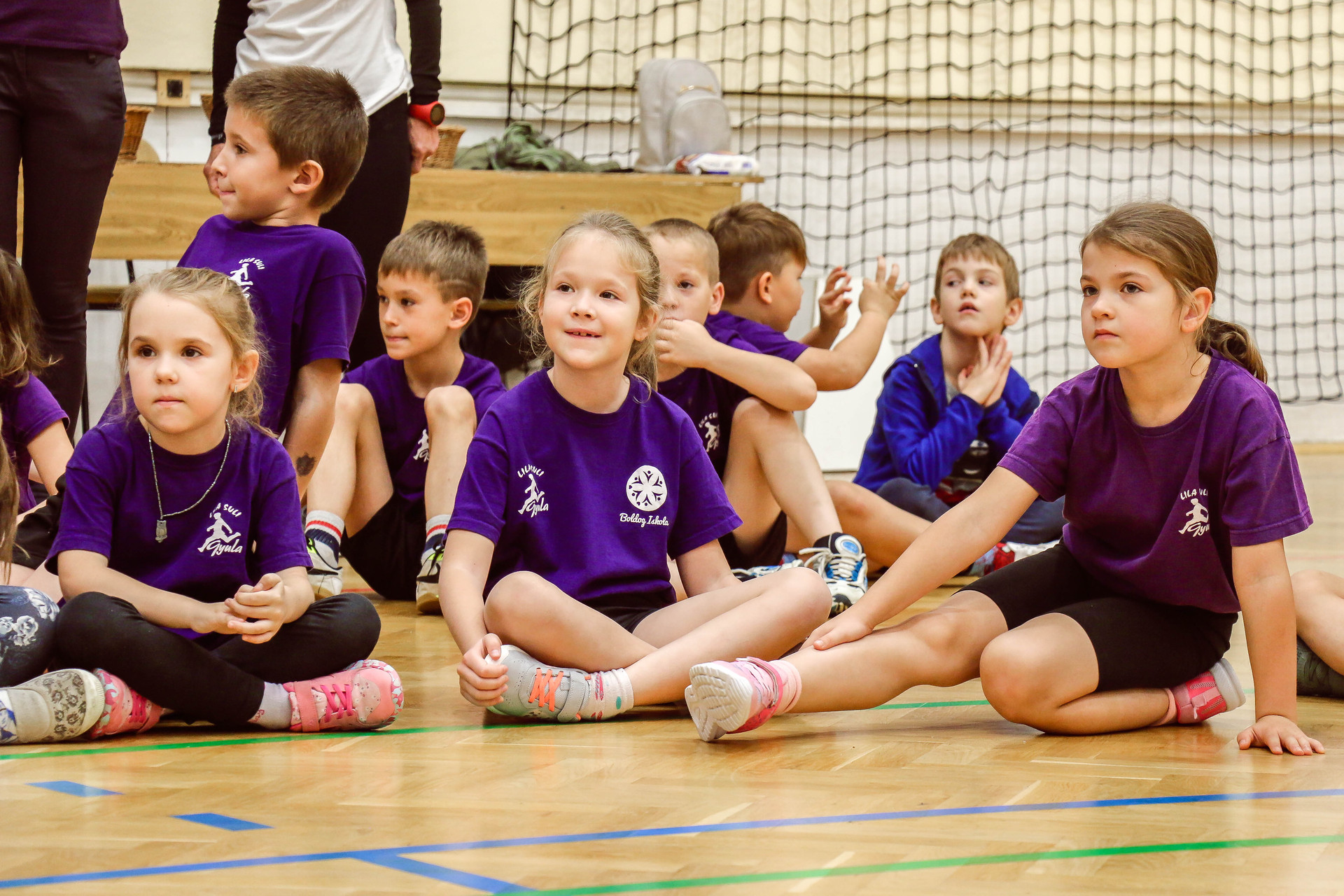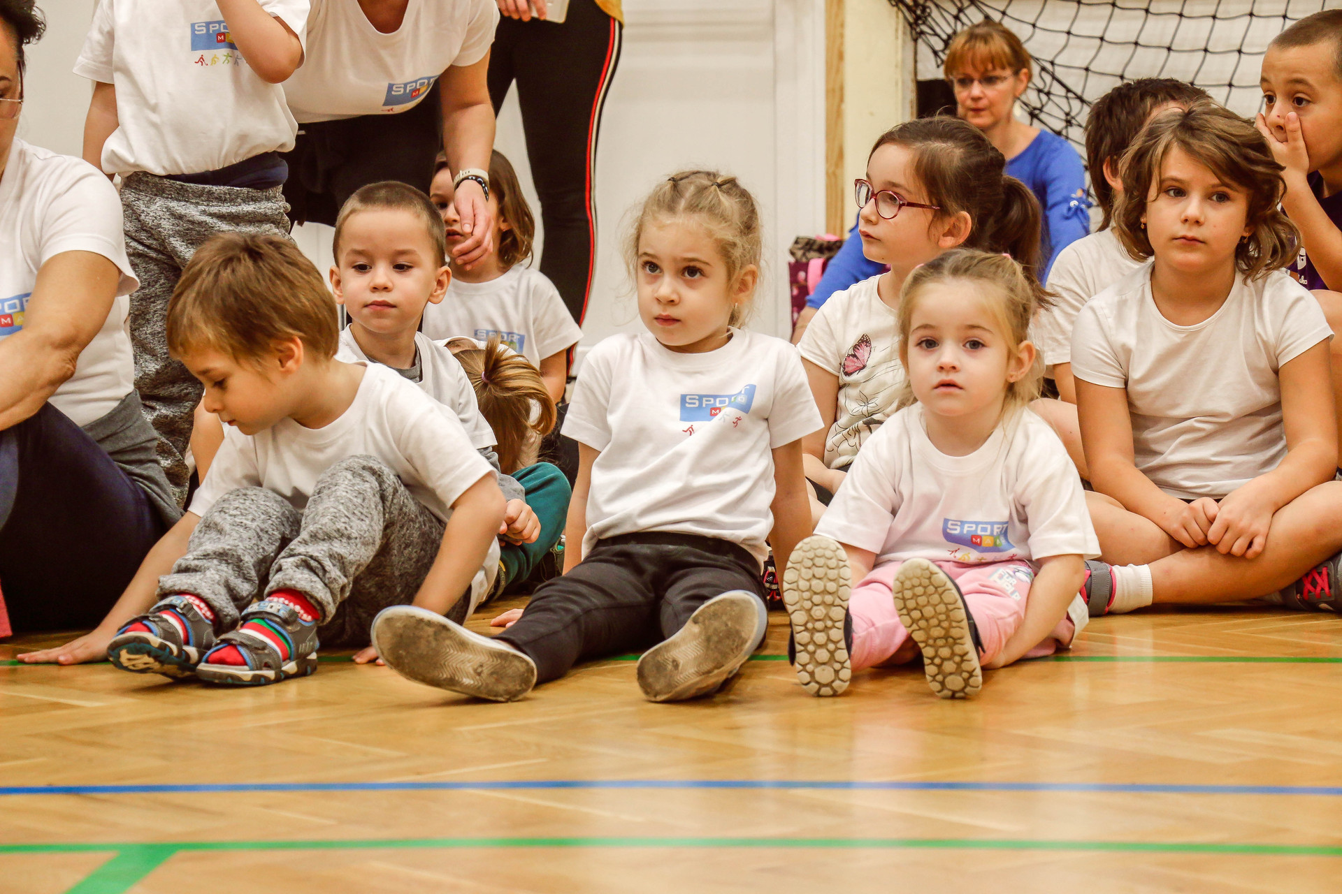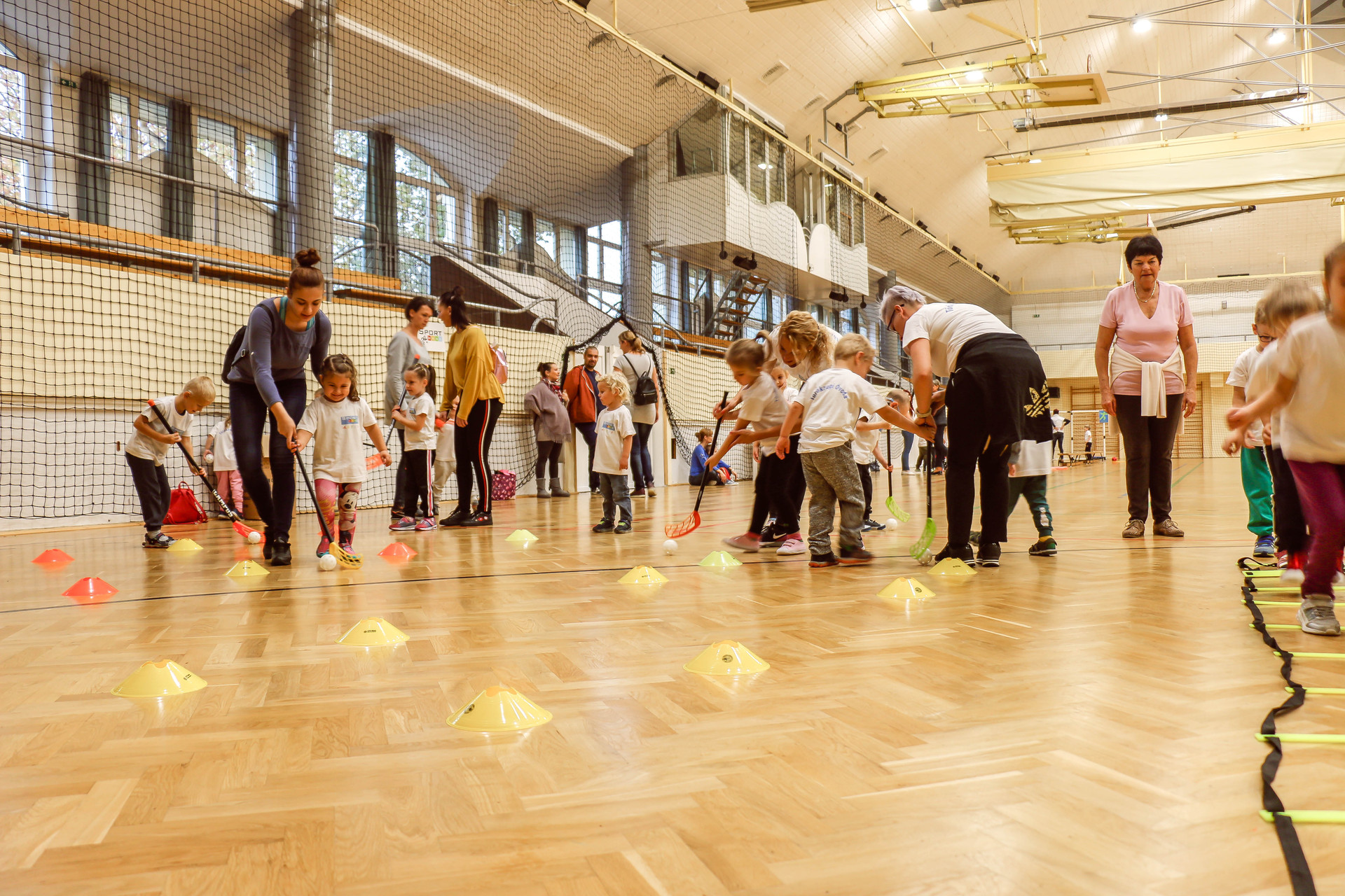 A legkisebbeket érkezés után az óvoda vezetője köszöntötte, majd egy rövid bemelegítés következett és minden apróság kipróbálhatott egy-egy labdajátékot, így lehetőségük volt kosarazni, kézilabdázni és focizni is.