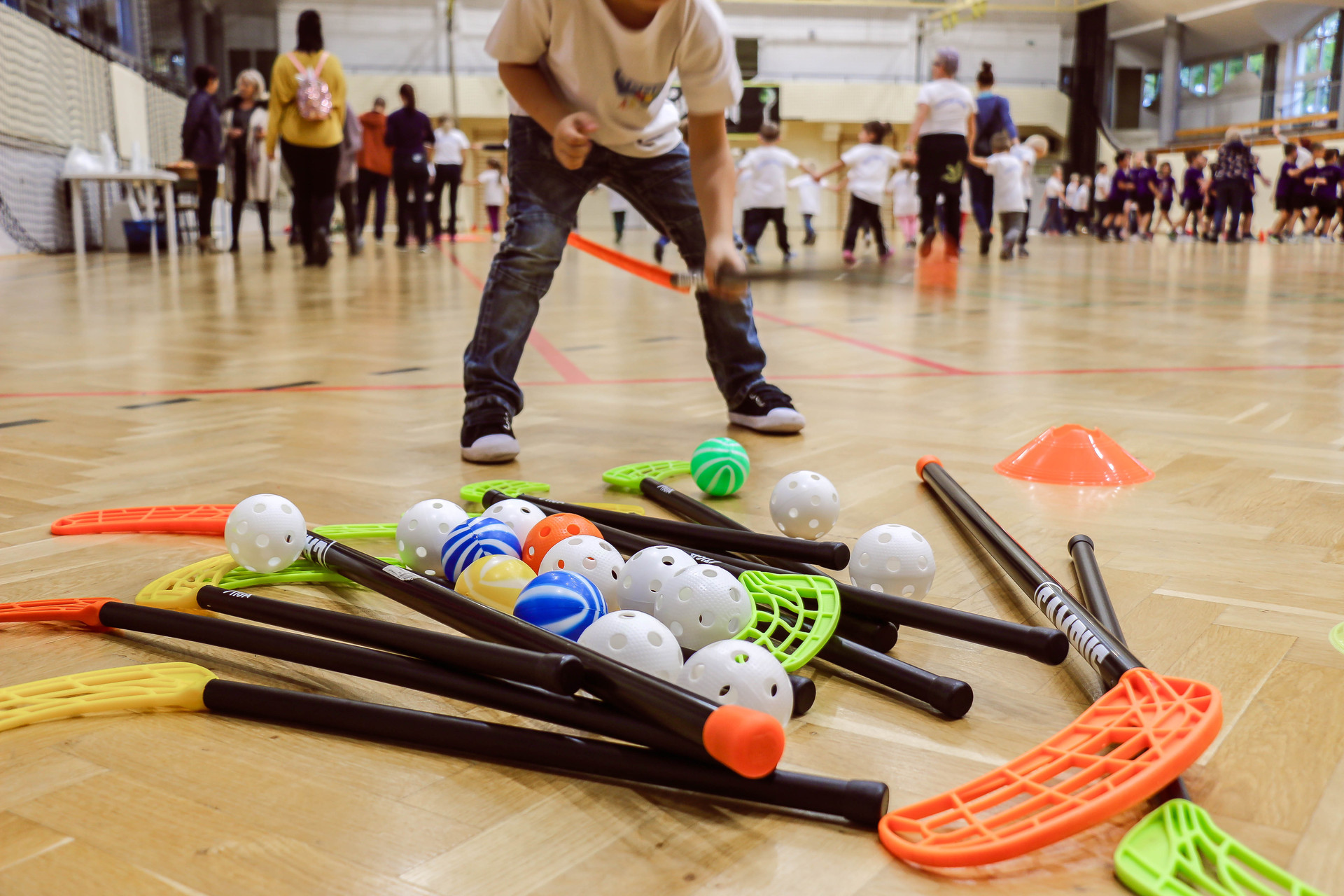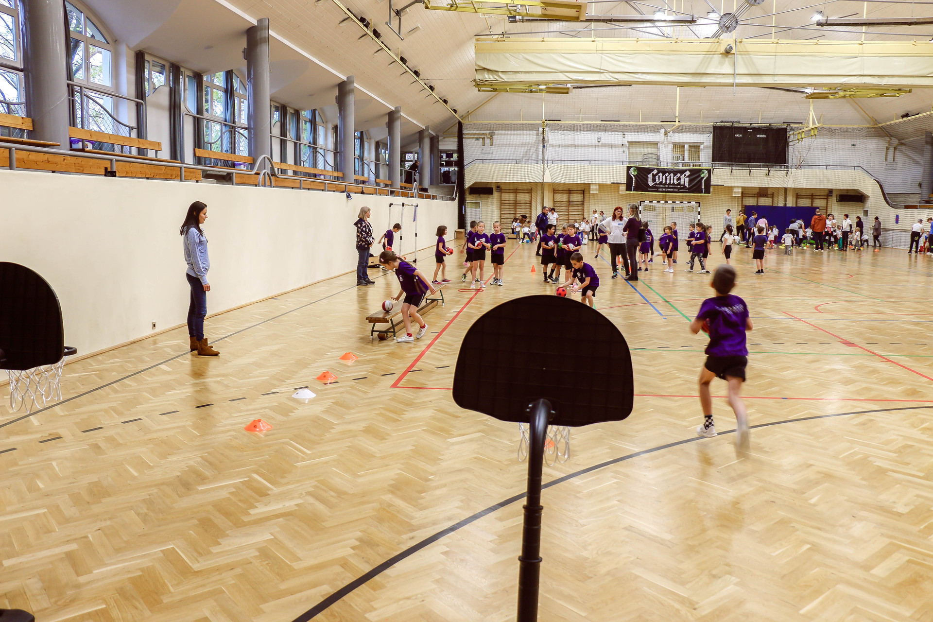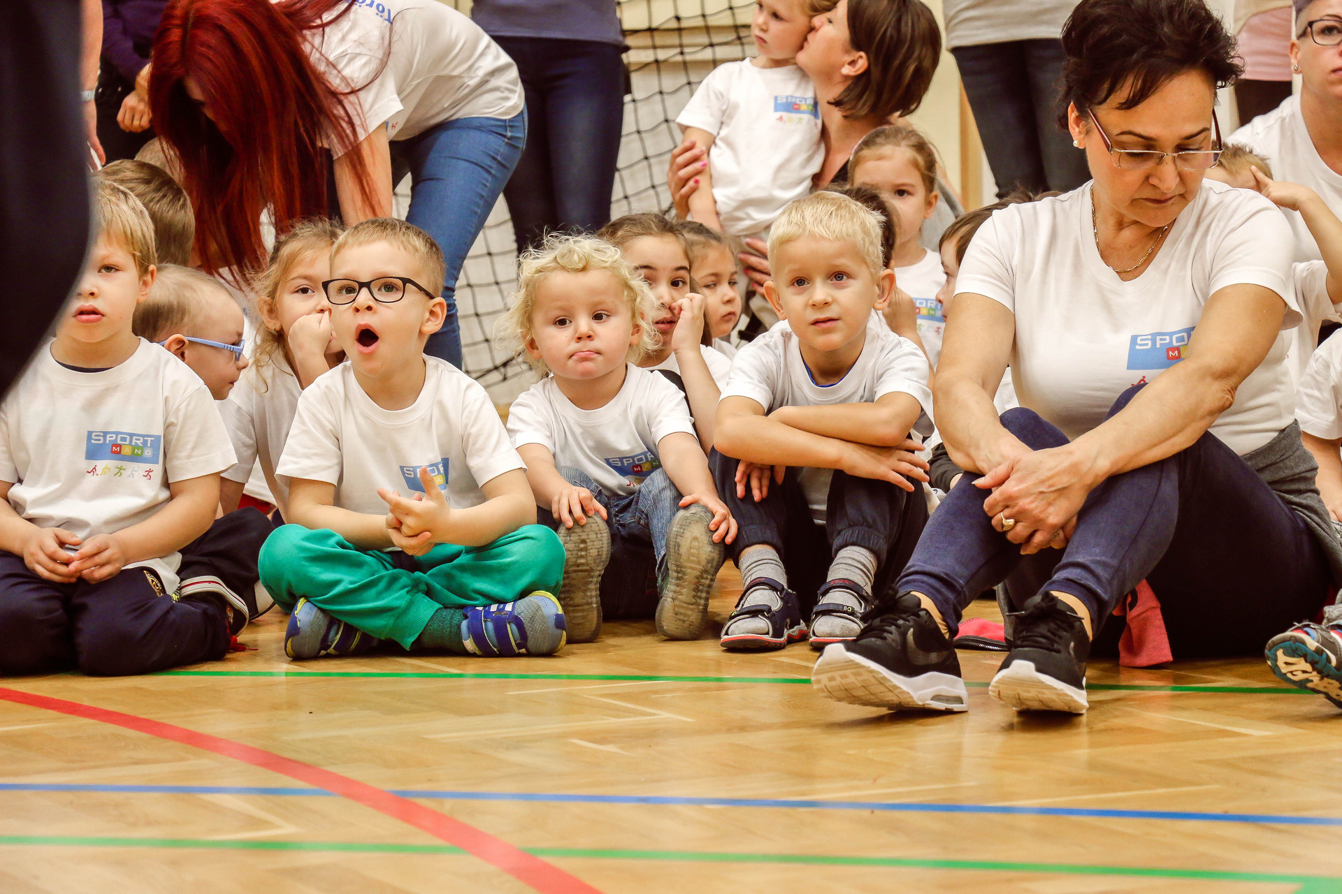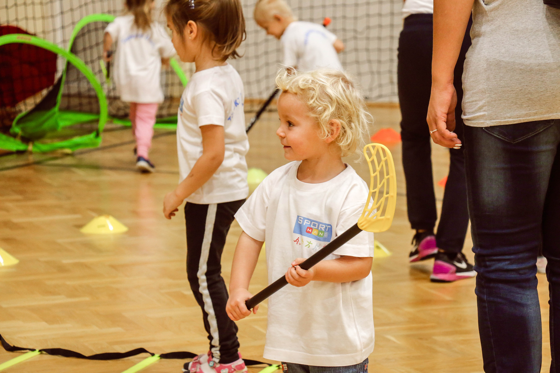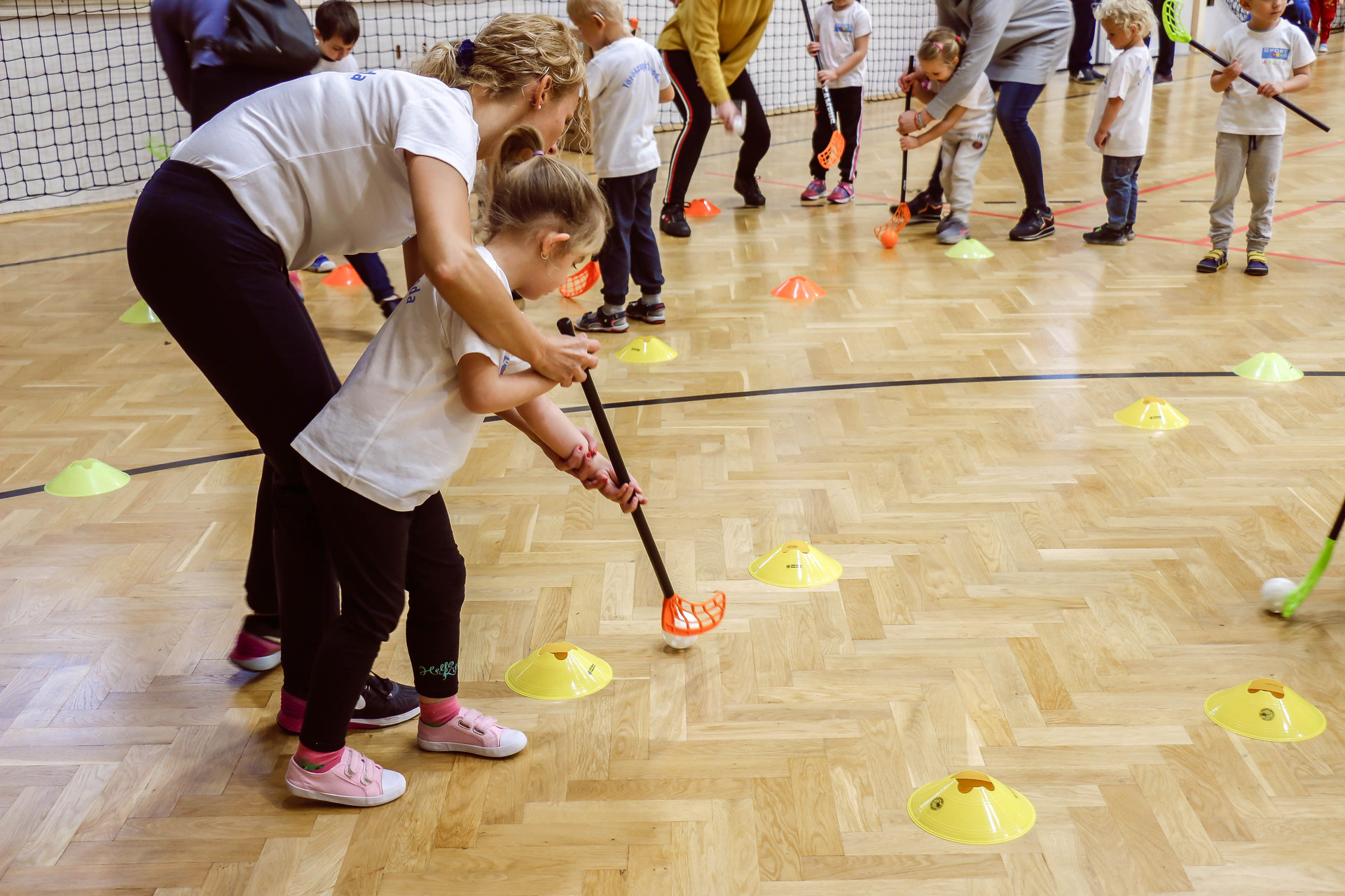 A legkisebbeket érkezés után az óvoda vezetője köszöntötte, majd egy rövid bemelegítés következett és minden apróság kipróbálhatott egy-egy labdajátékot, így lehetőségük volt kosarazni, kézilabdázni és focizni is.