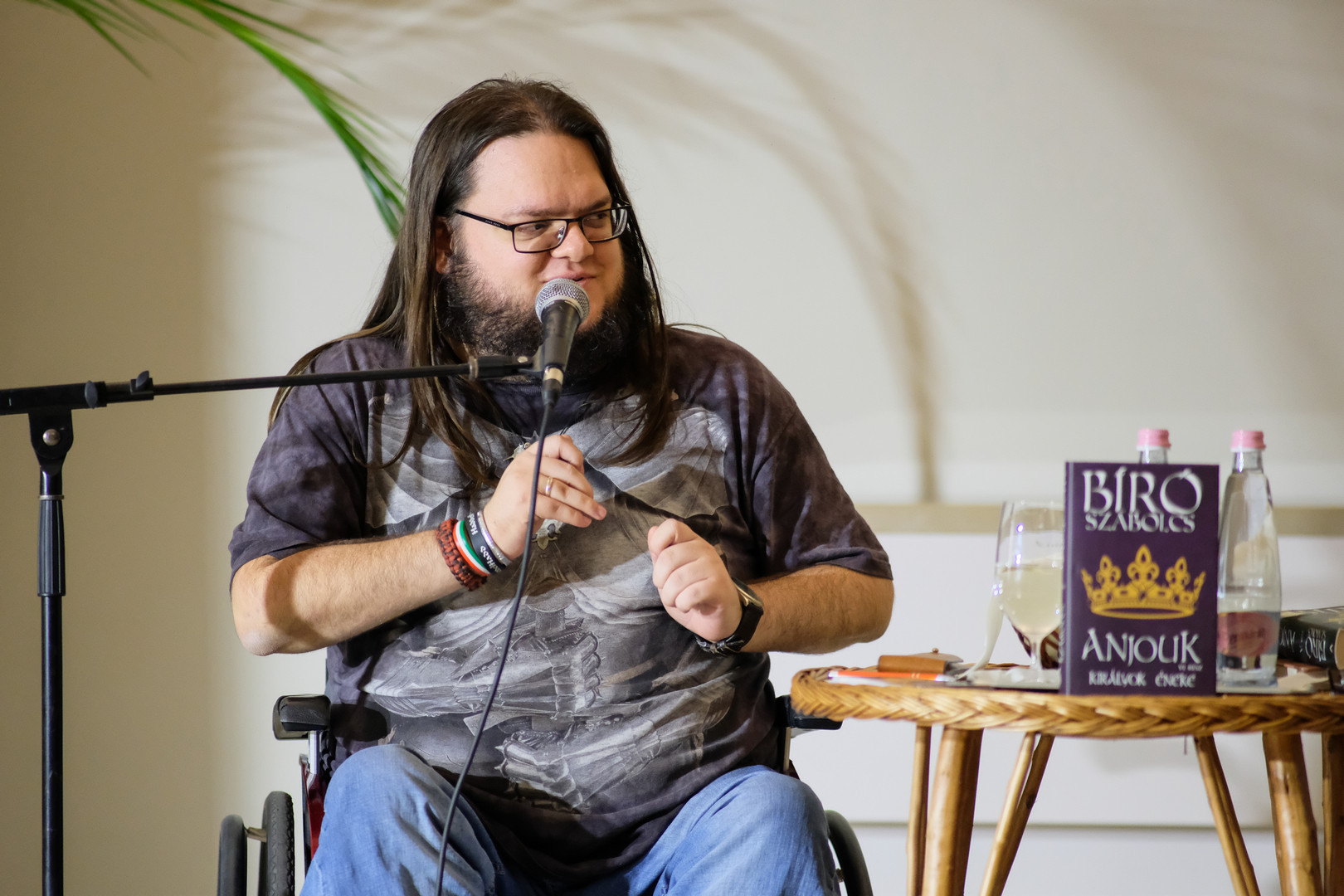 A megjelenteket Dézsi János, a városi bibliotéka igazgatója köszöntötte, majd kezdődött a beszélgetés, rögtön egy nem várt fordulattal, ugyanis a történelmi regények és az írás helyett, elsőként Bíró Szabolcs énekesi pályafutásába nyerhettünk betekintést.