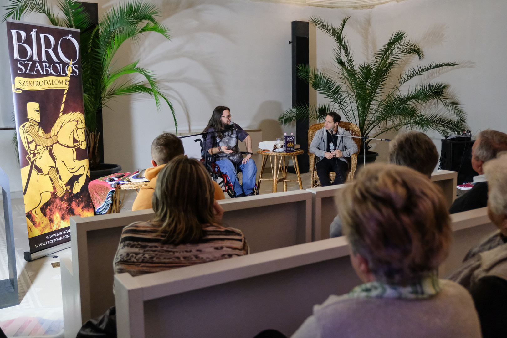 A beszélgetés végén Kiss László felolvasott egy részletet az egyik kötetből, a jelenlévők megismerkedhettek egy középkori várjobbágy ruházatával és felszerelésével, majd Bíró Szabolcs dedikálta köteteit is a rajongóknak, valamint új olvasóknak.