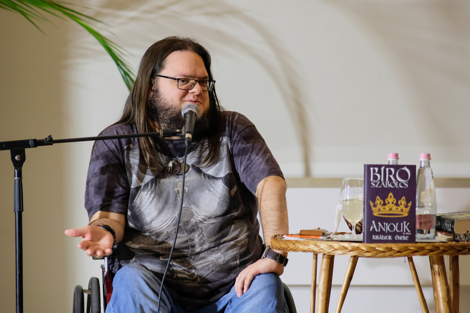 – Bármit, amit írsz, azt ismerned kell – fogalmazott, utalva arra, hogy az írás rendkívüli háttérmunkát és forráskutatást igényel, ez pedig hatványozottan igaz a történelmi regényekre. Mint mondta, az Anjouk történetének hossza és összefüggősége miatt vázlatfüzeteket vezet, amelyeket régebben még kategóriákra is bontott, hogy észben tudja tartani a történethez létfontosságú karaktereket vagy éppen a kor jellemzőit.