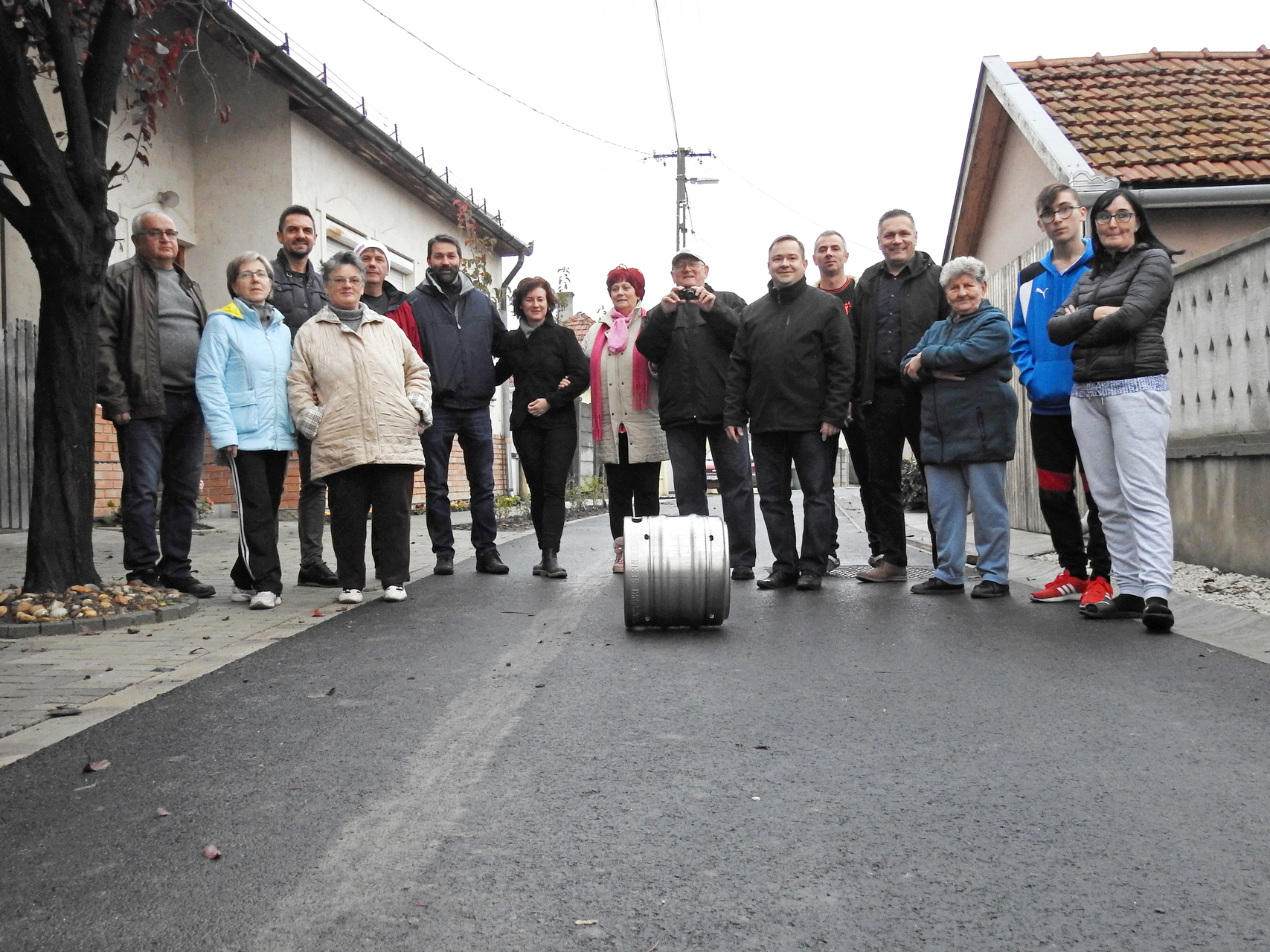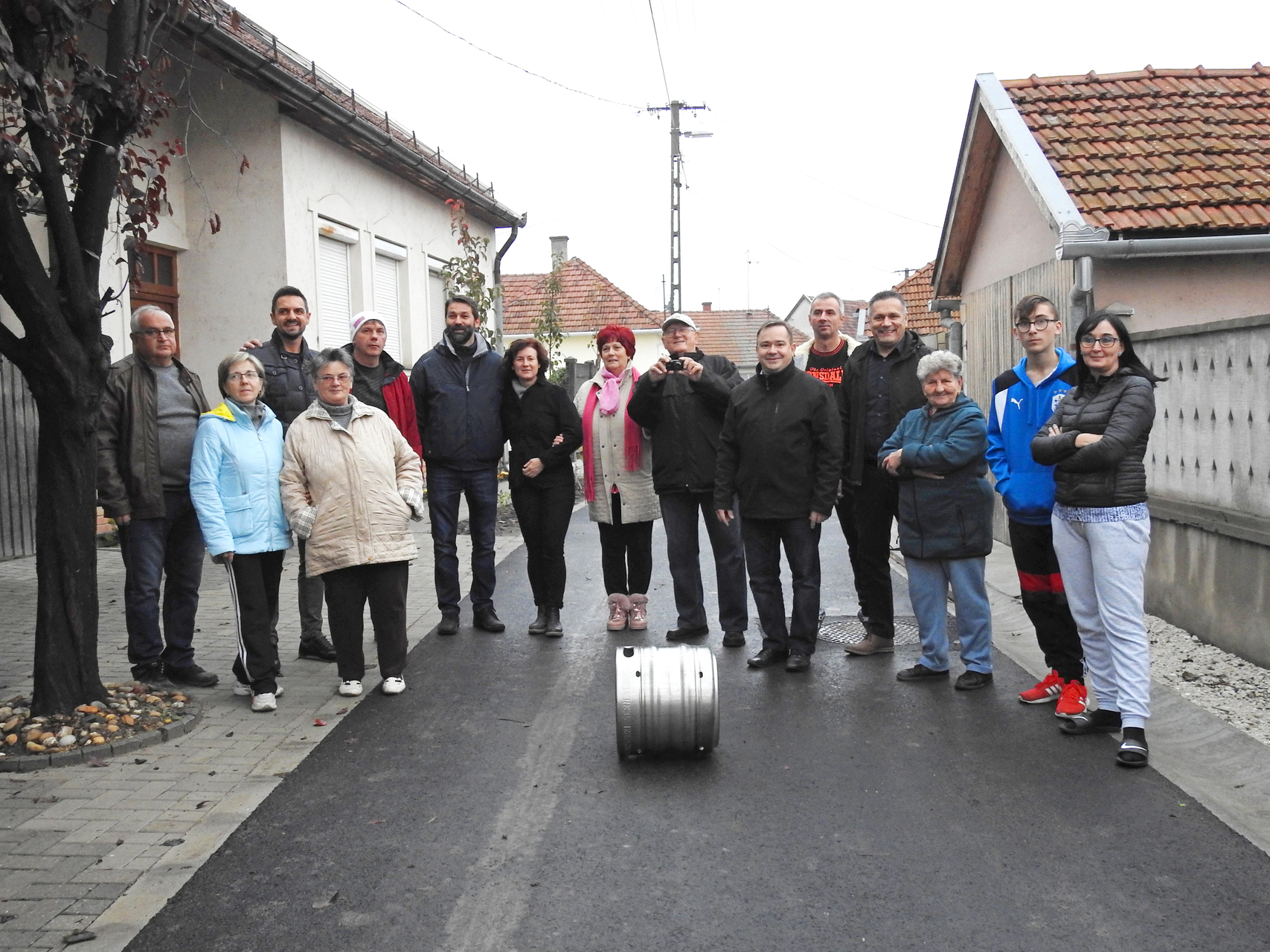 A munkálatok október közepén fejeződtek be, már csak a fásítás van hátra – jelezte Kónya István. Arról is beszámolt, hogy ígéretet tett a lakóknak: ha elkészül a beruházás, söröshordó-gurítással ünneplik meg, így a munkálatok befejeztével rendhagyó utcabulit szerveztek.