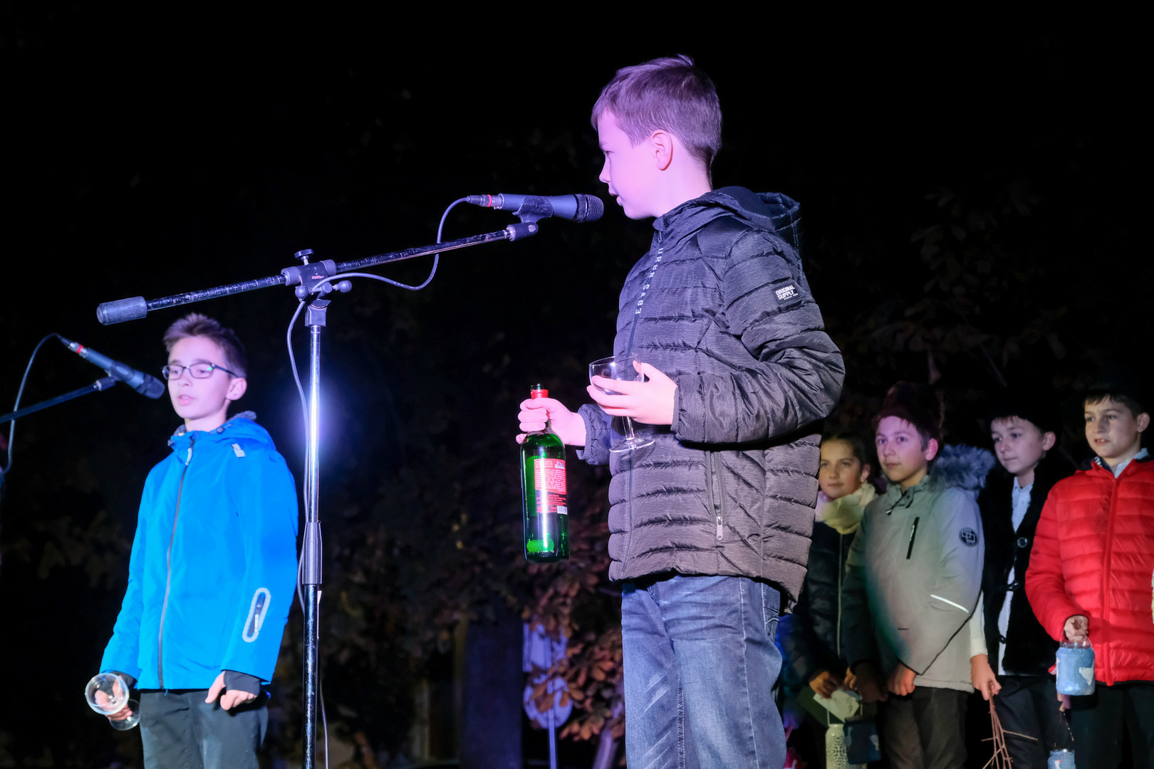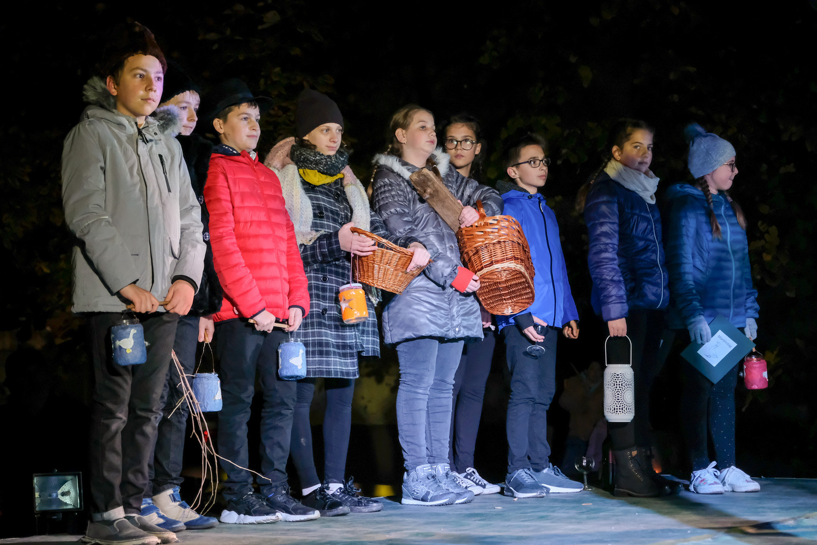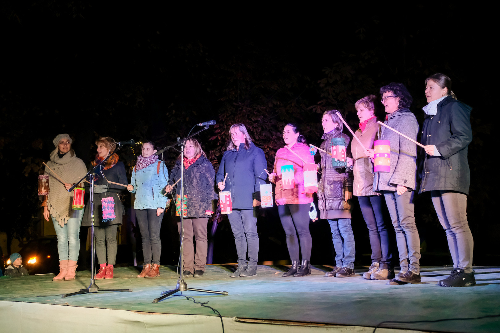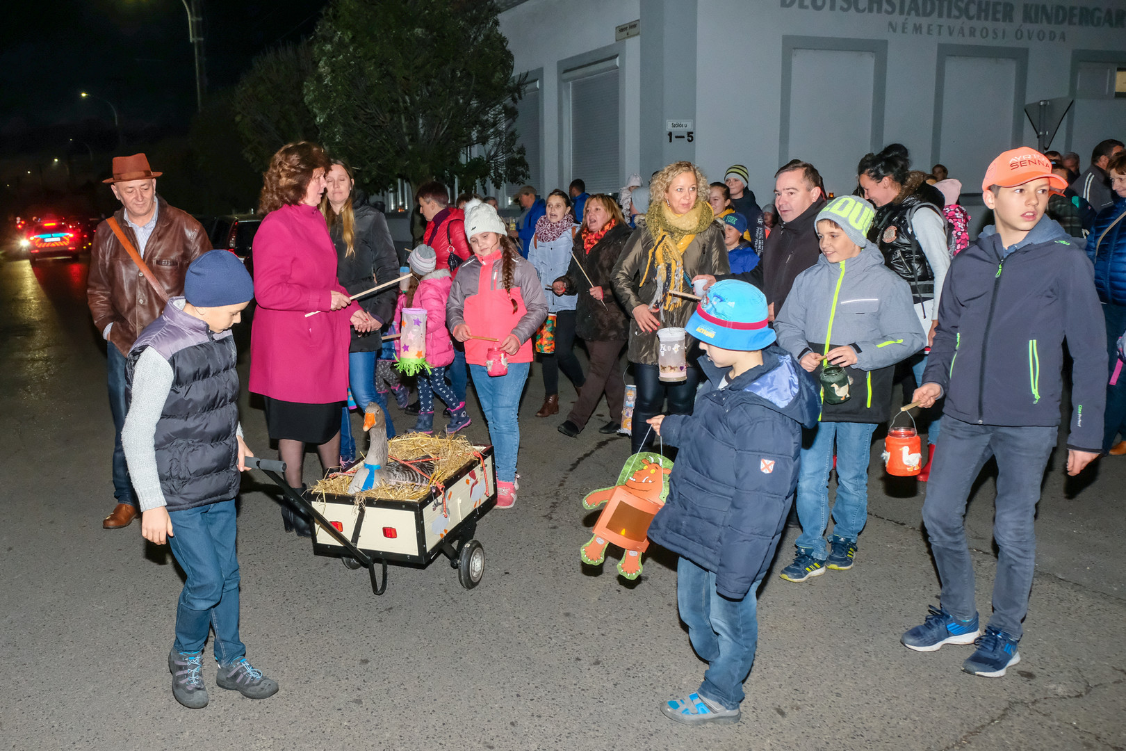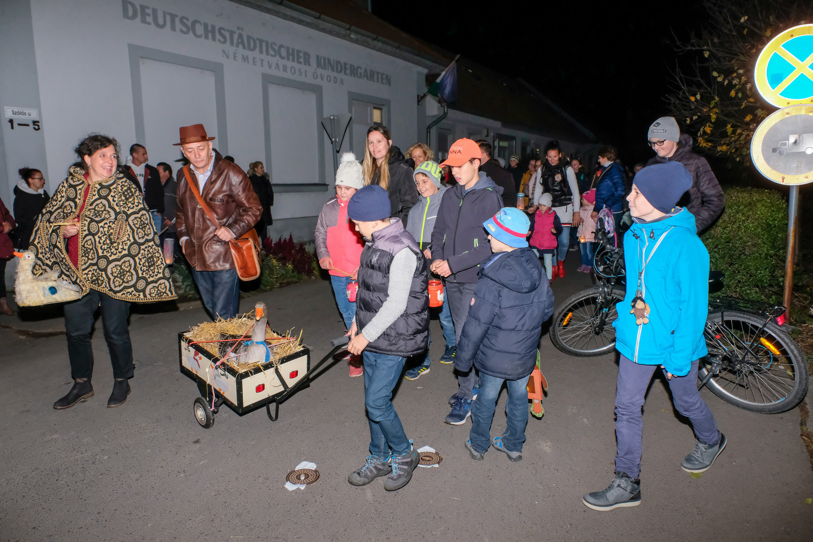 Az alpolgármester köszöntője után az Implom József általános iskola németes diákjai hallgatói Márton-napi történeteket mutattak be, majd kiosztották a lúdmérés díjait és felköszöntötték a jelenlévő Mártonokat. A lampionok mécseseit a Németvárosi Óvoda pedagógusainak árnyjátéka után fújták el, hogy a szeretet fénye a következő évig világítson tovább a szívünkben.
