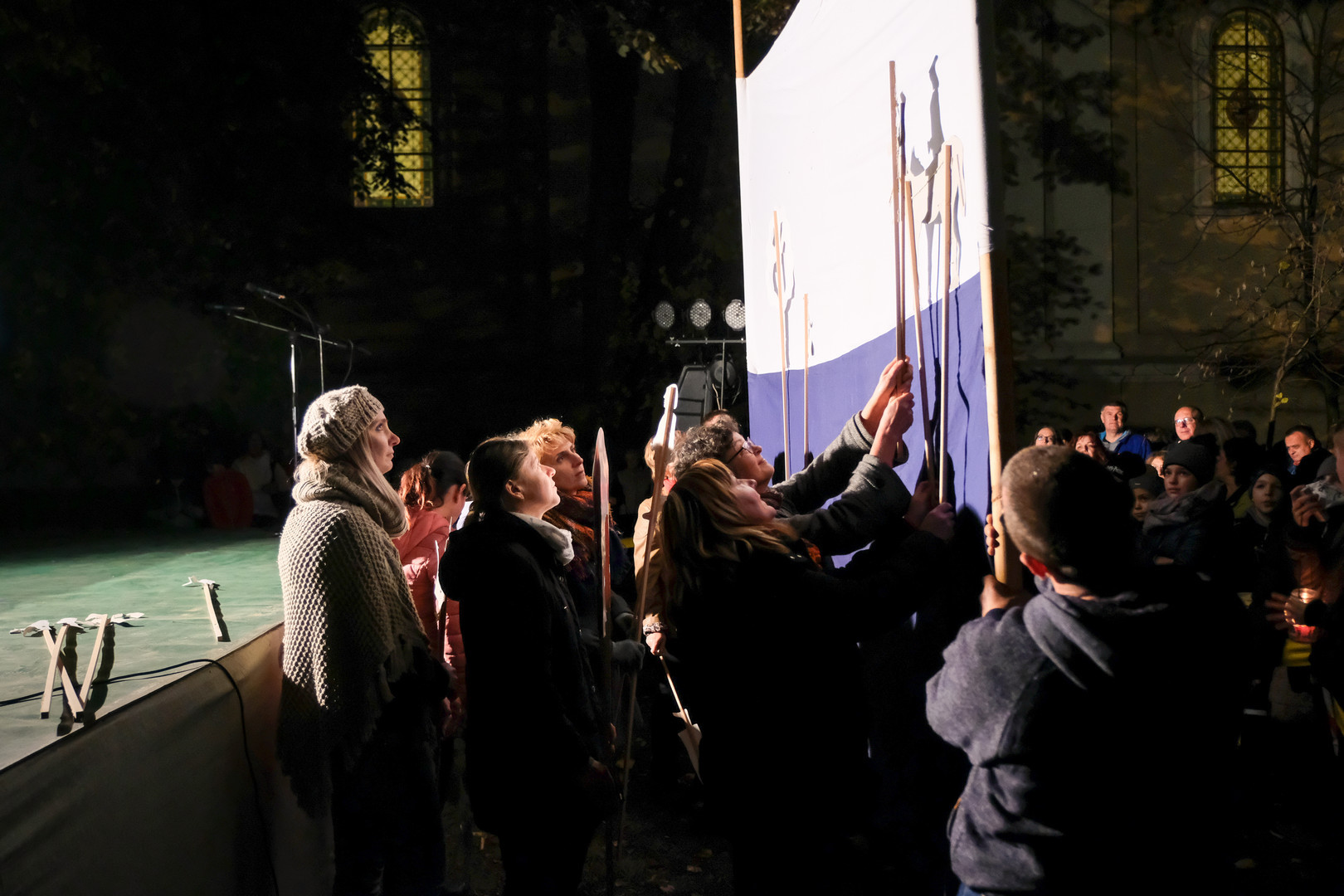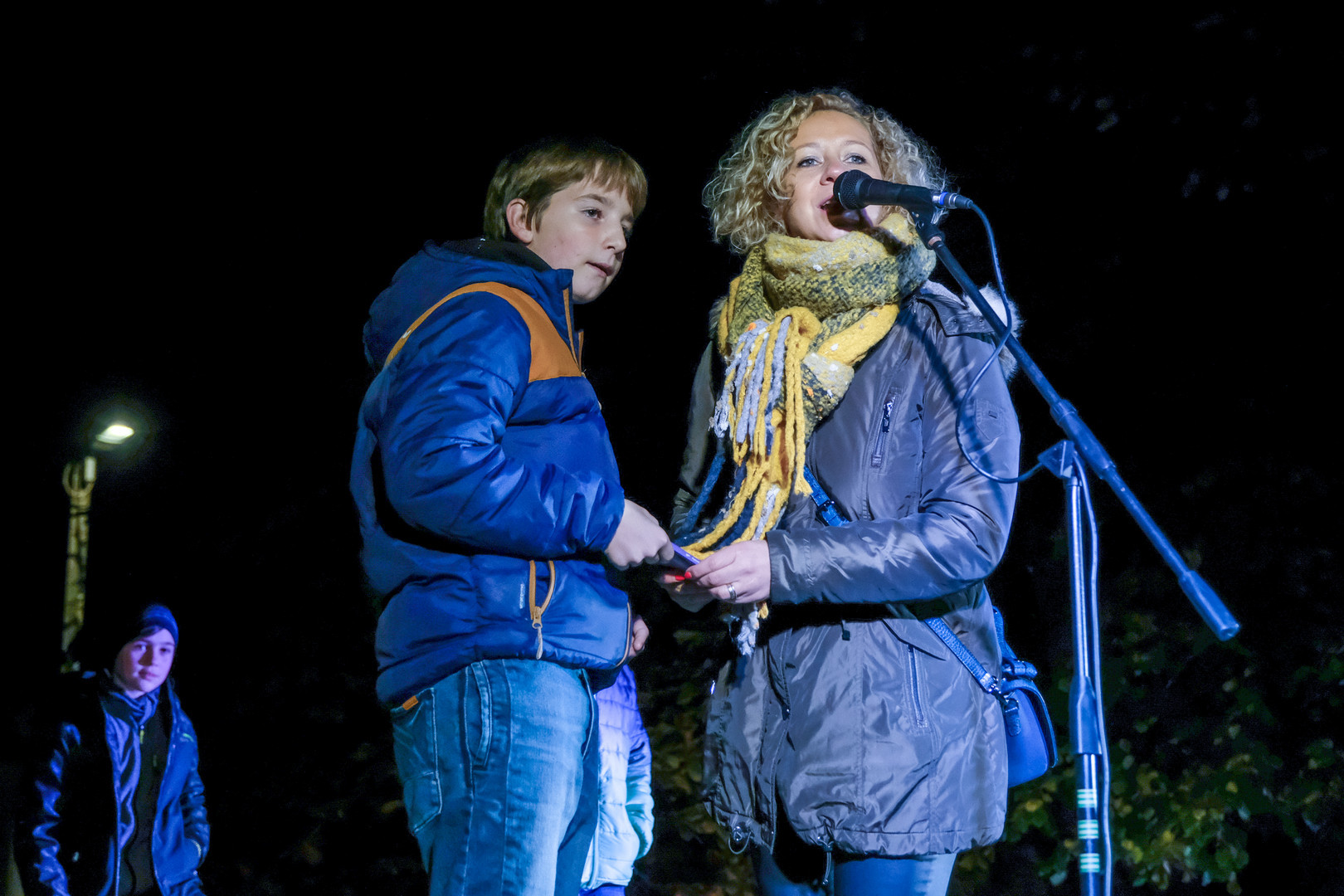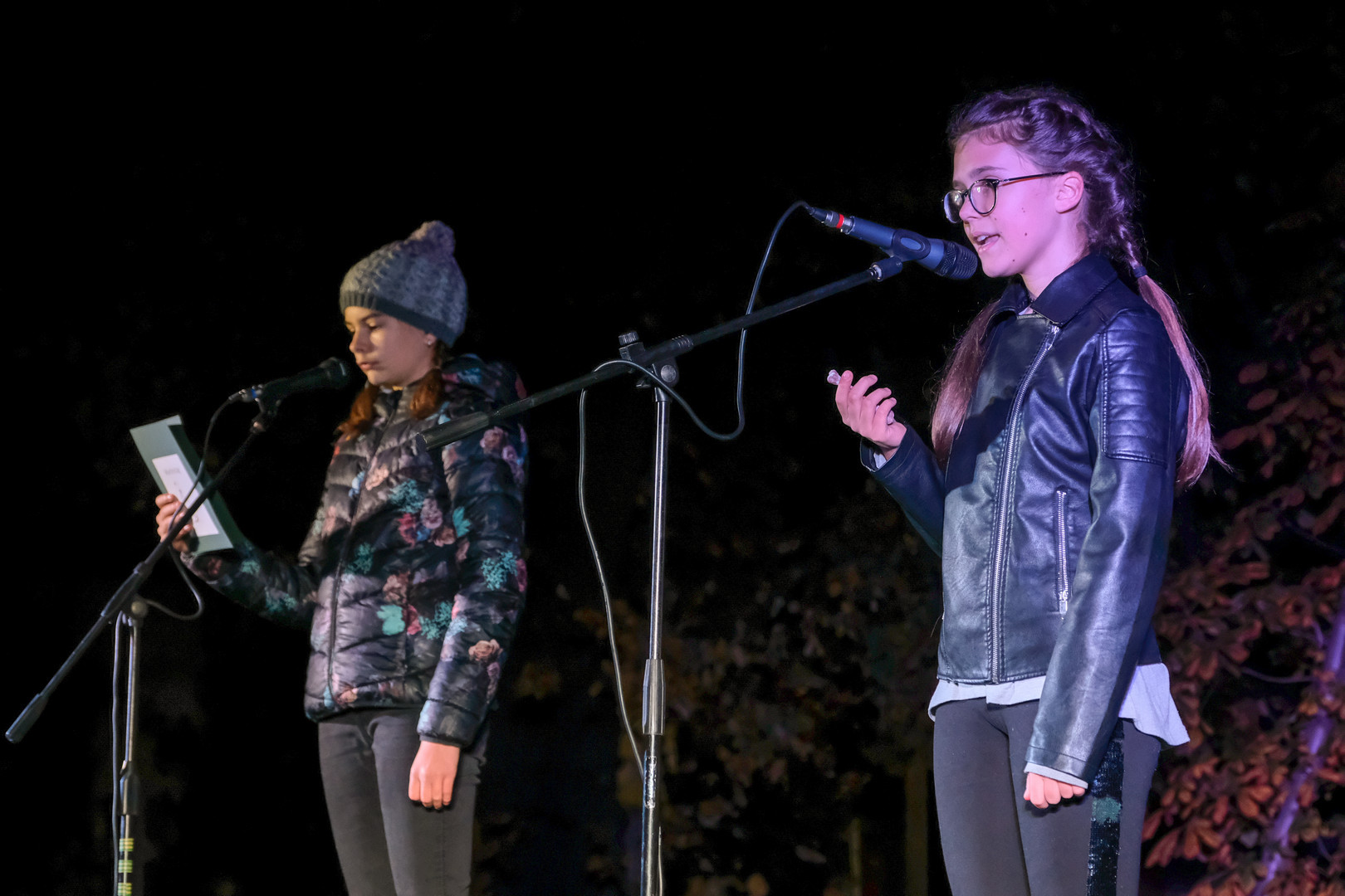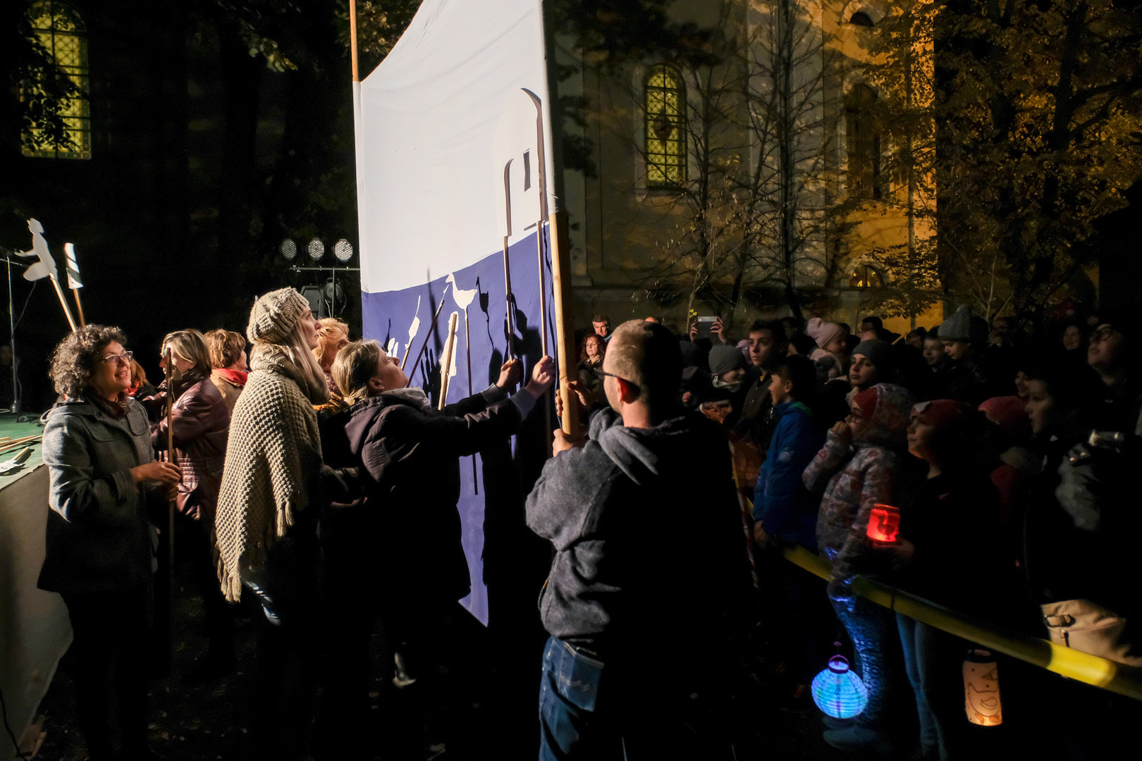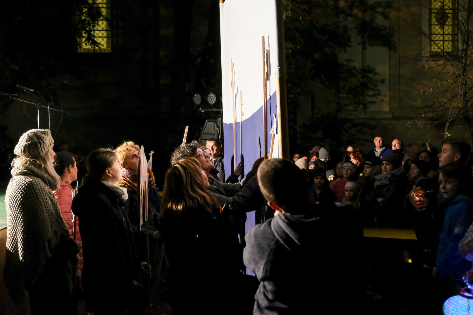 Az alpolgármester köszöntője után az Implom József általános iskola németes diákjai hallgatói Márton-napi történeteket mutattak be, majd kiosztották a lúdmérés díjait és felköszöntötték a jelenlévő Mártonokat. A lampionok mécseseit a Németvárosi Óvoda pedagógusainak árnyjátéka után fújták el, hogy a szeretet fénye a következő évig világítson tovább a szívünkben.