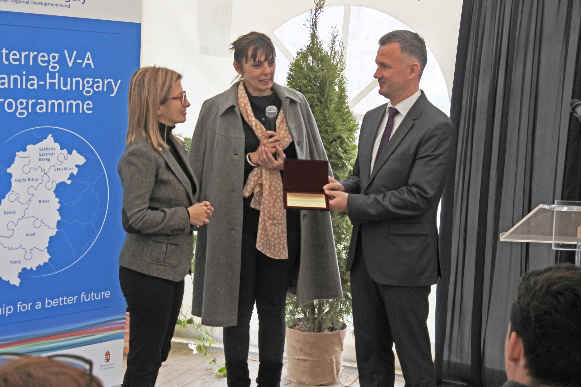 A köszöntők után Roxana Racovita egy emlékplakettet nyújtott át Görgényi Ernőnek, megköszönve a munka során mutatott együttműködést, valamint jelképezve a két ország közös munkáját.